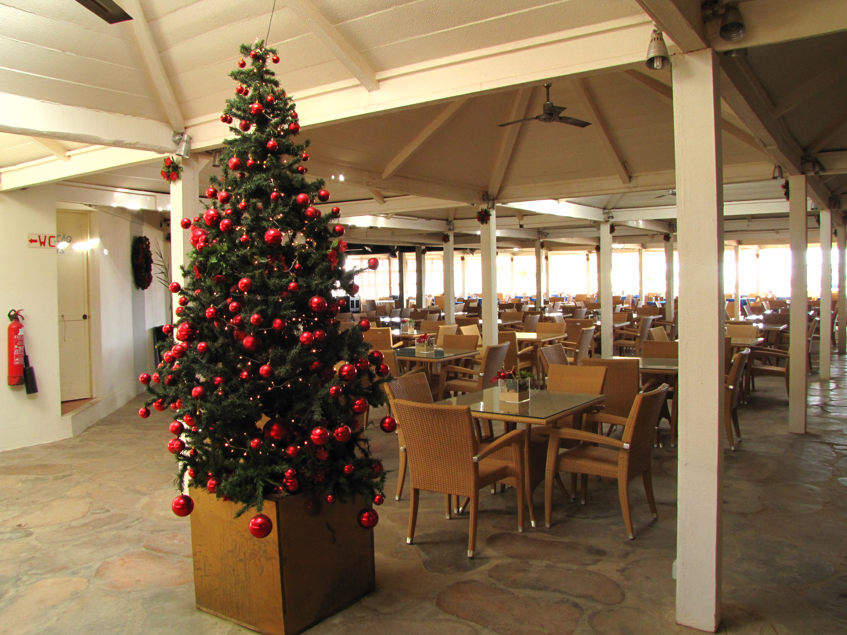 Na závěr přidám obrázek vánočního stromečku ve výhni afrického slunce uprostřed pláže…nezvyknu si na ten pohled asi nikdy. Proč místní neslaví třeba pod ozdobenou palmou, když jim stromečky vůbec nejsou vlastní? Proč si z Vánoc do své kultury přenášejí zrovna takový kýč, jakým je stromeček? Oni by to ti turisti bez něj nepřežili?