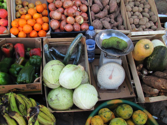 A jinak nic. Ještě si tedy můžete u prodejkyně koupit nějaké ovoce, kterého neznáte název ani původ (vyzkoušeli jsme cosi zeleného boulovatého a docela to chutnalo dobře). Tu boulovatou ježatou věc můžete vidět níže na váze. Pokud někdo z Vás ví, o co se jedná a jak se ta boulovina jmenuje, dejte mi vědět.