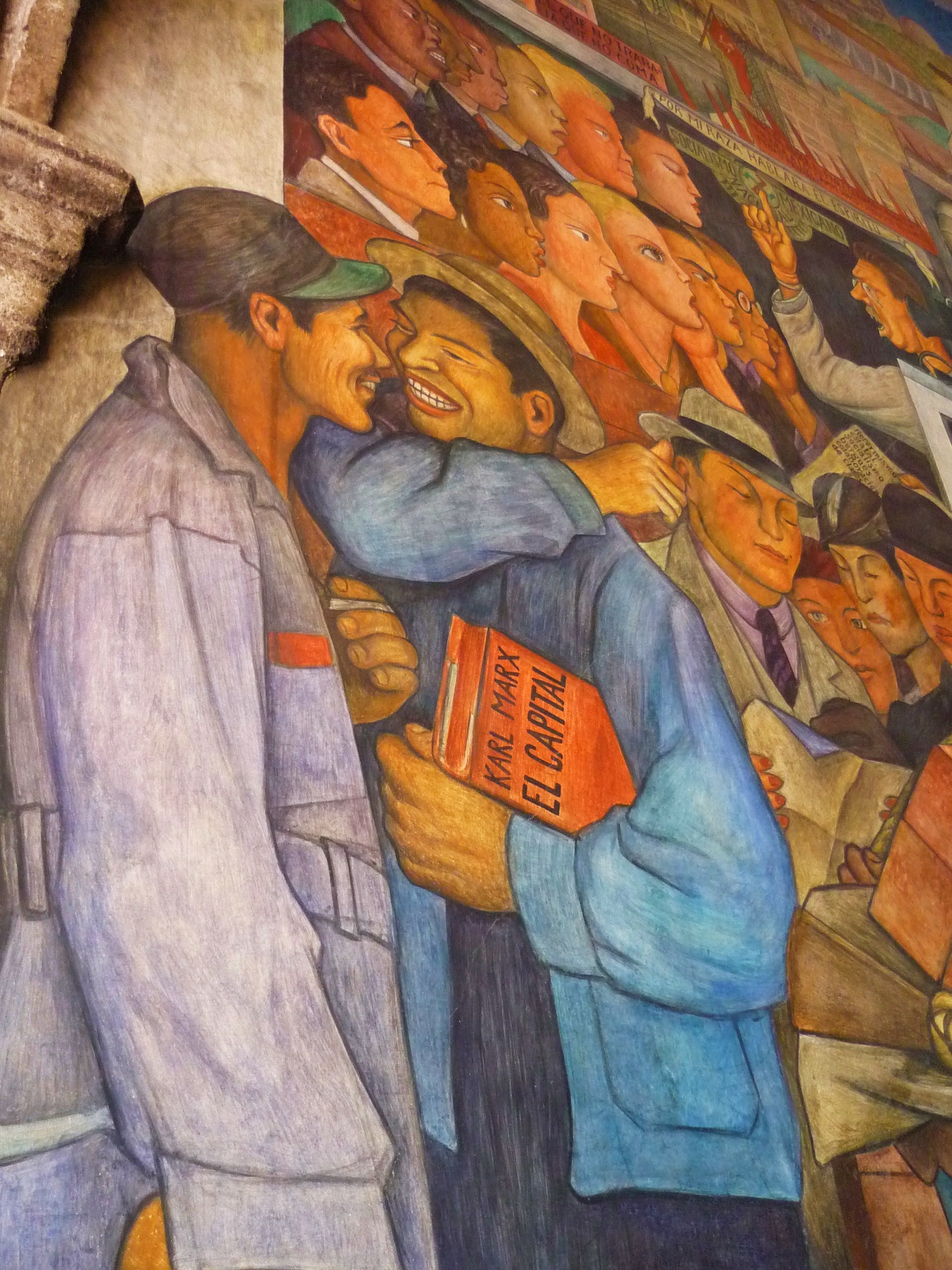 Tak, dál jsme navštívili prezidentský palác, jehož chodby jsou plné Riverových murálů, a kde si můžete prohlédnout několik křídel paláce včetně jeho vybavení, vlajek, sálů, historie, atp. Na některých murálech je idealisticky vyobrazená slavná aztécká minulost, na dalších pak nadšené marxistické ideály revoluce. Nejlepší na této prohlídce je, že byla za 7 Kč pro každého z nás, takže za ty prachy ty dvě hodiny rozhodně stály 🙂