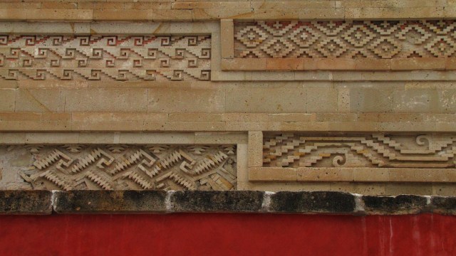Pak jsme opět popojeli, abychom se dostali ke krásným ruinám zapotéckého hlavního duchovního sídla Mitla. Nejsou to žádné obrovské pyramidy, ani nemají uchvacující okolí, ale Mitla byla kdysi sídlem hlavního zapotéckého a poté i mexického kněze. A její výzdoba tomu odpovídá. Je plná drobných mozajek z malých cihliček, geometricky uspořádaných do různých vzorů, které měly ovšem svůj význam, například popisující koloběh života.