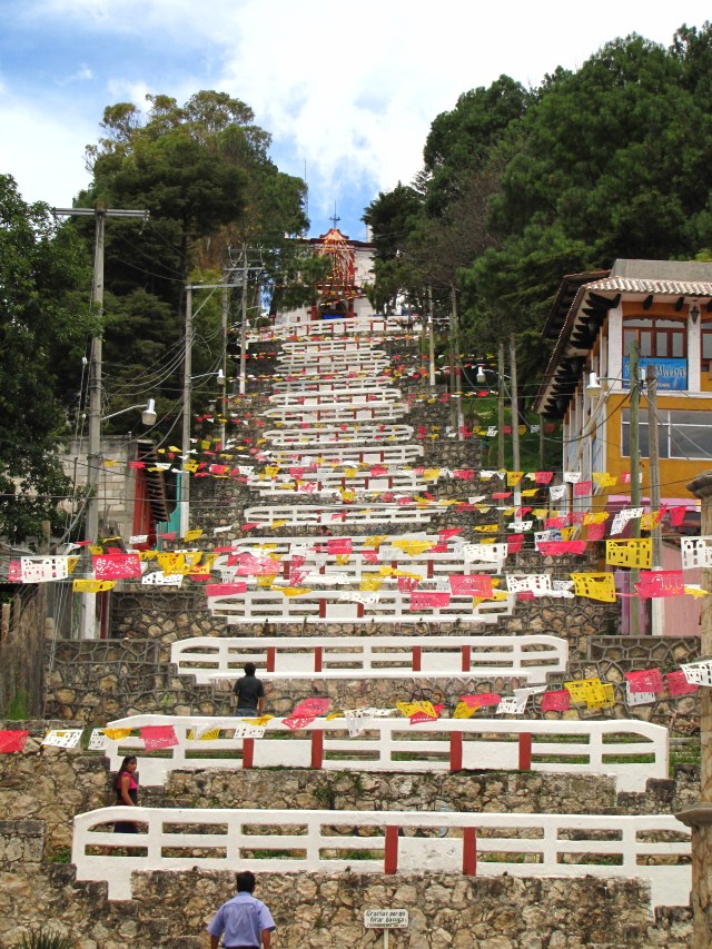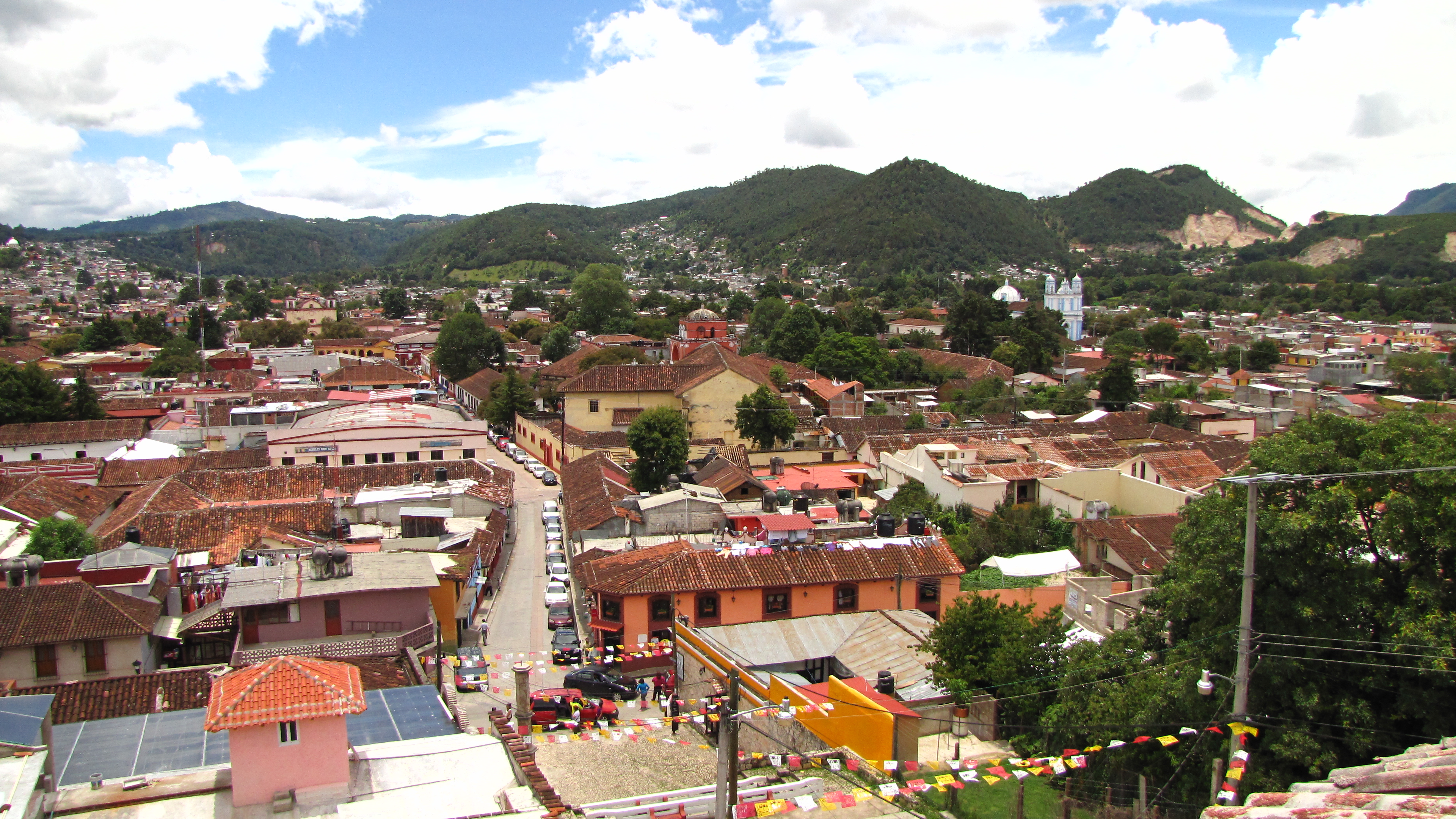 Po jedenácti hodinách cesty jsme byli dost unaveni, tak jsme odložili plány na kaňon Sumidero, a místo toho jsme si prošli město. San Cristobal de las Casas je položen v údolíčku ve výšce 1.600 metrů nad mořem uprostřed borovicovo-bromeliového pralesa. Na rozdíl od spousty jiných mexických měst to nebylo původní sídliště prehispánských obyvatel, ale bylo založeno španělskými conquistadory „na zelené louce“, takže má přísný systém pravoúhlých ulic a uprostřed náměstí Zocalo.