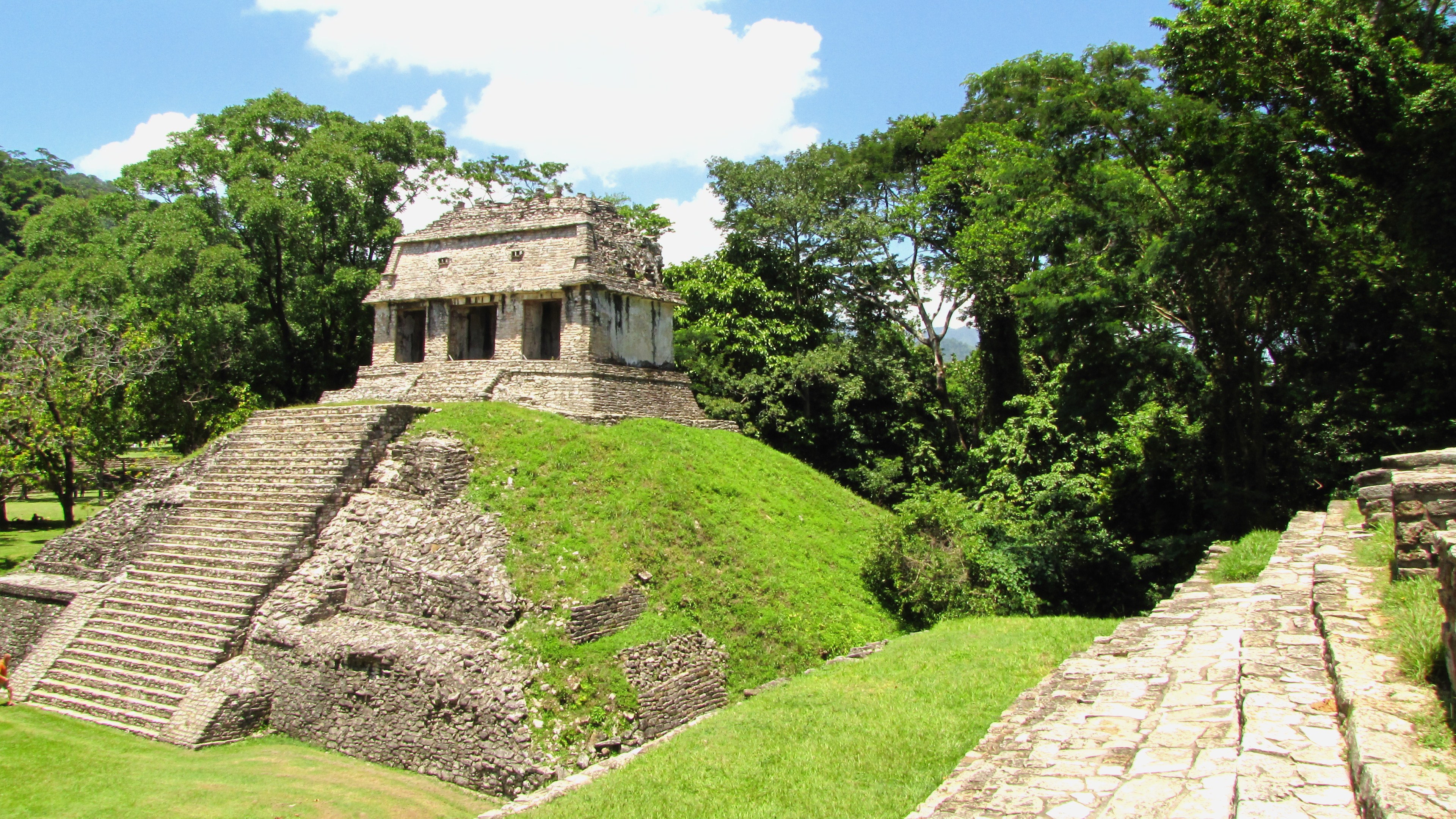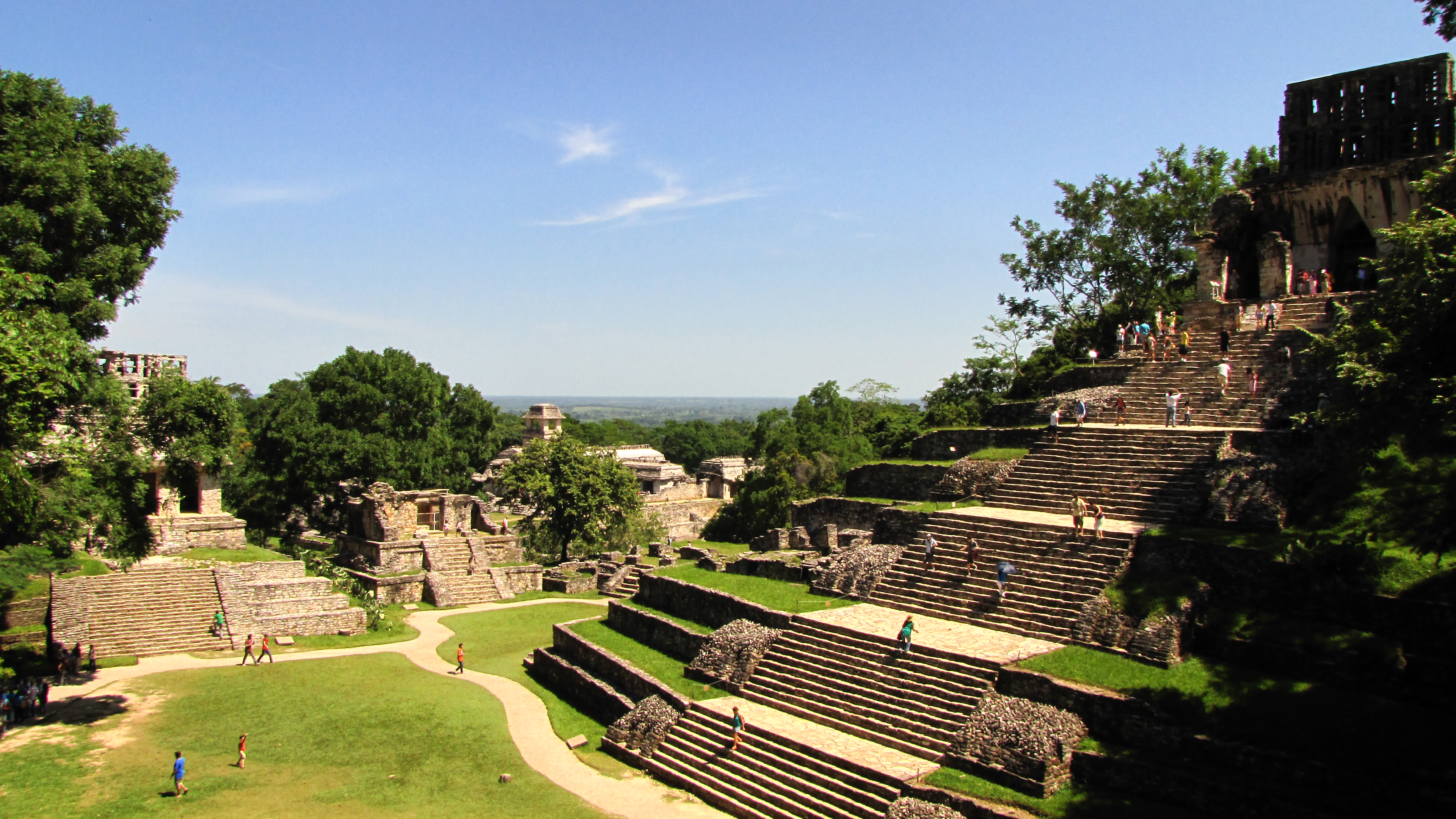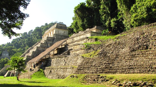 Při vstupu na naleziště nám jako první padla do oka osmistupňová pyramida, ve které archeologové po sto letech prací našli teprve v devadesátých letech ohromnou hrobku významného vládce Palenque jménem Pacal, včetně několikatunového sarkofágu, posmrtné masky z nefritu a bohaté zádušní výbavy.
