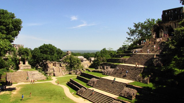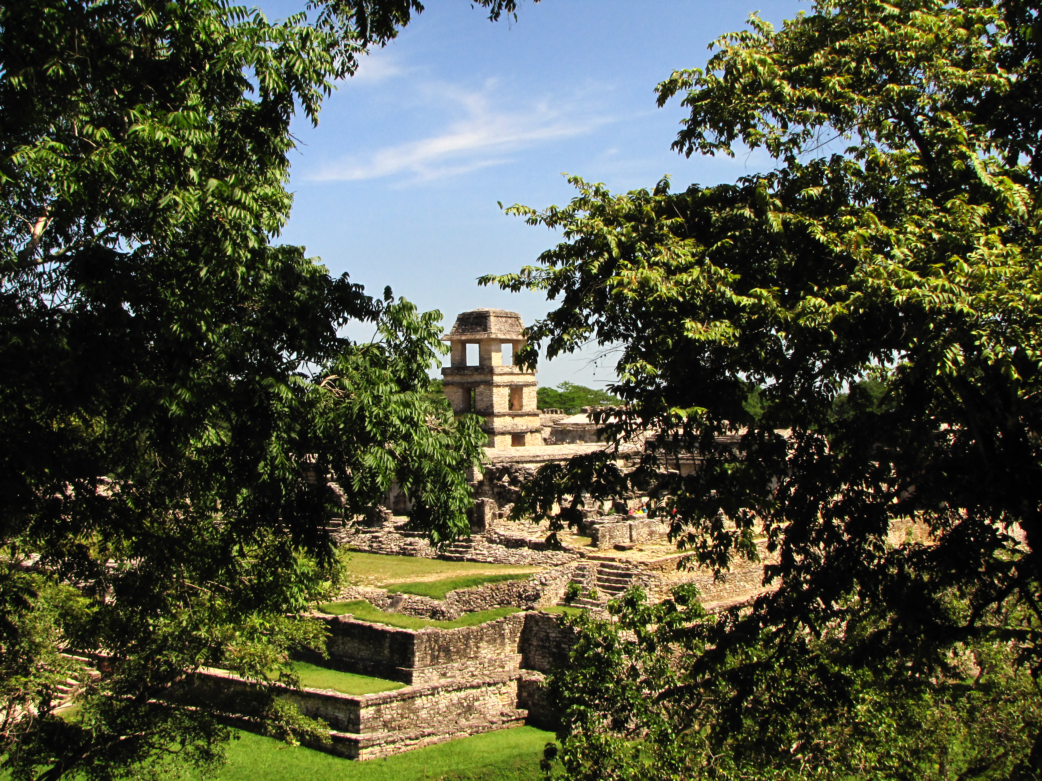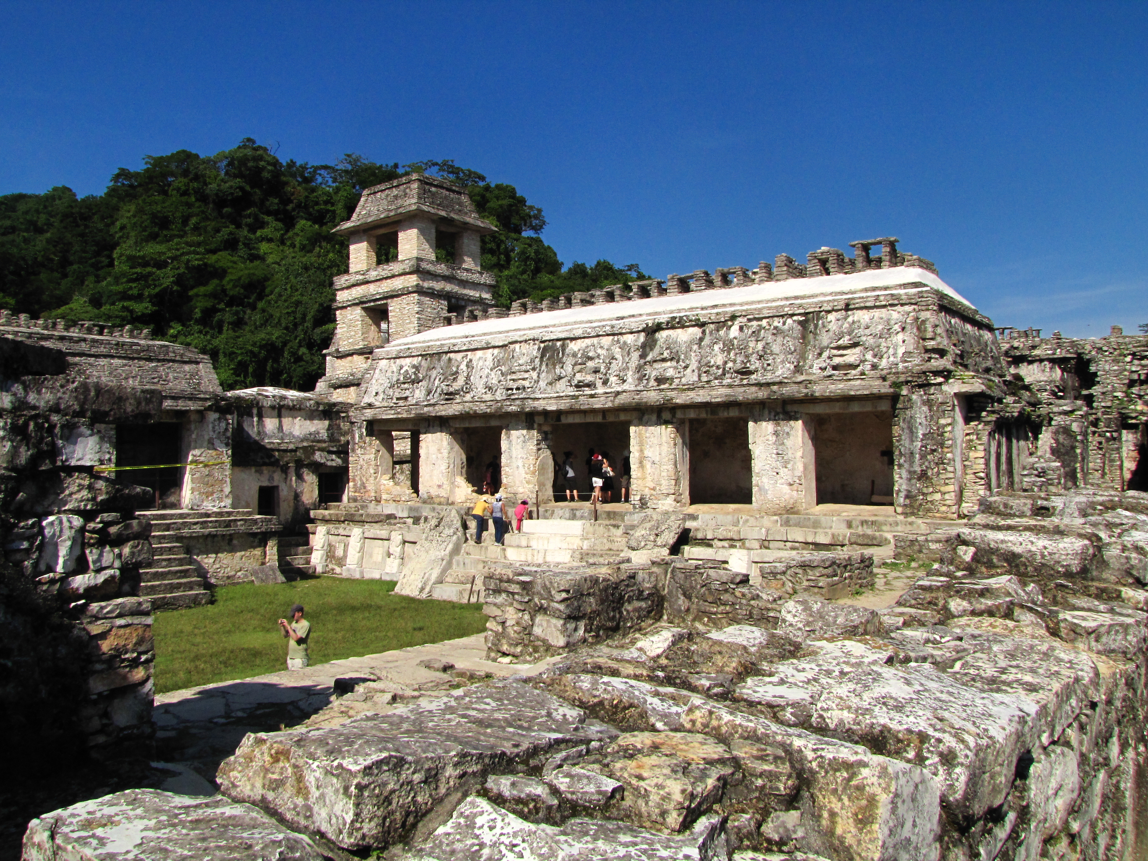 Hlavní stavbou Palenque je El Palacio, což je složitý pyramidální komplex vládních, správních, obětních, sakrálních a palácových budov, kde se dají stále zahlédnout krásné rytiny zobrazující průběh korunovace krále Pacala, jeho trůn (vypadá jako kamenná postel), záchod, štukové vyobrazení mnoha božstev, vládní pokoje, a podobně. Také je tu jako na jediné budově v Mexiku postavena několikapatrová věž, která pravděpodobně sloužila jako astronomická observatoř, protože Mayové byli zcela závislí na matematice, astronomii a kosmologii. Věž je na šikmo a je to vidět. Jeden průvodce tam vykládal, že je tak na šikmo postavená schválně, aby se vyrovnal sklon zemské osy a zenit byl opravdu v zenitu, ale další vyprávěl, že ji v rámci rekonstrukce chtějí uměle narovnat, takže si myslím, že asi původně stala rovně a první průvodce pouze bájil.
