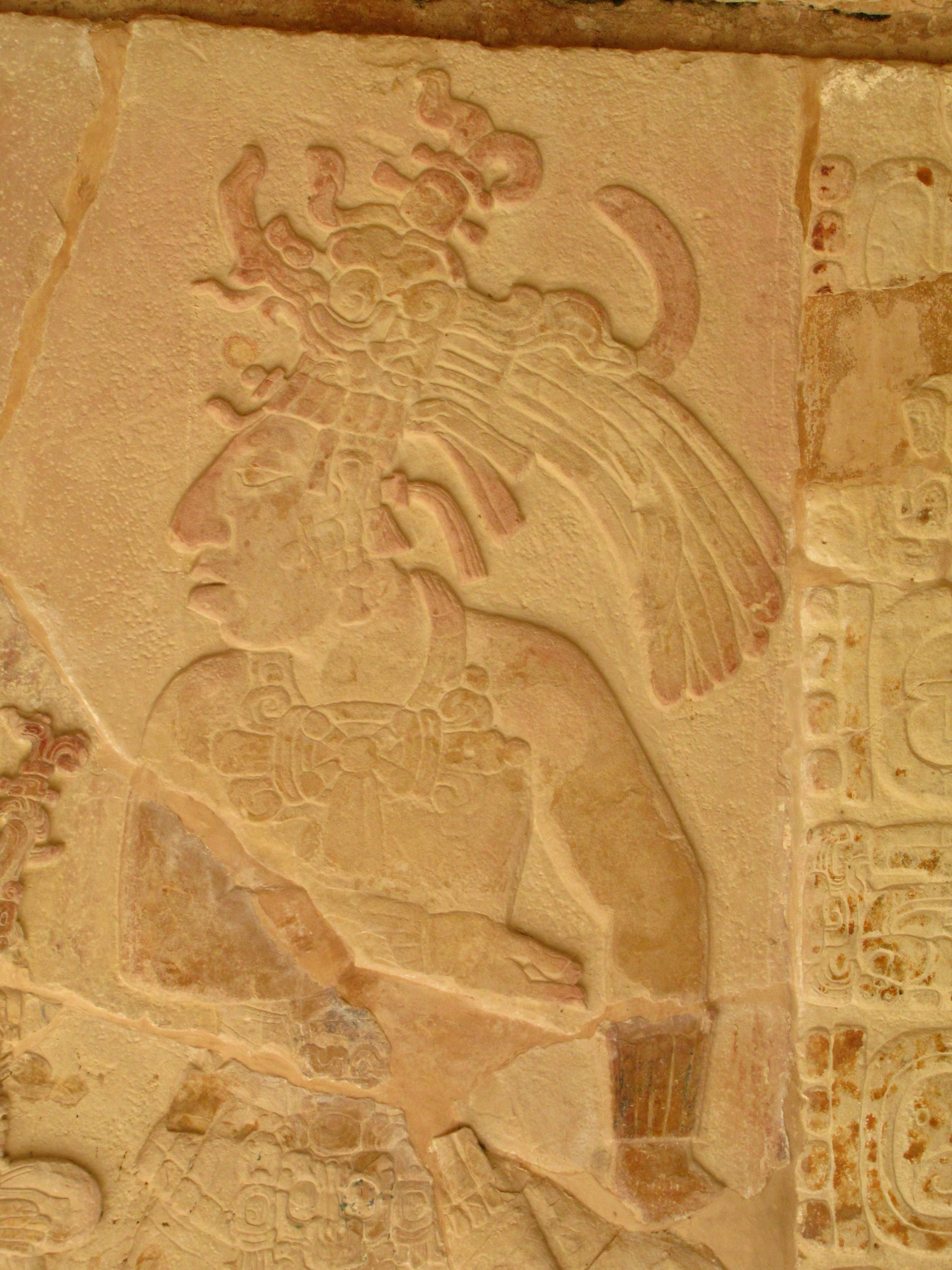 Zatímco jsme málem pošli vedrem, prolezli jsme tuto hlavní část vykopávek a pralesem prošli k jeho další části, kterou tvoří tři veliké pyramidy Kříže, Slunce a Zdobného kříže, které byly samým srdcem a ohniskem víry Mayů. Ve vrcholcích chrámů stojících na každé z nich jsou reliéfy ukazující obětování králem, zobrazující slunečního boha, předávání vlády a v neposlední řadě rituál kouření tabáku prováděný jedním z vládců Palenque (mám dojem, že dědečkem krále Pacala). Rytiny jsou nádherně zachované a mnohdy i dost popisné. V té době bylo ovšem už takové vedro, že jsem se málem z jedné pyramidy skutálela v  bezvědomí.