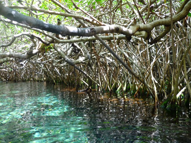 To vše s přestávkami na nějaké to pití, jídlo nebo krátkou procházku mangrovovým pralesem obklopujícím říčku. Tam se dokonce dalo nasednout u vývěru řeky na nafukovací dvoukruh, podjet mangrovový porost připomínající tunel, a řeka vás poté odnesla až na moře. Komerce jak vyšitá, ale úžasná….