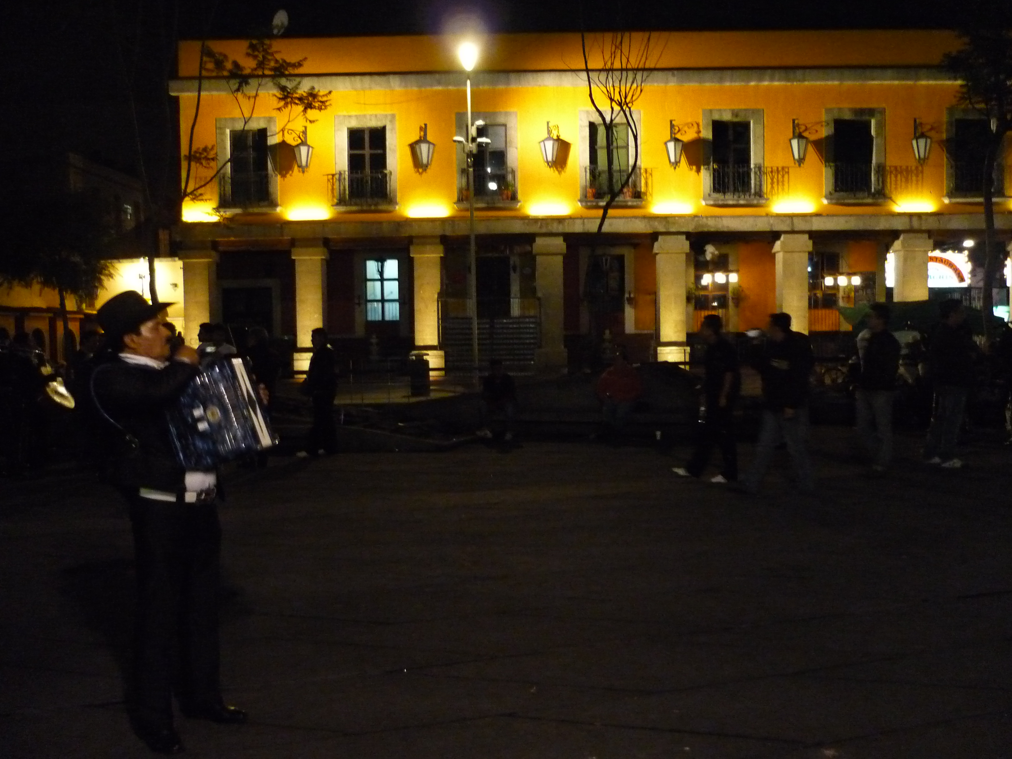 Jediné, co stojí za vyprávění, je včerejší návštěva Plaza Garibaldi tady v D.F. Je to koloniální náměstí, kde se shromažďují každý večer desítky mariachi kapel a za nějaký ten peníz (kolem 70 – 100 pesos) vám zahrají píseň. Je tam neuvěřitelný hluk, náměstí zase není tak velké, ale všechny skupiny jdou do toho s vervou, na každých pár metrech tak uslyšíte jinou melodii. Vzniká tak mexická kakofonie zvuků, při které místní popíjejí alkohol, zpívají, nostalgicky sebou kývají ze strany na stranu a hrozně si to užívají.