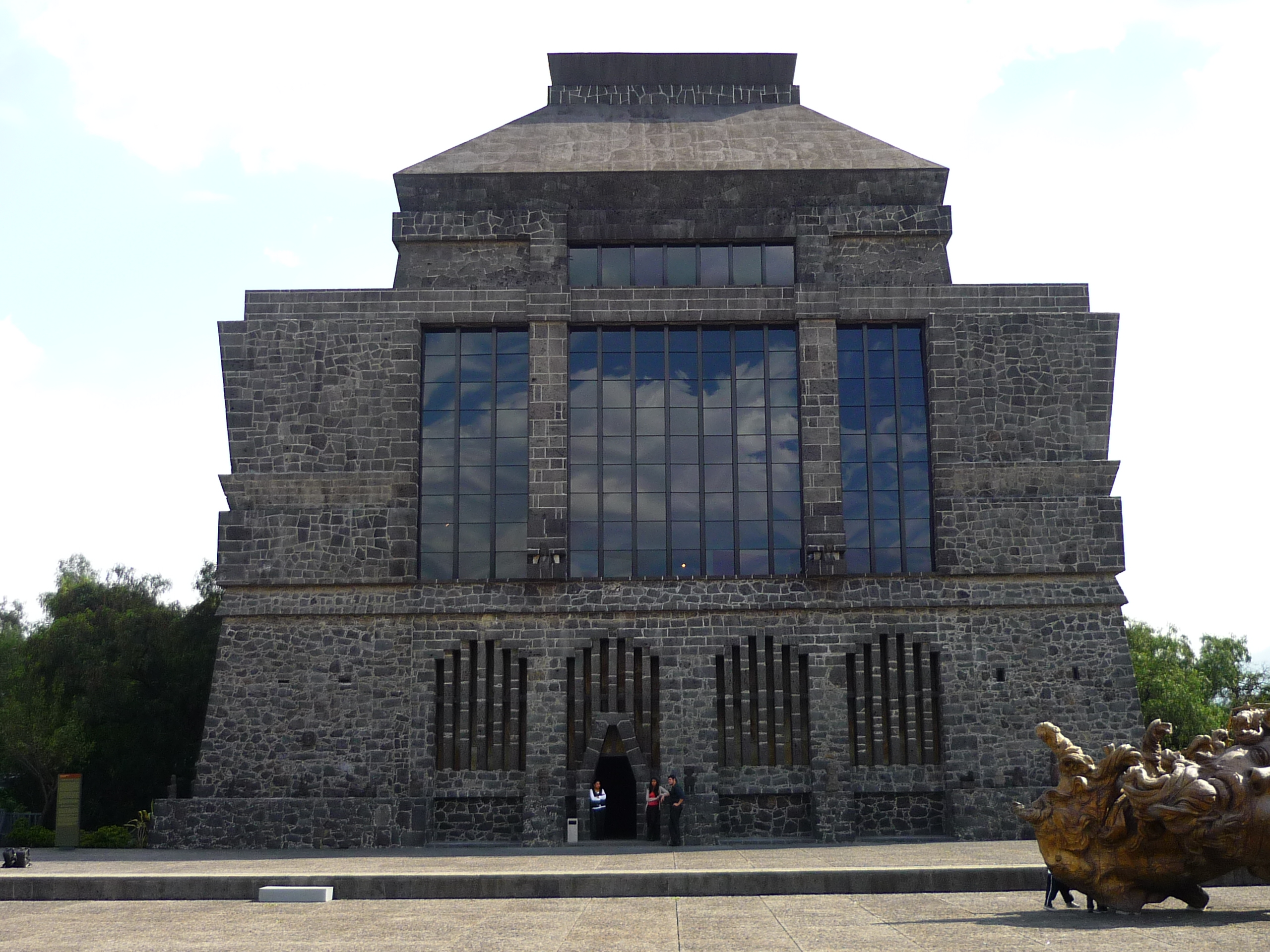Když jsme se najedli a oddychli si, dojeli jsme autobusem do jiného muzea – Muzea Diega Rivery – Anahuacalli. Diego byl megaloman a jeden z nejvýznamnějších světových sběratelů prekolumbijských mezoamerických kultur. Rozhodl se, že postaví budovu připomínající pyramidu a vycházející z mayské mytologie. Budova má tři patra – podzemní, představující zásvětí, bez oken, pouze s pláty alabastru, přes které prochází trošku světla, pak patro představující běžný život a nakonec patro nebeské. Každé z pater je propracováno do detailů, plné mozaiek i úchvatných originálních kousků soch a užitných předmětů z Diegovy předkolubovské sbírky. Diegovi v posledním patře došly peníze a muzeum se stále dokončuje a doupravuje podle možností mecenášů.