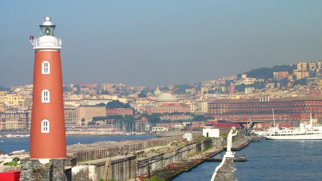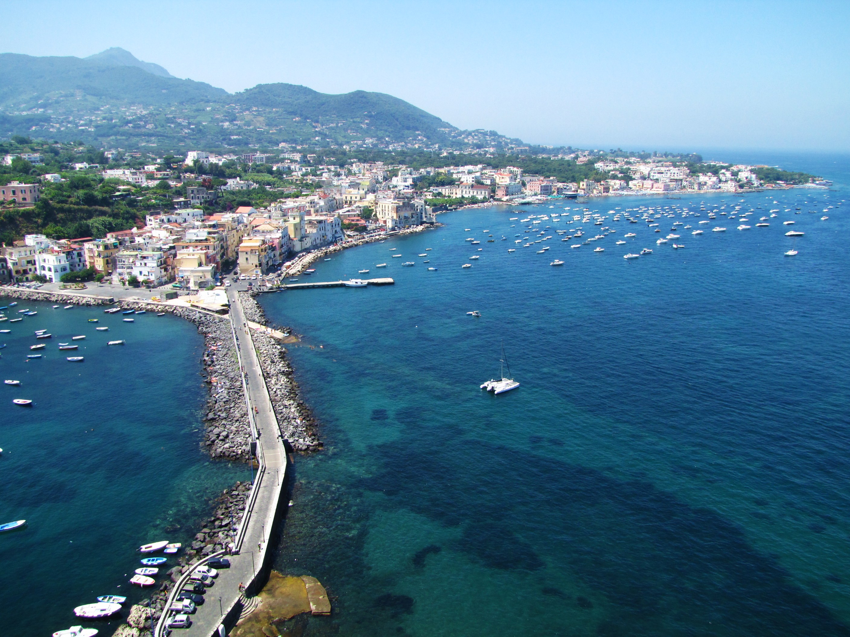Hned brzy ráno jsme doběhli do přístavu a našli trajekt mířící správným směrem (to tu není nic jednoduchého, mnohokrát jsme se takhle motali ve snaze najít správný vlak, metro, loď, autobus, atp., neboť místní odmítají mluvit anglicky, odmítají posunkovat, ale zase vám hrozně rádi špatně poradí, jenom aby nemlčeli). Cesta na Ischii, která je od břehu asi 35 km, trvá přibližně hodinu a v polovině cesty trajekt staví u ostrůvku Procida. Cestou se nabízí nádherné pohledy na Neapol a Vesuv.