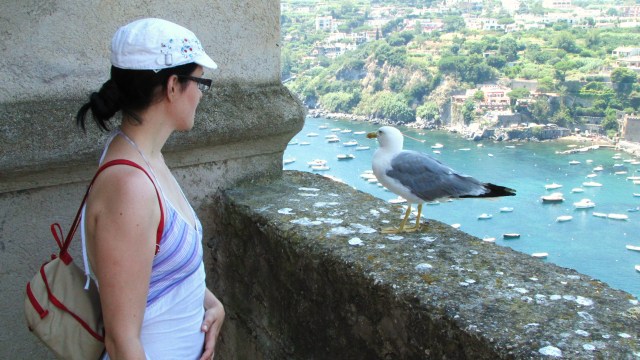 Druhý den jsme museli vyřešit zásadní otázku, kterou se asi zabývá každý, kdo se ocitne v Neapoli na dobu omezenou. Ischia nebo Capri? Knižní průvodce sliboval na Capri světoznámou Modrou jeskyni, římské památky a miliony turistů. Pro Ischii pak zase horoval kvůli stovkám termálních pramenů, přírodě a mnohem míň turistům. Jak jsme vybrali, je vám asi jasné z názvu postu. Dodneška přemýšlím, jestli jsme udělali dobře, příště bych asi jela na Capri, alespoň bych viděla Modrou jeskyni :(.