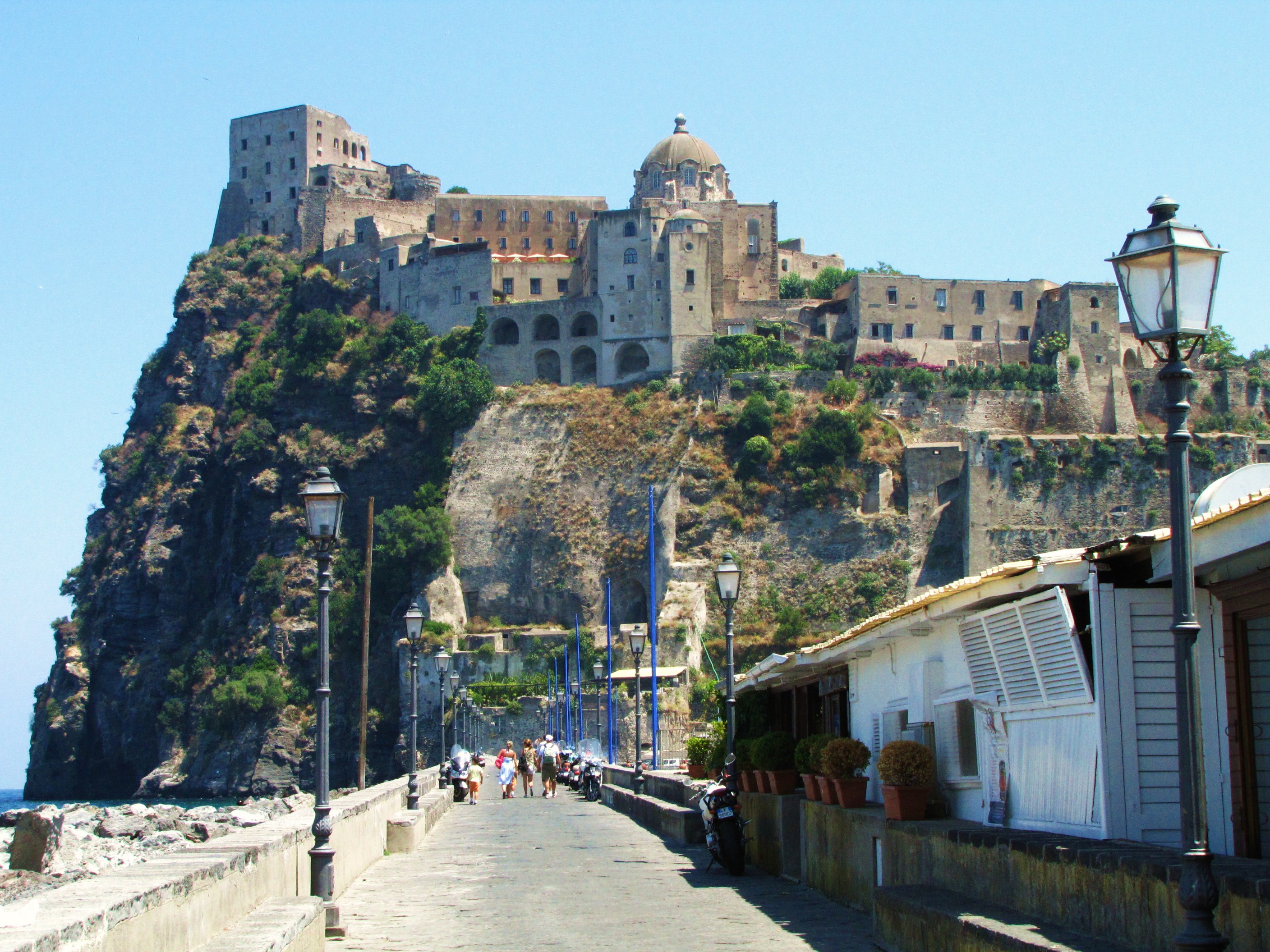 Po celém ostrově se roztahují bašty raně středověkého hradu (který byl založen již v pátém století BC) a nabízejí neskutečné výhledy. Pevnost byla postavena na obranu místních obyvatel před piráty. Když piráti přijeli, všichni utekli na hrad, který má svůj zdroj pitné vody, a který měl dost zásob jídla, aby bylo možné přečkat obléhání. V časech Alfonsa Aragonského (po kterém hrad nese jméno) na ostrůvku žilo až 2000 rodin, hrad měl vlastní baziliku i biskupa, včelín, vinohrad, a vůbec.