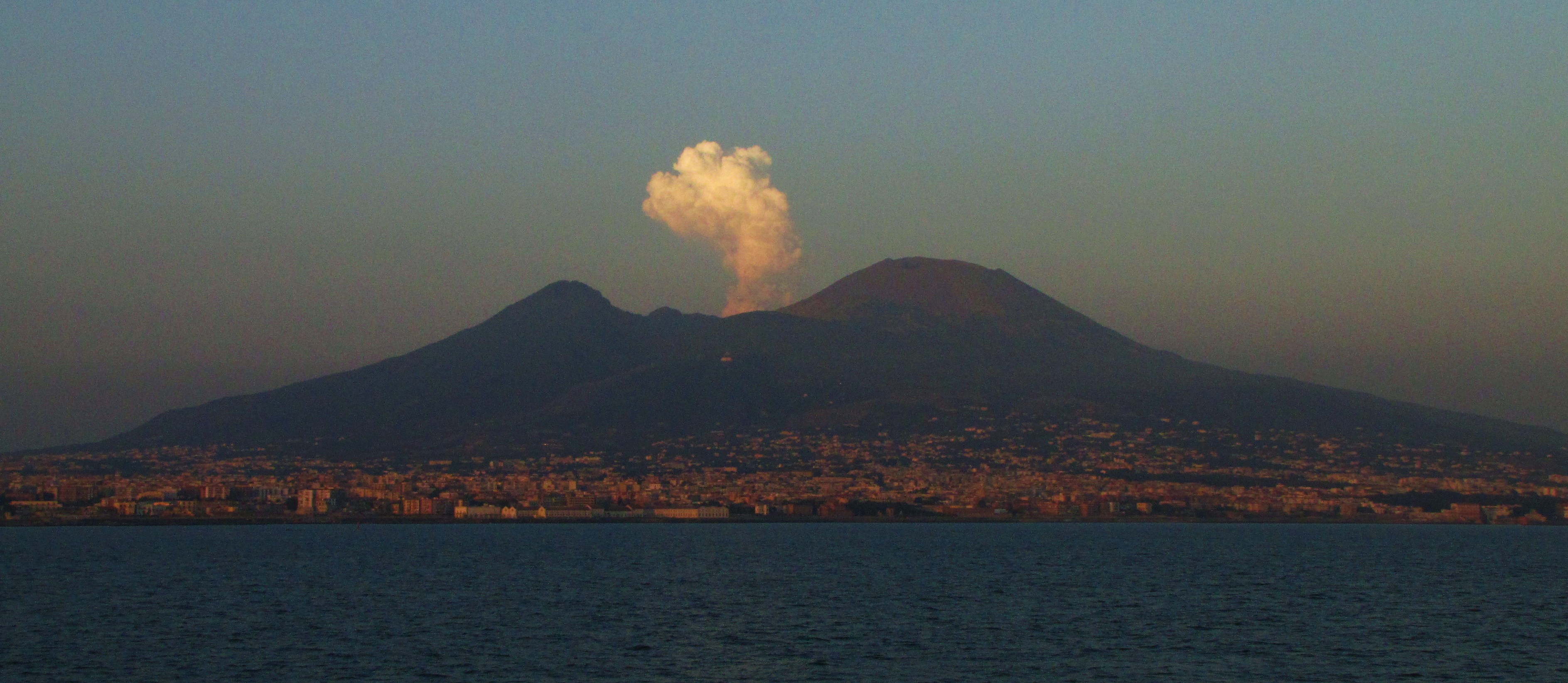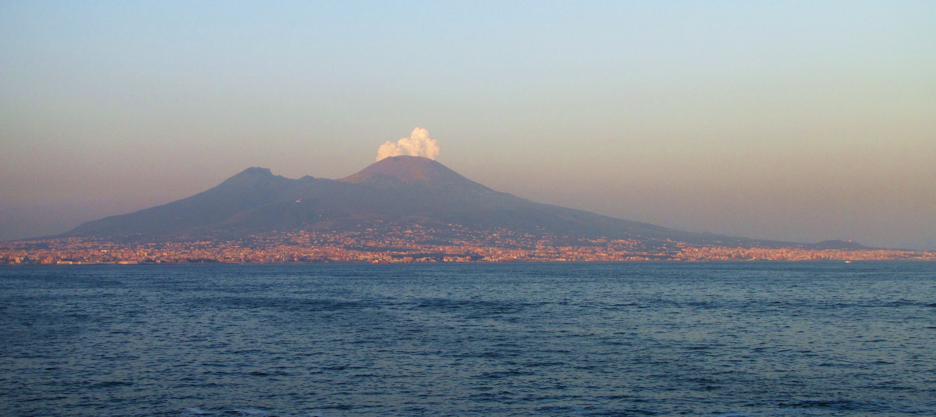 Nakonec jsme se jen sebrali, chytli trajekt zpět do Neapole a byli rádi, že Ischia je za námi. Cestu nazpět nám alespoň zříjemnil výhled na Vesuv, který díky mraku v pozadí vypadal, že co nevidět opět vybuchne.