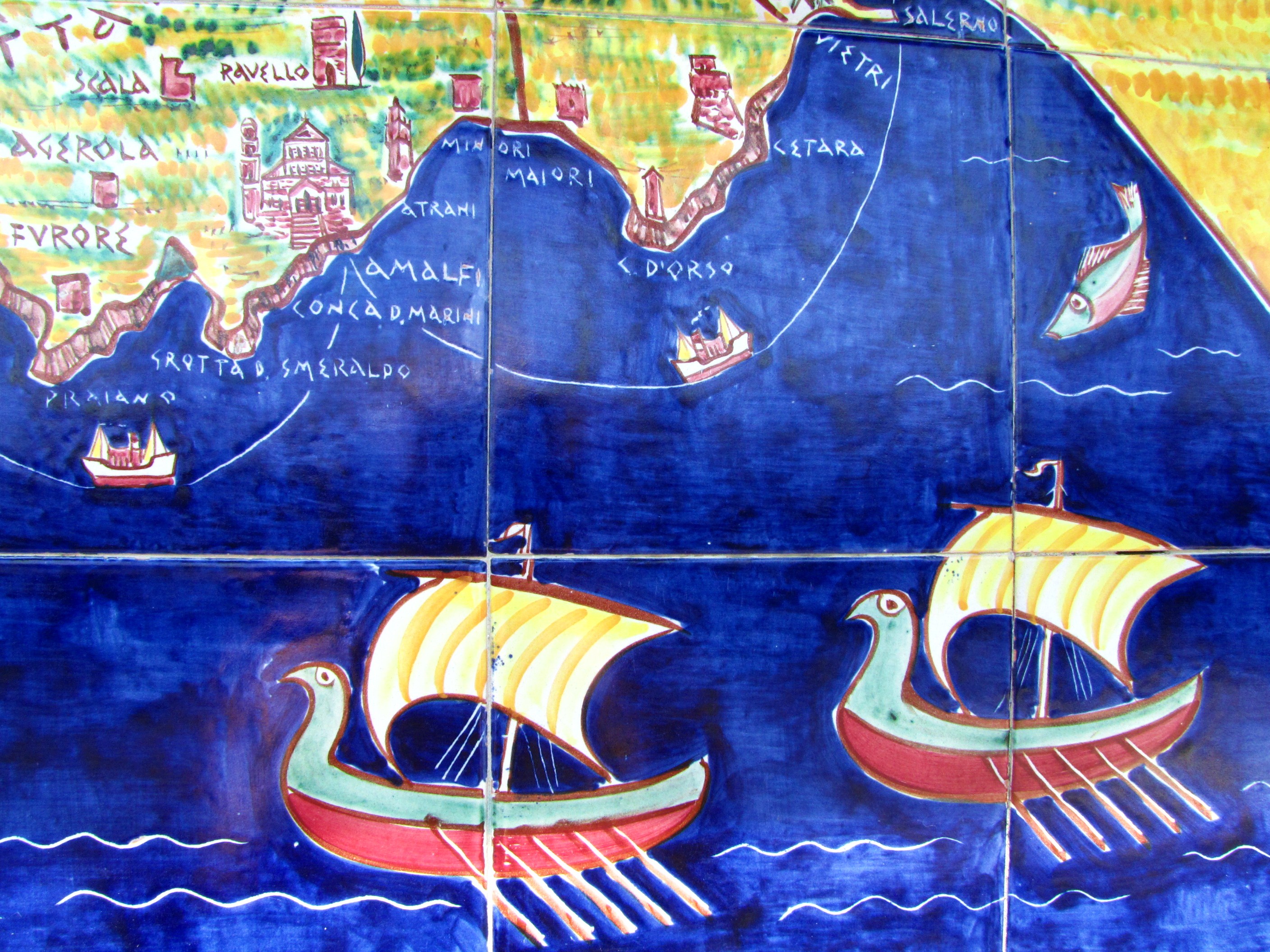 Trocha historie: Amalfi bylo v minulosti velmi důležitým městem. Na počátku 9. století se oddělilo jako samostatné vévodství od okolní Kampanie a od roku 839 se stát Amalfi stal námořní republikou (!). Ve 12. století bylo Amalfi dobyto Normany a připojeno k Sicilskému království. V 1135 byl v Amalfi sepsán první námořní kodex, který se na vodách Středozemního moře užíval až do poloviny 16. století. Ve čtrnáctém století vliv Amalfi upadl, protože většina města byla smetena vlnou tsunami.
