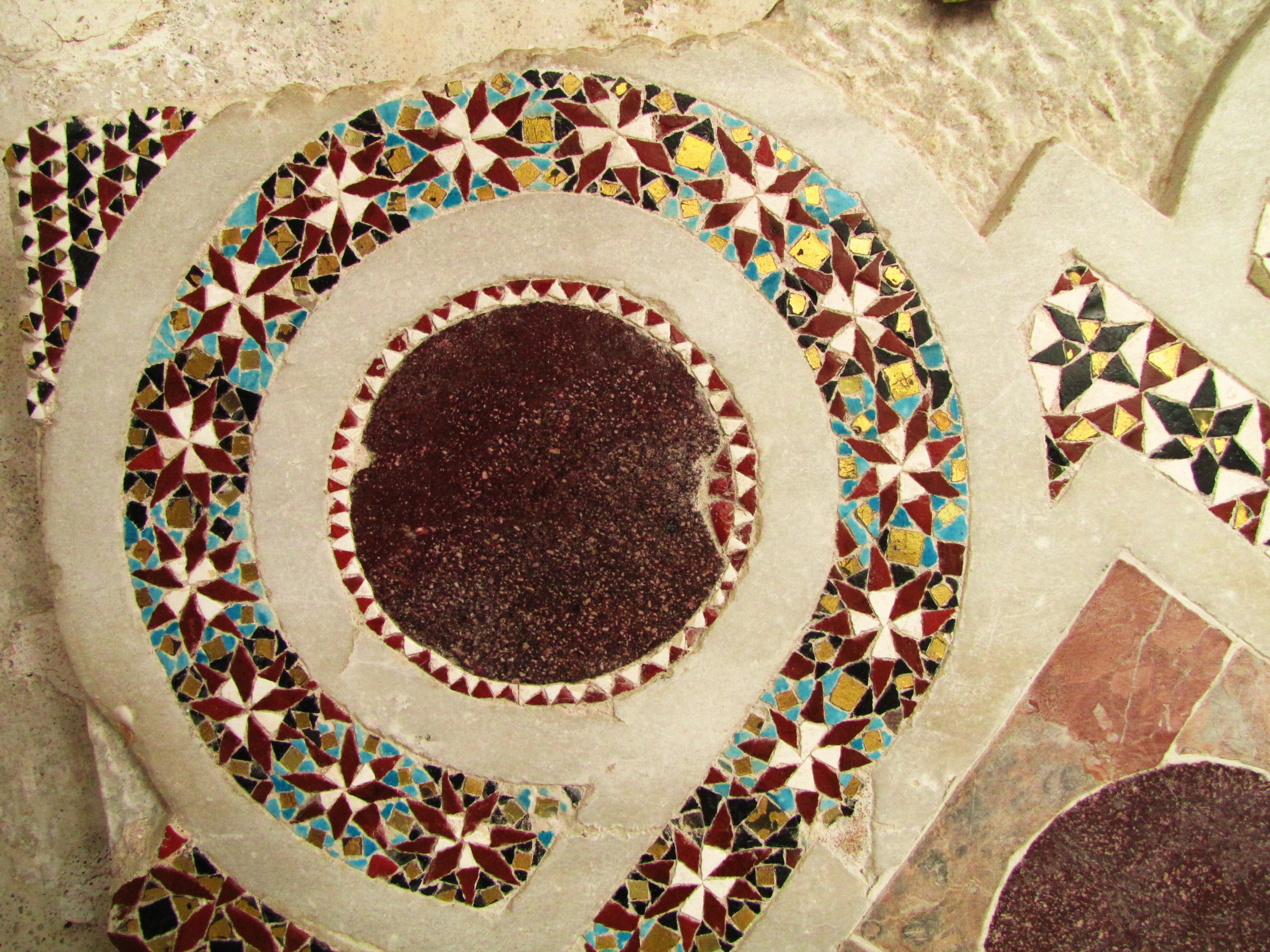 Oproti tomu zevnitř má katedrála byzantskou výzdobu, sloupy, fresky a sloupy ze starořímských staveb:
