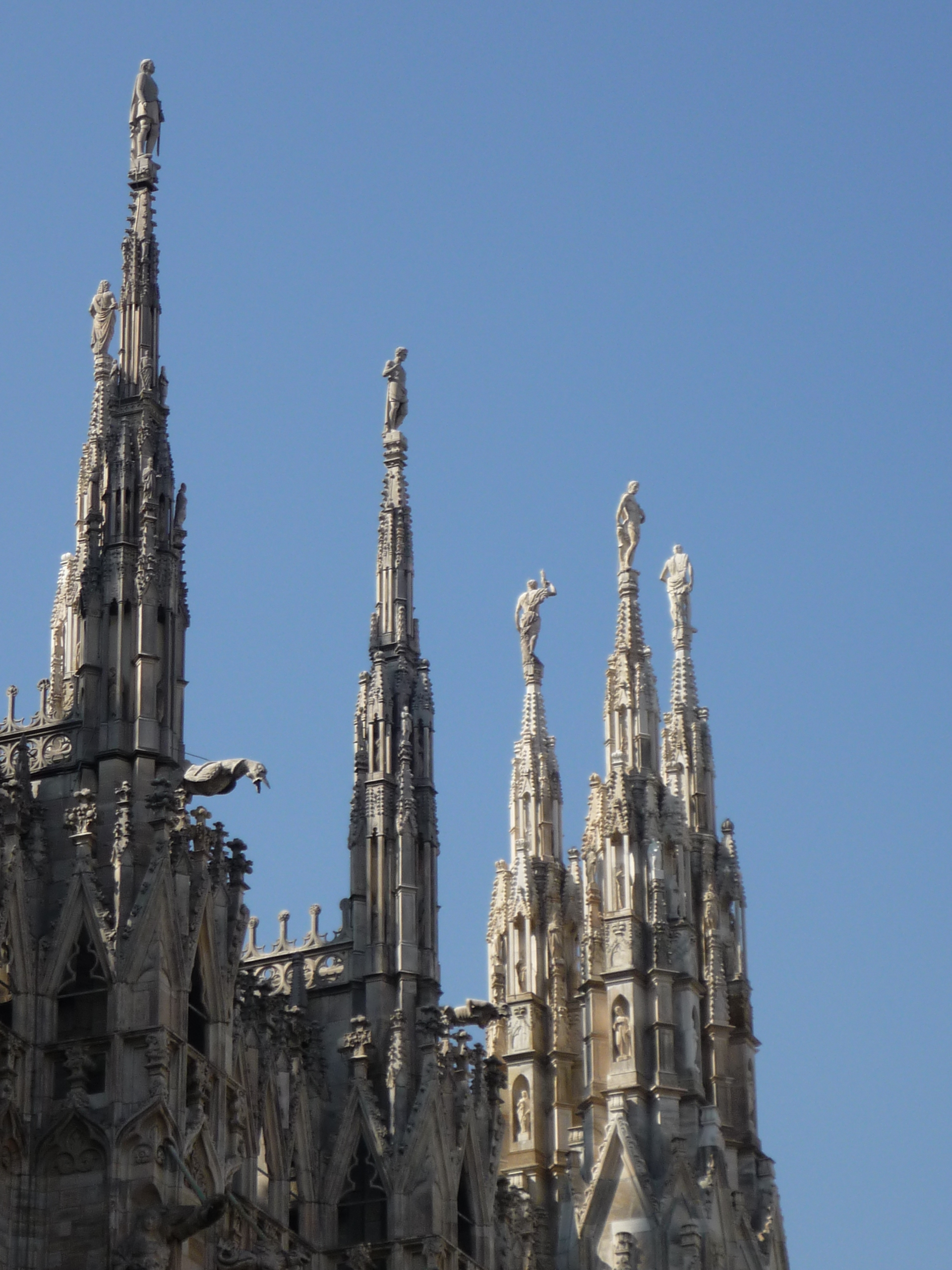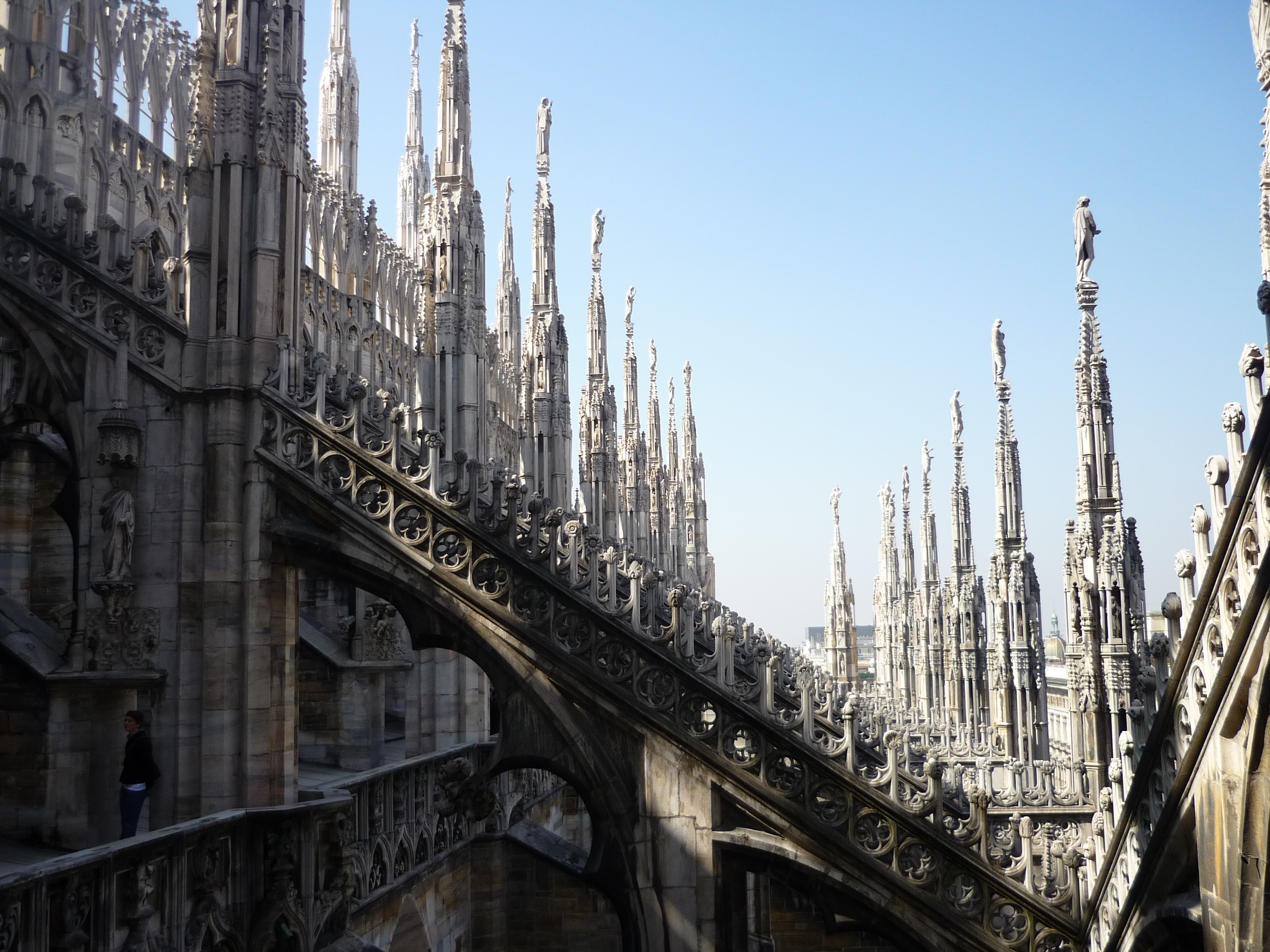 První, co je třeba po příjezdu do Milána povinně udělat, je vylézt na střechu Duoma. To je sněhobílá gotická katedrála ve středu města, která má něco, co se jinde jen tak nevidí – přístupné schody (či výtah) až nahoru, kde se můžete libovolně dlouho procházet mezi gotickými fiálami, ozdůbkami a sochami a shlížet na město. Dokonce odtud dohlédnete za dobrého počasí až k Alpám.