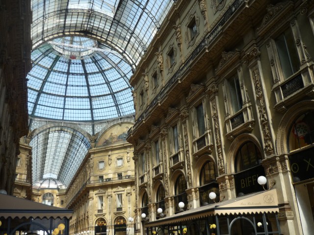 Nejslavnější nákupní galerie Vittorio Emanuele II. vede přímo z Piazza del Duomo k Piazza della Scala (čili k té světoznámé opeře). Vybudována na konci 19. století, ukazuje obyčejným smrtelníkům, zač je toho loket, a o čem si mají nechat zdát.