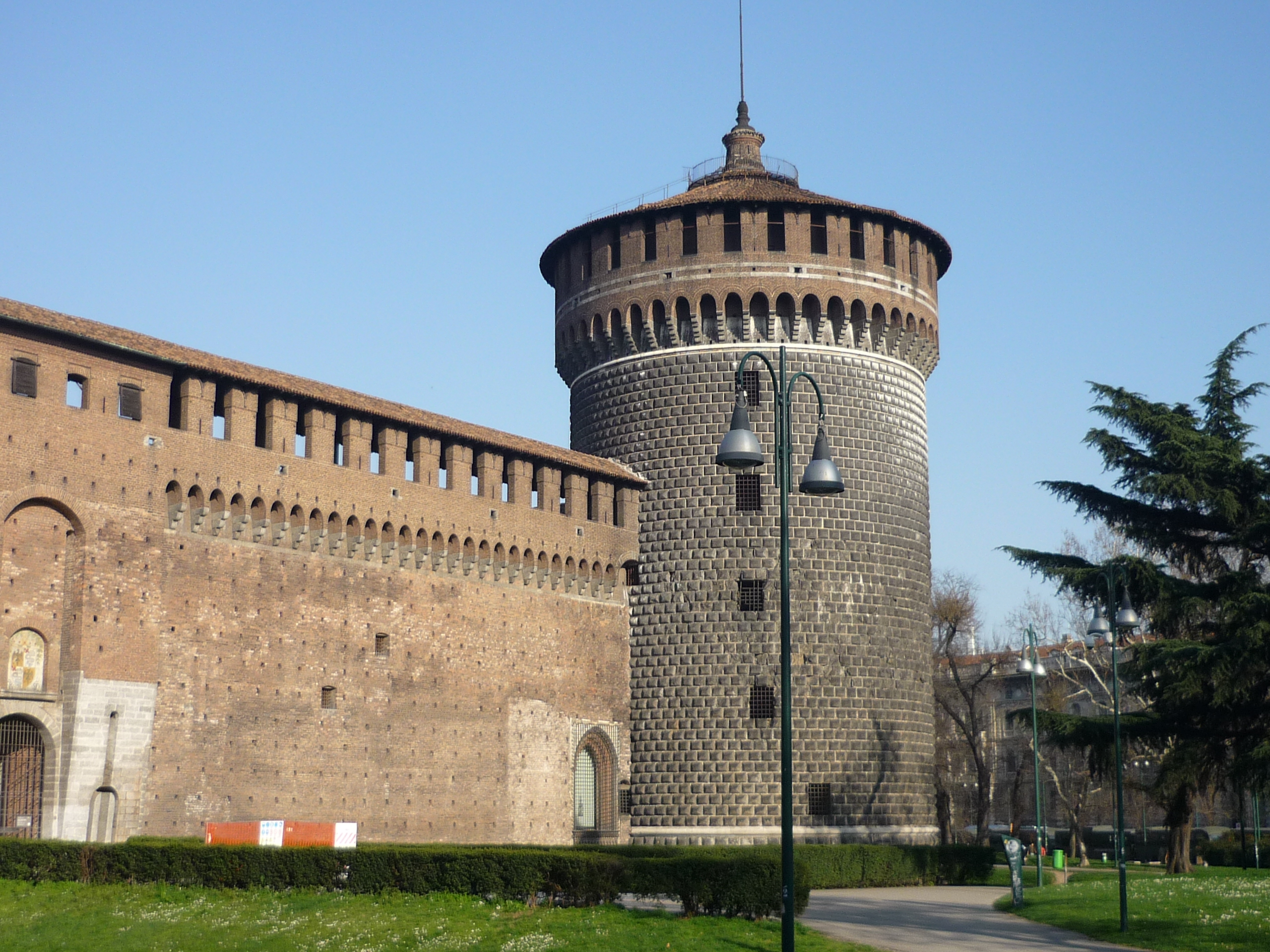 Krásná procházka je kolem hradu Castello Sforzesco ležícího uprostřed klidného parku Sempione plného vody, stromů a květin. V hradu je několik muzeí na něž Vám stačí jedna vstupenka (a můžete tu strávit celý den), na konci parku je pak slavné muzeum italského designu, kultovní Triennale. To bylo v době naší návštěvy zrovna v rekonstrukci, takže reportáž někdy příště;). Obranu hradu (příkopy, střílny, hradby, atp.) navrhoval Leonardo da Vinci: