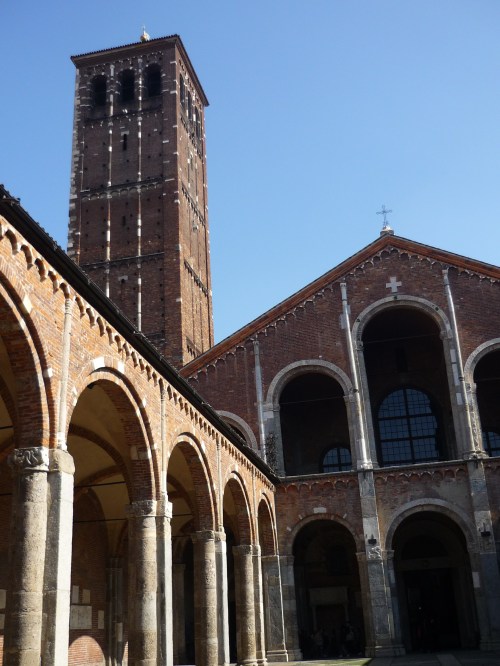 Dle mého názoru také v Miláně rozhodně stojí zato bazilika Sant’Ambrogio, založená ve čtvrtém století a později podstatně rozšířená v románském období. Má krásnou mozaikovou výzdobu, úžasný oltář a zejména hrobku s vystavenou kostrou (dost děsivé). Tady si můžete o bazilice přečíst bližší informace a popis zajímavostí, které je třeba zhlédnout. Pro mne byl zajímavý kontrast tmavého interiéru baziliky s chrámy na jihu Itálie.