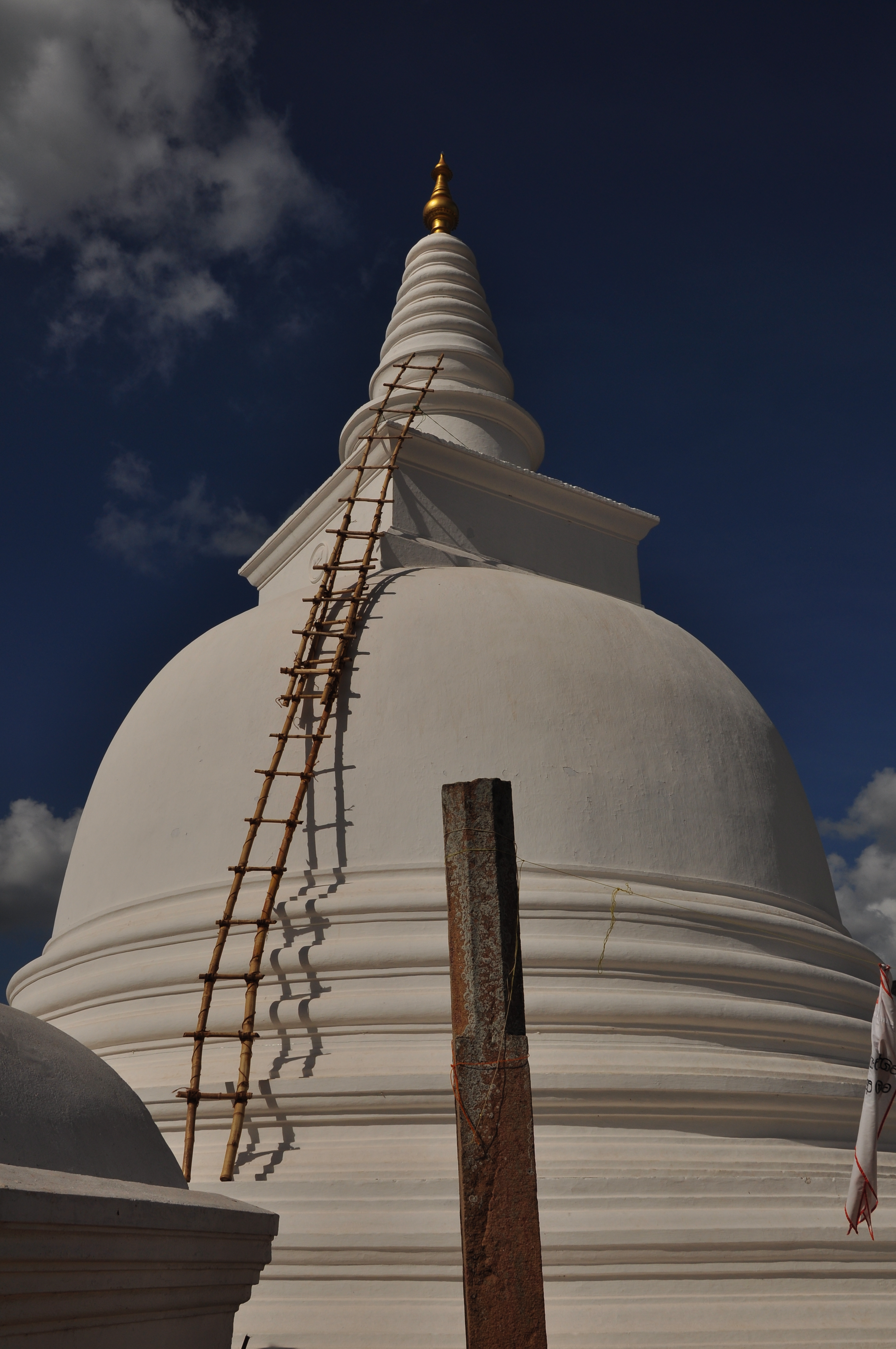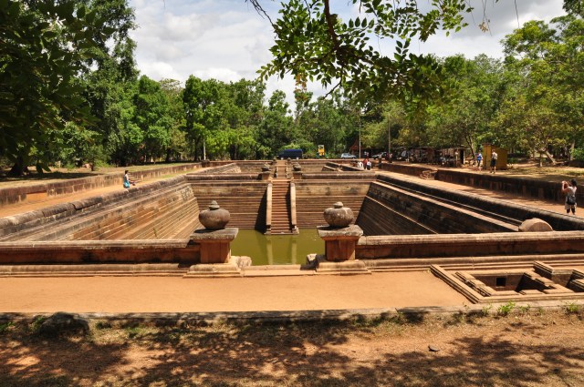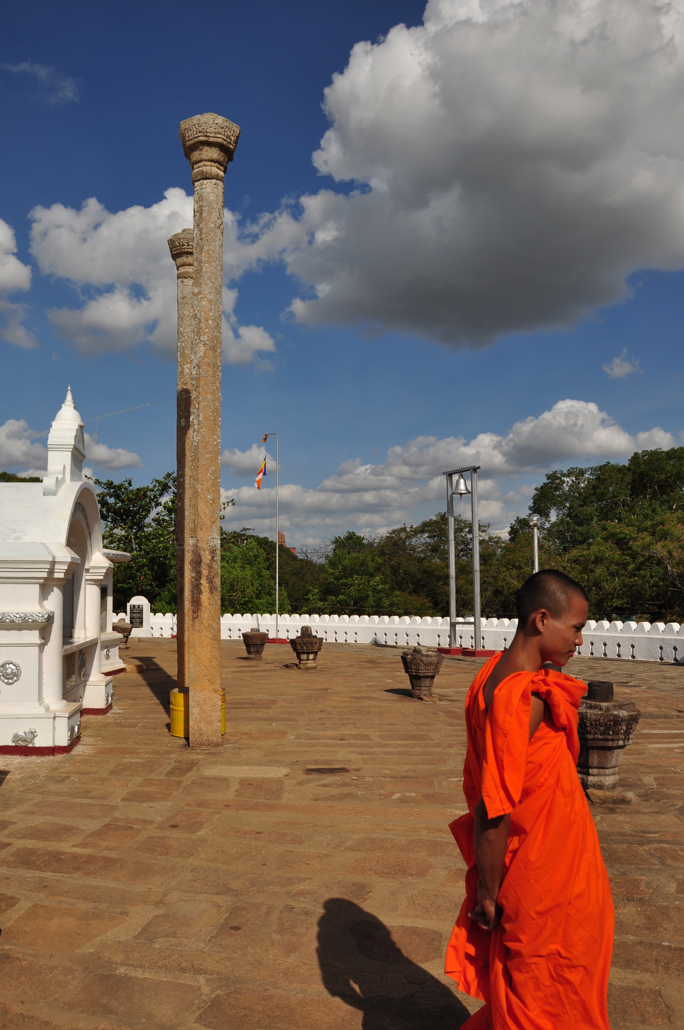 V patek rano jsme tedy dojeli vlakem plnym vetraku do severni suche casti Sri Lanky do historickeho singalskeho mesta Anuradhapura. Nasli jsme bydleni, vyhandlovali tuk-tuk a jeli na cele odpoledne do chramoveho stareho mesta. Anuradhapura je kolebkou srilanske civilizace a je tu mimo jine treba nejvetsi cihlova budova na svete – buddhisticka dhagoba z 19 milionu cihel, nebo treba uzasne staroveke bazeny, koupele, sochy Buddhu, palace, klastery pro nekolik set tisic mnichu, a nejstarsi buddhovnik na  Sri Lance. Tak soukrome rikam stromu druhu Bo, pod kterym meditoval Buddha, kdyz byl osvicen. Tady je strom samozrejme taktez predmetem uctivani, vede k nemu dlouha cesta, po ktere musite bosky,  na konci je strom tak obklopeny chramy, ze z nej stejne nakonec nic nevidite….
