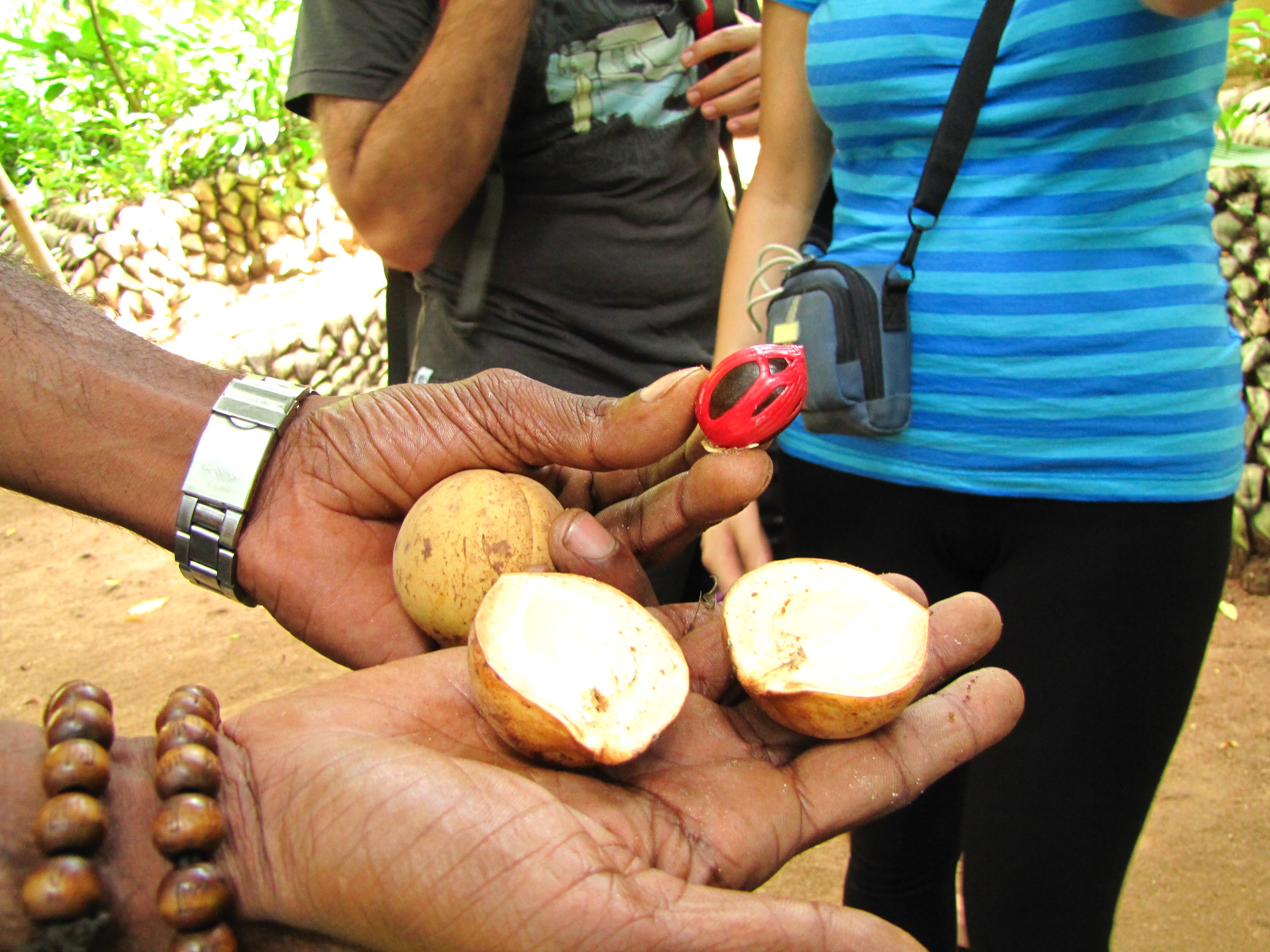 Nez jsme dojeli ke slonum, stavili jsme se jeste v Herbs and Spice gardens. To je ukazkova zahrada plna ruzneho koreni a lecivych bylin, sponzorovana vladou. Vyrabi ruzne masti, leky a oleje, vse prirodni, very natural, jak nam bylo zopakovano asi tricetkrat:) Takze konecne vim, jak vypada rostouci vanilka, skorice, santalovy strom, muskatovy kvet i orech, kardamon a spousta dalsich bylin. Skoro nic jsme si ale nekoupili, ac pro vladu, vse bylo predrazene. Nicmene, byla to velmi zabavna a poucna hodina.