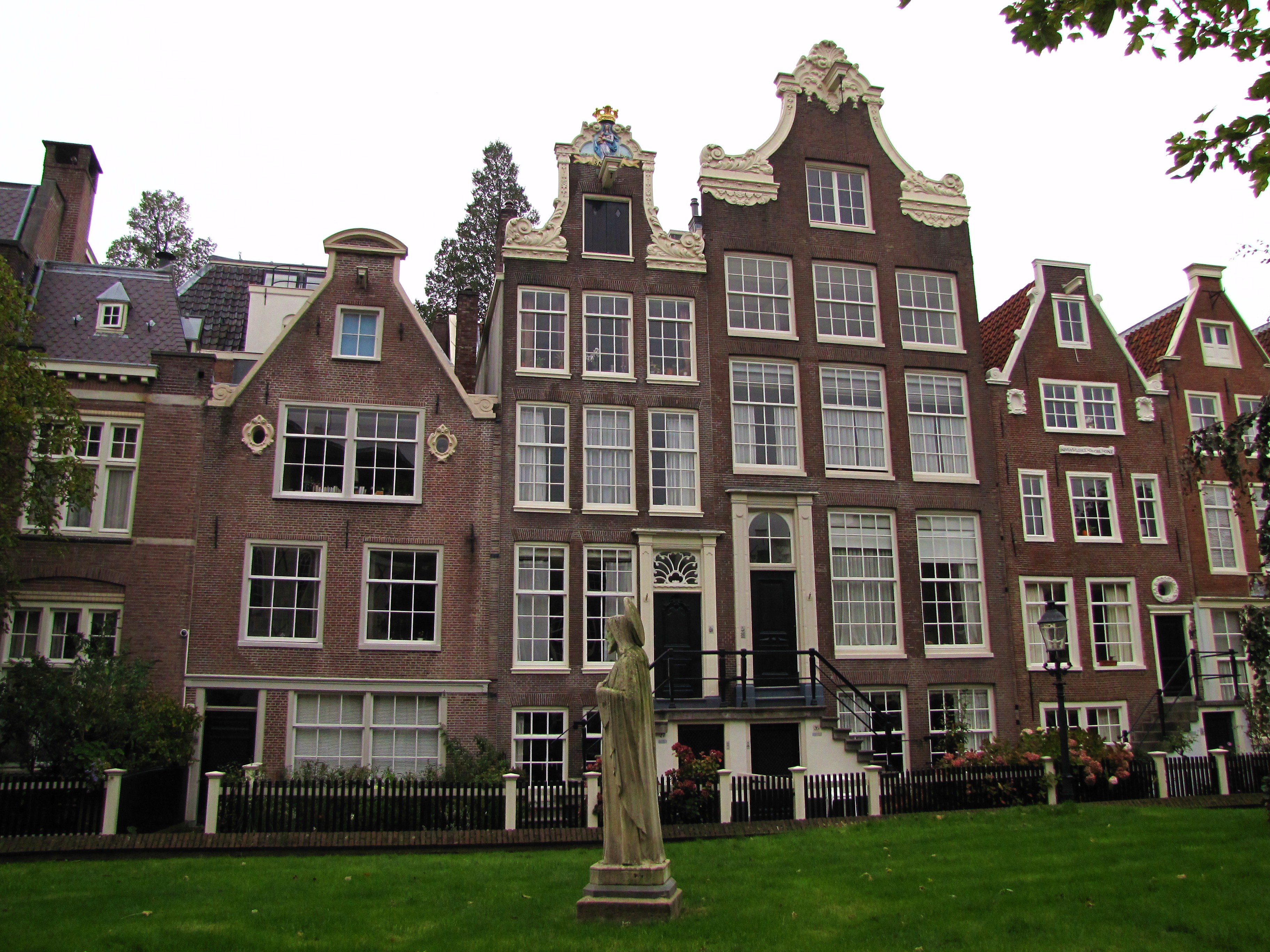 Prvním zastavením je Begijnhof. Z rušného náměstí Spui vede nenápadná úzká ulička, která po pár metrech ostře zahýbá k průchodu do komplexu katolického útulku pro  svobodné ženy.  Zelené náměstíčko obklopené 41 domky ze sedmnáctého století bylo založeno už ve století čtrnáctém a nachází se zde nejstarší dům celého Amsterdamu. Dodnes v Bejinghofu žijí svobodné katolické dámy a je třeba se zde chovat tiše a s úctou. Dvířka na Spui i průchod do uličky se uzavírají v pět hodin, aby dámy nebyly večer rušeny zvědavými turisty.