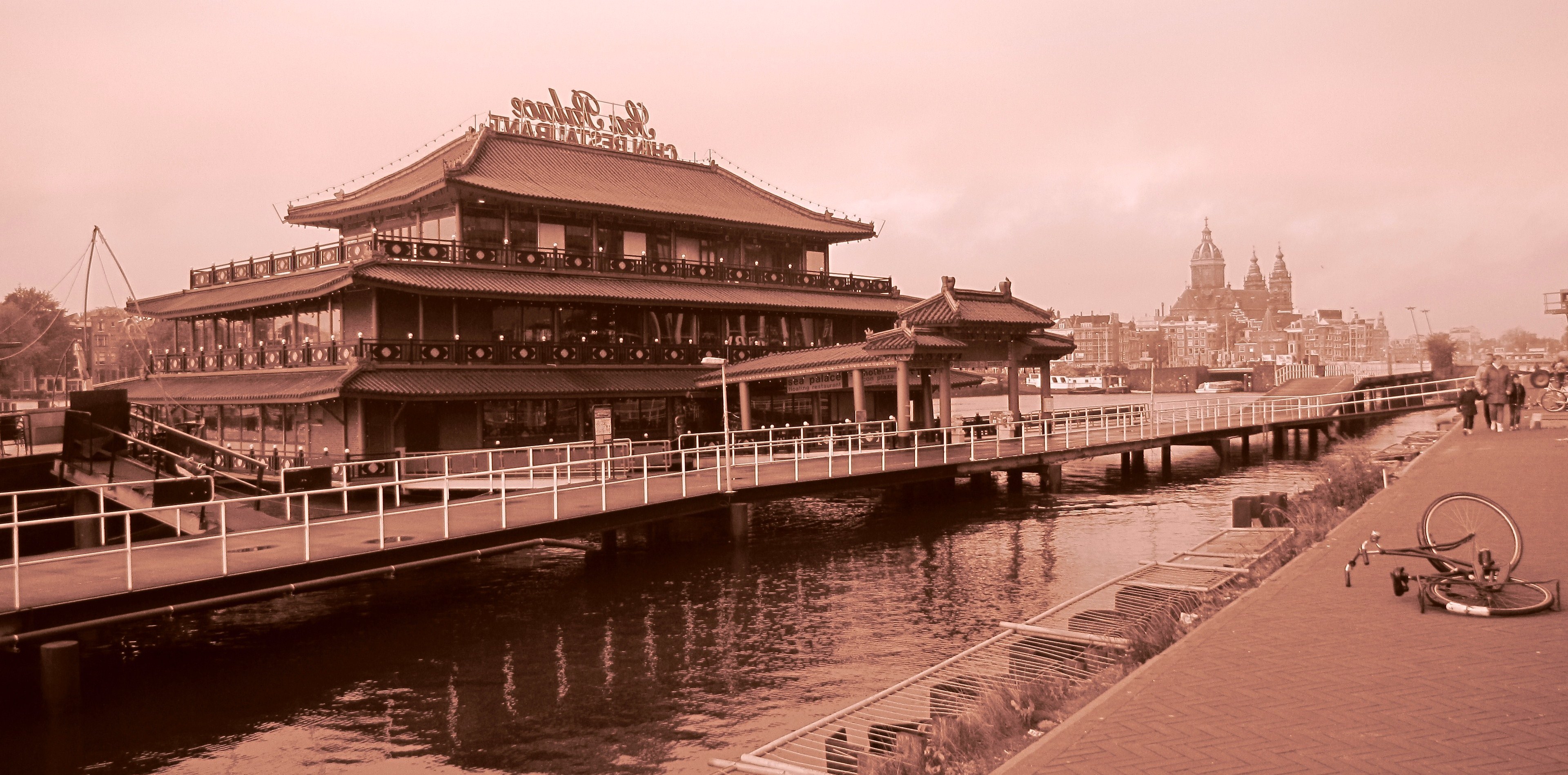 A kosmopolitní opravdu je, jak je vidět například z obří čínské restaurace plovouci na pontonu u jednoho z grachtů: