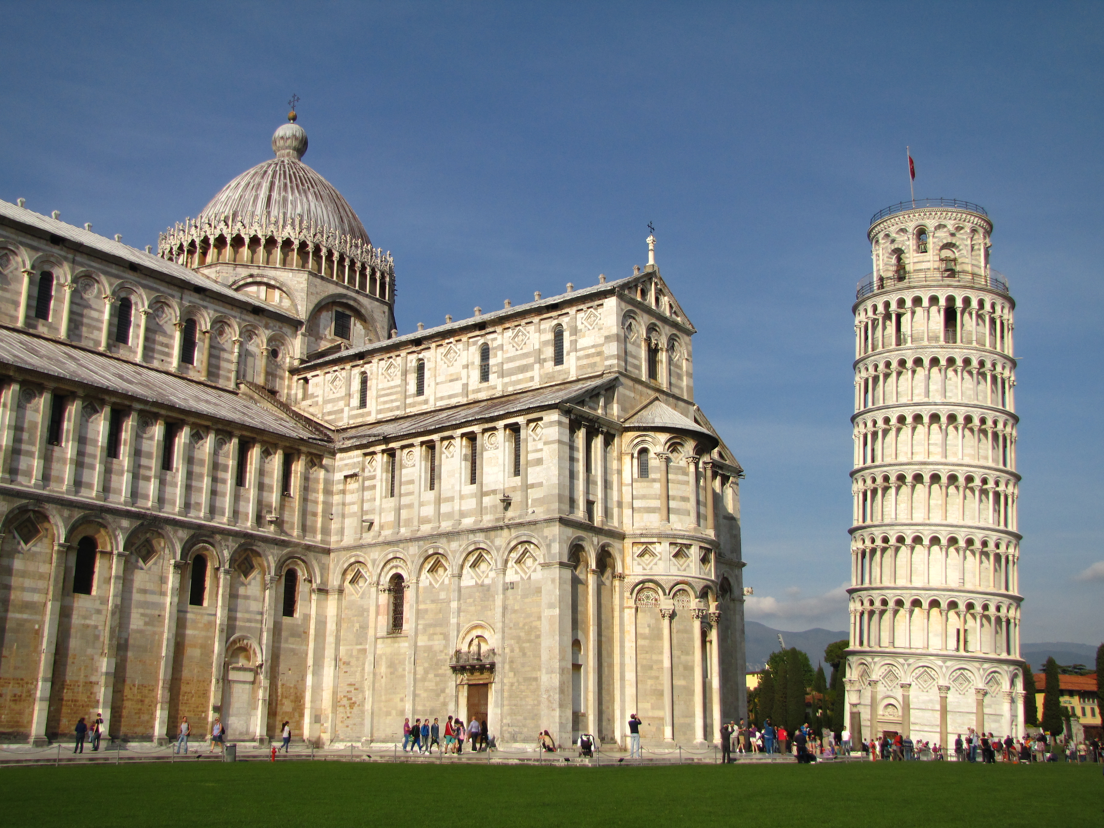 Piazza dei Miracoli (aneb Náměstí zázraků) rozhodně dostojí svému jménu. Na obrovském zatravněném náměstí se proti nebi črtají zářivě bílé románské klenoty – katedrála a babtisterium, vedle kterých se zdá samotná Věž drobná a jaksi vedlejší.