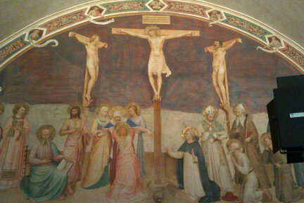 Ostudné je, že do té doby jsem vůbec nevěděla, že nějaký Fra Angelico existoval. Mea culpa, přátelé. Byl to úžasný raně renesanční autor a jeho fresky Zvěstování narození Ježíše či Ukřižování, to jsou opravdu mistrovská díla, před kterými padá brada.