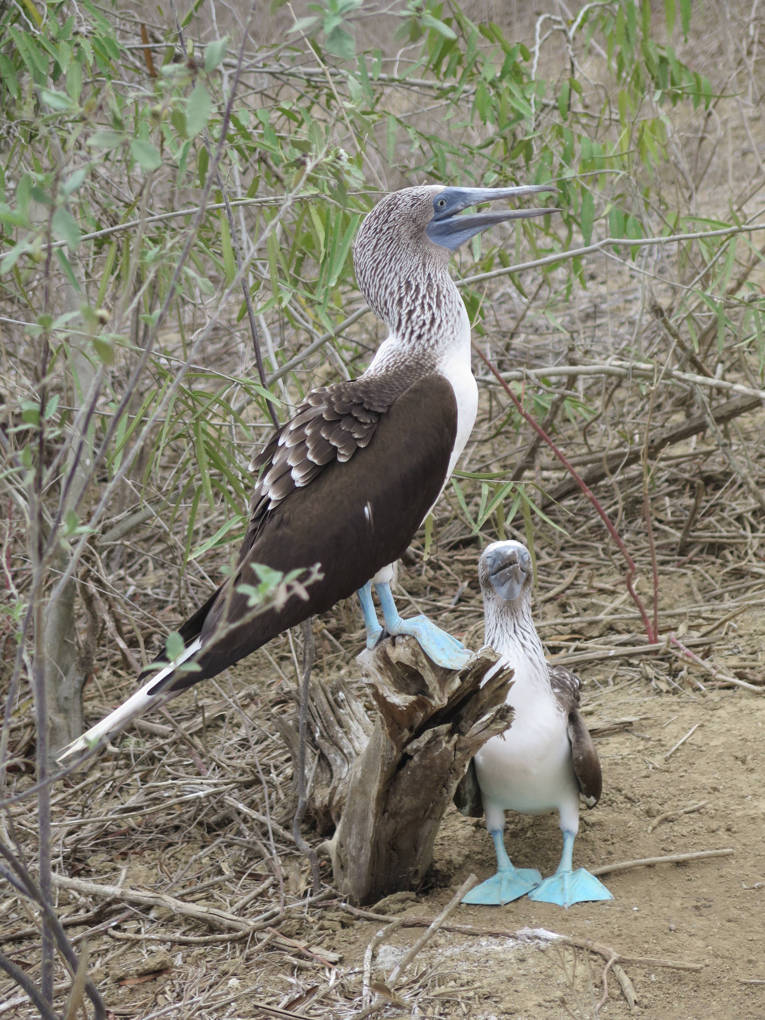 Ti modronozí terejové jsou výborní, vypadají trochu jako přihlouplí klauni s obříma modrýma botama. Ve skutečnosti jsou to ale šikovní lovci a umí lovit i pod vodou. Ten větší je samice, ten, co ji tak zhypnotizovaně miluje, to je její manžel. Prý sem občas zavítají i terejové červenonozí, ale ty jsme nepotkali.