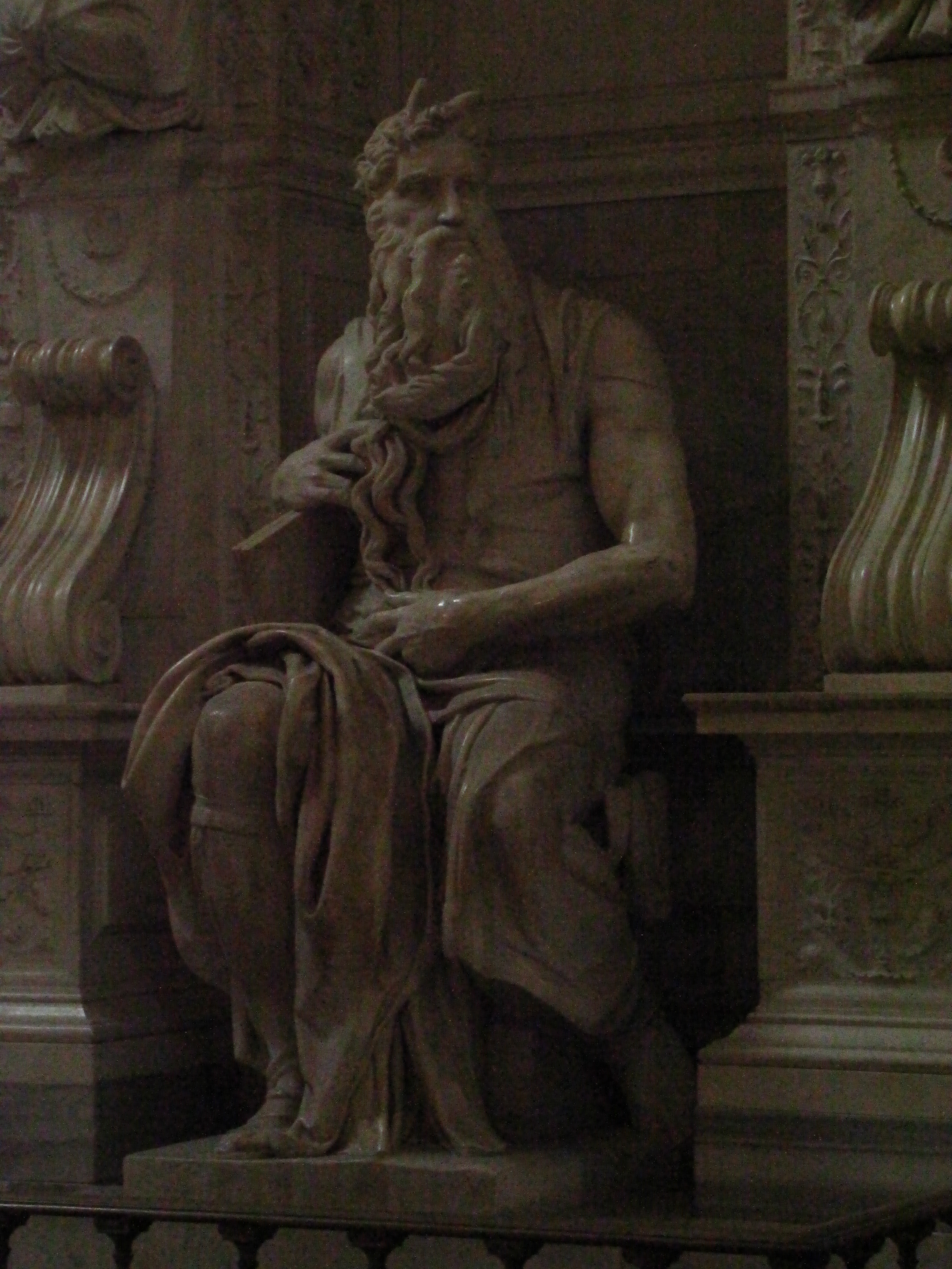 Poslední fotka, kterou sem dnes dám, je špatné kvality, protože jsem ji fotila jen tak z ruky v téměř úplné tmě, ale je jasné, že do galerie uměleckých skvostů se toto dílo řadí a jsem moc ráda, že jsem ho viděla naživo. V kostele hned vedle našeho hotelu se nacházely dvě význačné sochy – mladý Ježíš a rohatý Mojžíš, obě od Michelangela.