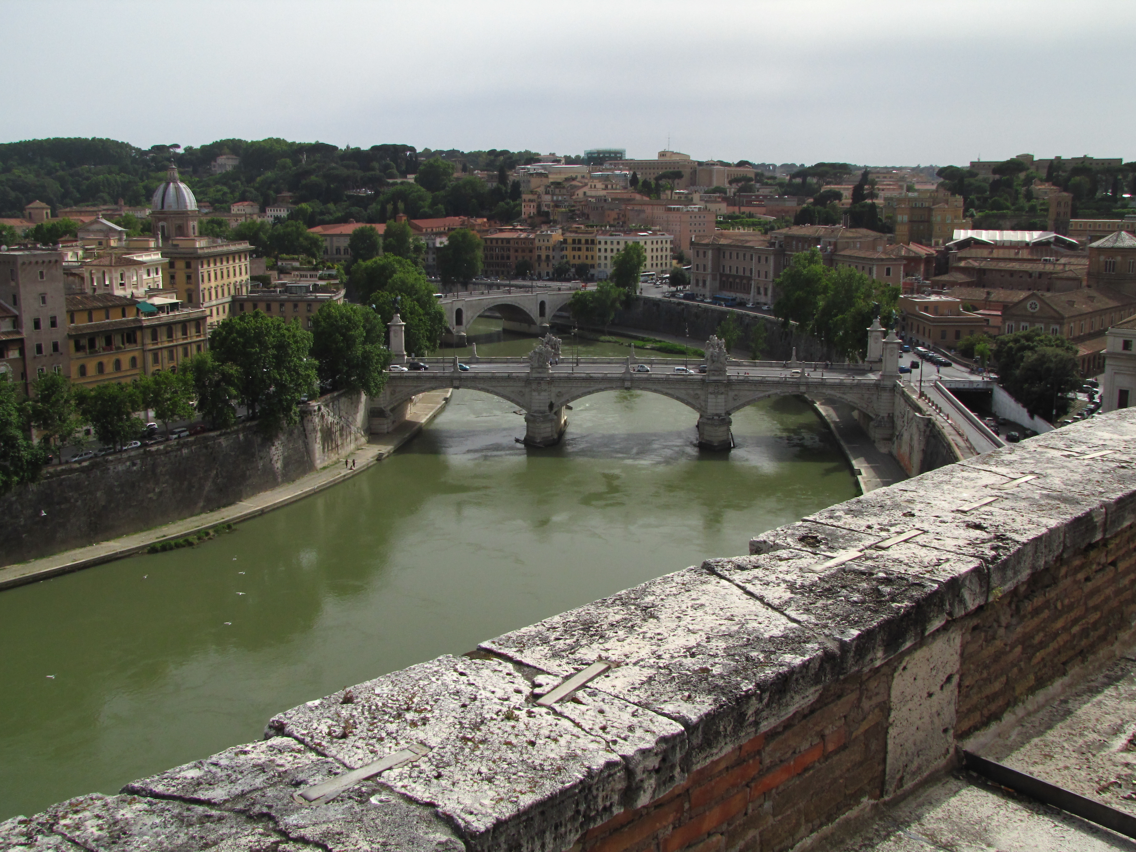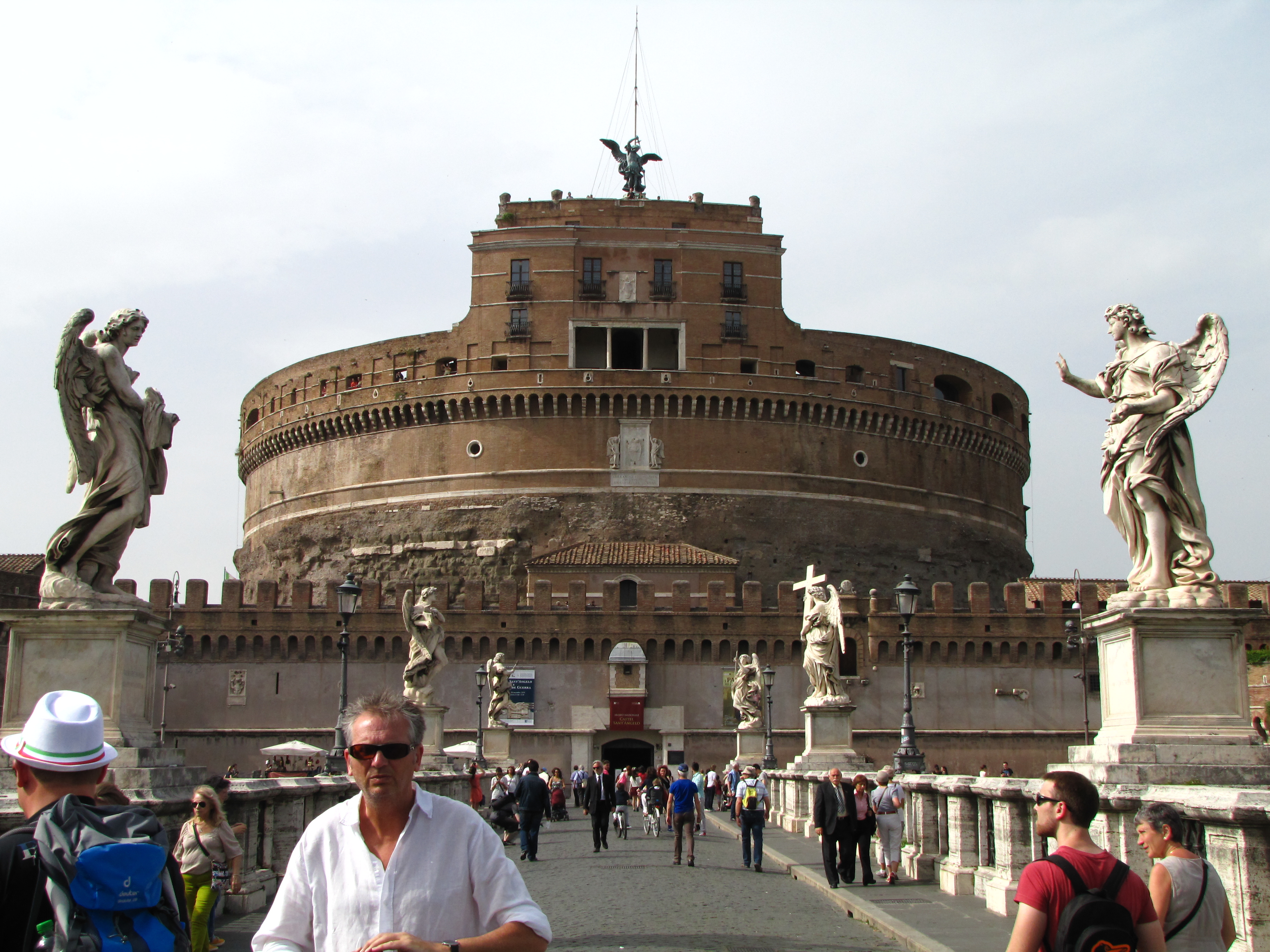 Cestou z Vatikánu jsme vystoupili u Andělského hradu, slavné pevnosti kulatého půdorysu, která leží na břehu Tiberu. Uvnitř za hradbami není v dnešních dnech v podstatě nic, ale z vrchního ochozu jsou krásné výhledy na panorama Věčného města, včetně Kapitolu a Pallatinu.