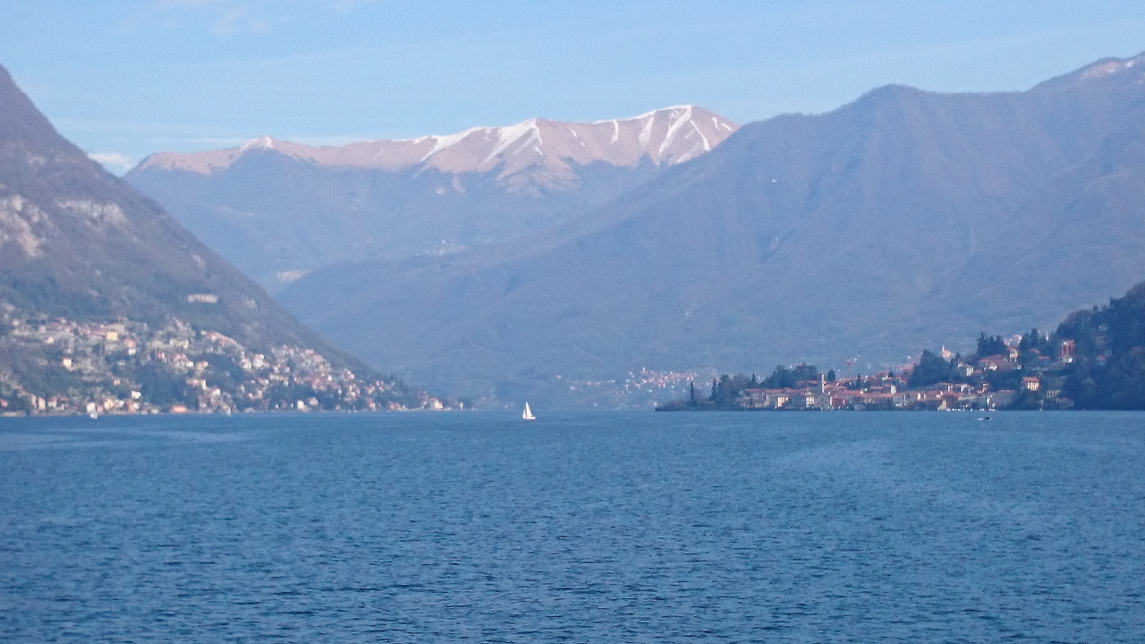 Na delší dobu poslední článek z Milána se bude týkat jednoho krásného dne na konci letošního března, který jsme s Týnou strávily na jezeře Como. Nejhlubší jezero v Itálii (přes 300 metrů) má tvar přes padesát kilometrů dlouhého obráceného ypsilonu a leží na sever od Milána. Bylo vytvořeno posunujícím se ledovcem a je napájeno ledovou vodou z Alpských vrcholků. Je a byla to však oblast oblíbená evropskou smetánkou, která si na jejích březích vybudovala mnoho luxusních sídel, honosných vil i lázní. Ráno jsme sedly na vlak a za necelou hodinu jsme vystupovaly na břehu jezera v městečku Como. Shlédly jsme předvelikonoční procesí, kdy do místního Duoma vstupovali věřící nechat si požehnat palmové listy a olivové větvičky, obešly vykopávky starořímských lázní, městské hradby a místní trh a nalodily jsme se na výletní loď, která obstarává dopravu po jezeře. Vydaly jsme se na sever, směrem do „nožičky“ písmene Y.