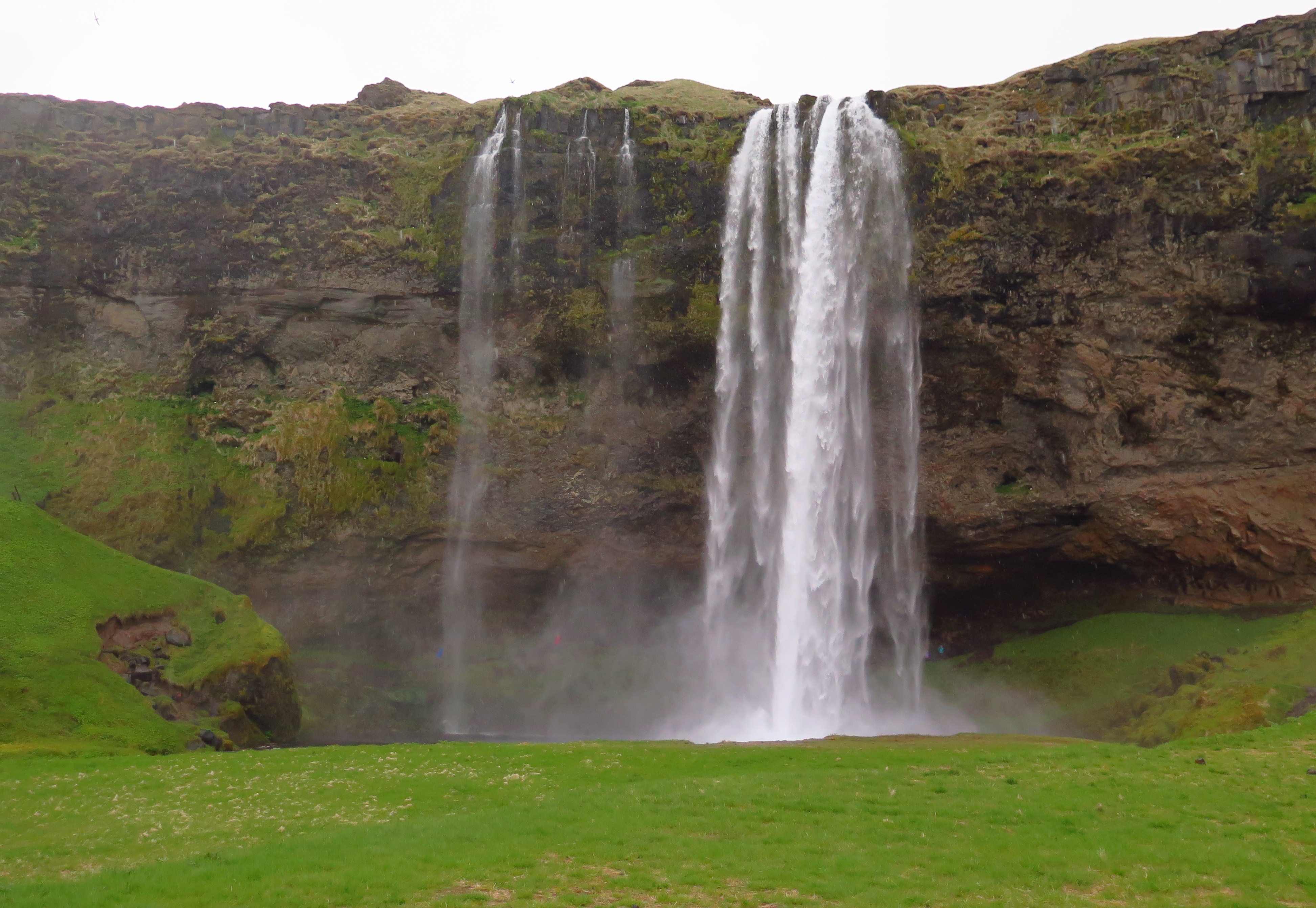 Ještě než jsme šli spát (ráda bych napsala, dřív než se setmělo, ale takhle to na Islandu prostě v létě nefunguje), jsme se podívali na první, nejvyšší a nejmohutnější z vodopádů, šedesátimetrový Seljalandsfoss. Na tomto místě si již jistě pozorný čtenář všiml, že vodopád se řekne islandsky foss. Gratuluji, naučili jste se právě jedno z mála slov, které dokáže neislanďan vyslovit, aniž by si zlámal jazyk nebo poprskal lidi kolem sebe…..