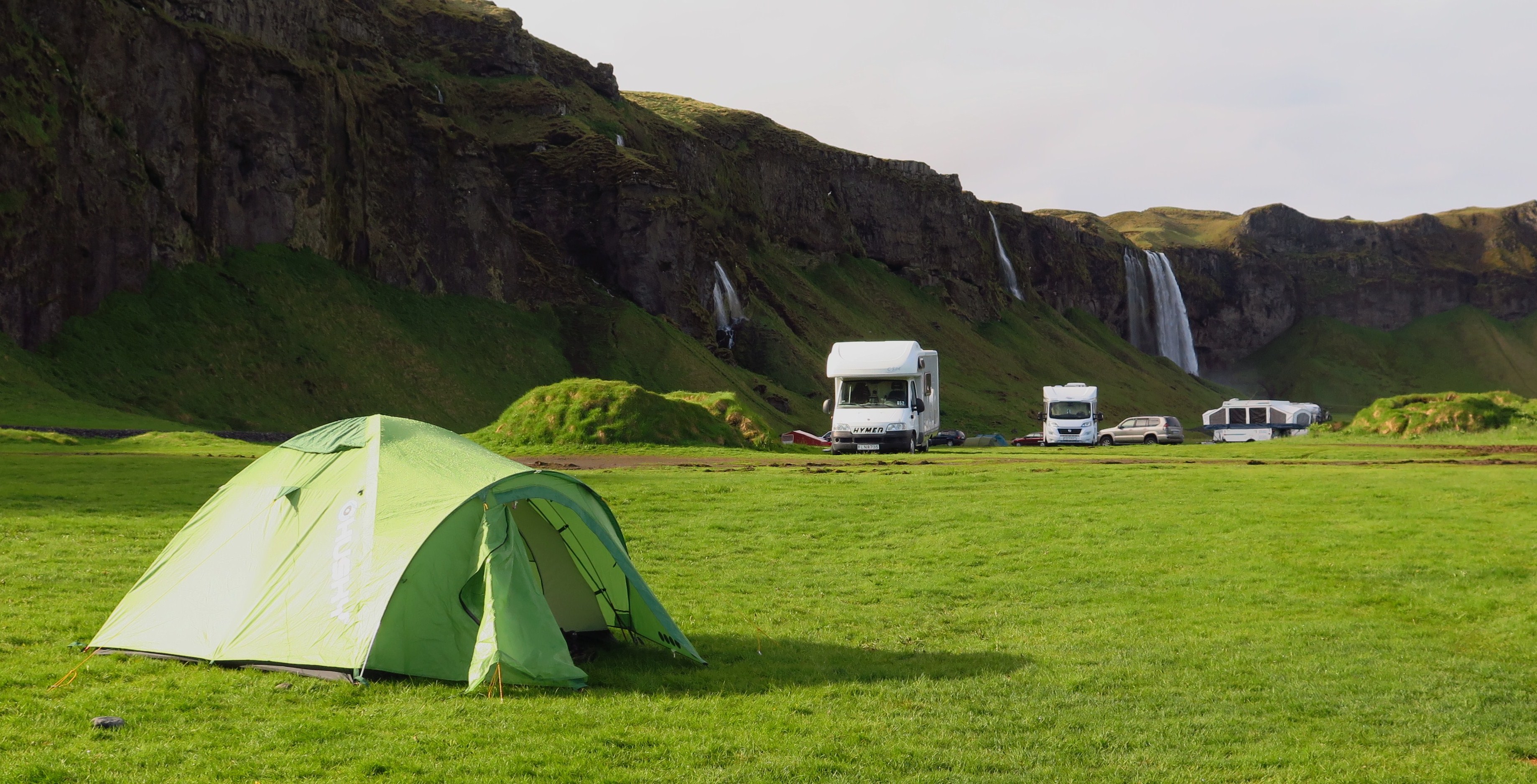 Vlastně jsem v minulém postu nepopsala zábavný konec prvního dne na Islandu. Zatímco jsme jeli po Ringroad směrem k Eyjafjallajökullu, lilo jak z konve a okolní rovinatá krajina byla přikryta nad zemí se převalujícími šedými mraky. Když jsme se blížili k prvním horám, podařilo se nám dešti ujet. A toho jsme využili a postavili stan na nejhezčím tábořišti, které jsme na Islandu viděli: asi sto metrů od jednoho ze čtyř vodopádů padajících z převisu přímo nad stany.
