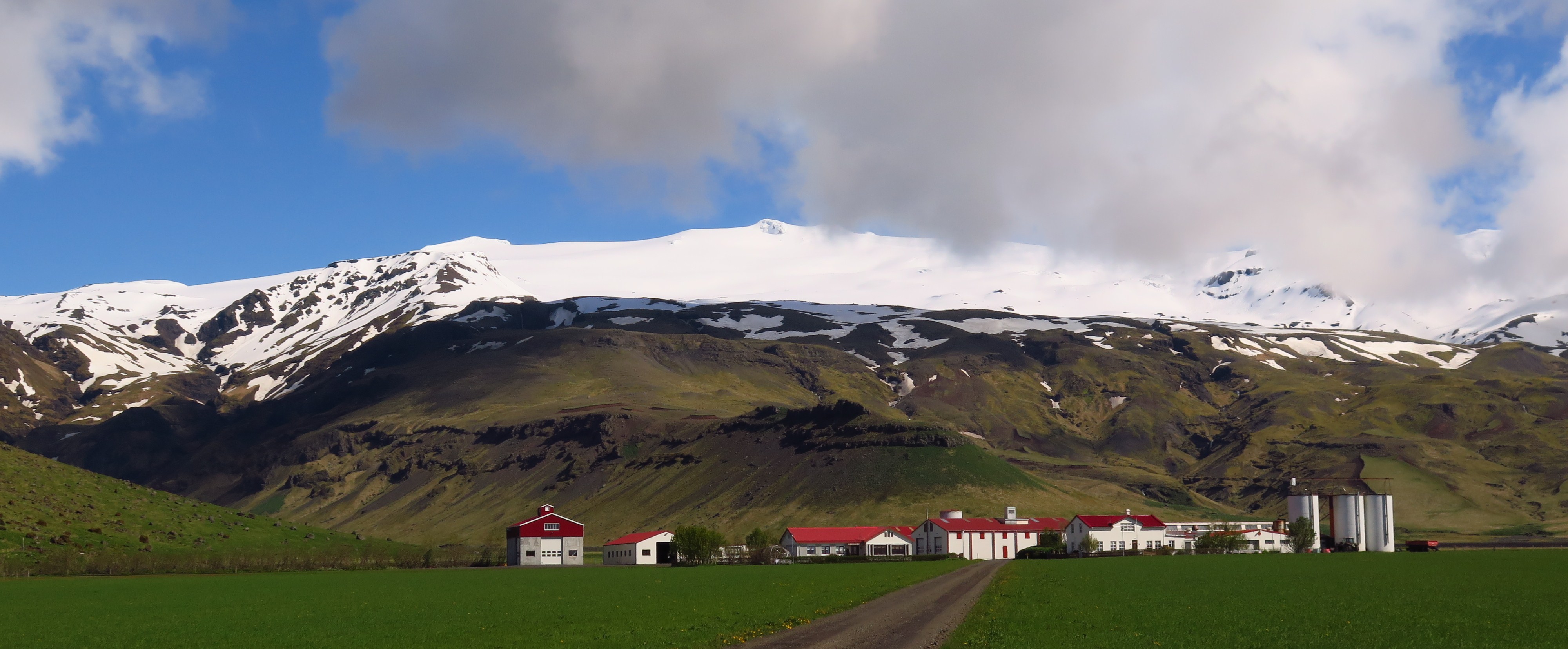 Když jsme se dosyta vynadívali na padající vodu – a přiznávám, že se mi chtělo ječet nadšením -, ještě jsme vylezli po řetězu nahoru na skálu a obdivovali pohled na vodopád tentokrát zeshora. Pak jsme nasedli do auta a vydali se po pobřeží dál na východ, přičemž jsme nestihli zírat na nádherné vodopády, jejichž prostřednictvím se ledovec pokrývající sopku Eyjafjallajökull zbavuje vody. Jeden za druhým se řítí z dlouhého a vysokého útesu připomínajícího stolovou horu, a kdybych vám sem měla dávat jejich fotky, tak byste tady neviděli nic jiného. Dočetla jsem se, že ten útes kdysi býval pobřežím Islandu, ale dnes už je od něj asi pět kilometrů daleko, jak ho zvedly sopečné síly. Sopka je v krásném počasí vidět na dálku, jak se zvedá nad zelenými loukami posetými ovcemi, a na jejím úpatí se choulí tu a tam nějaká farma.