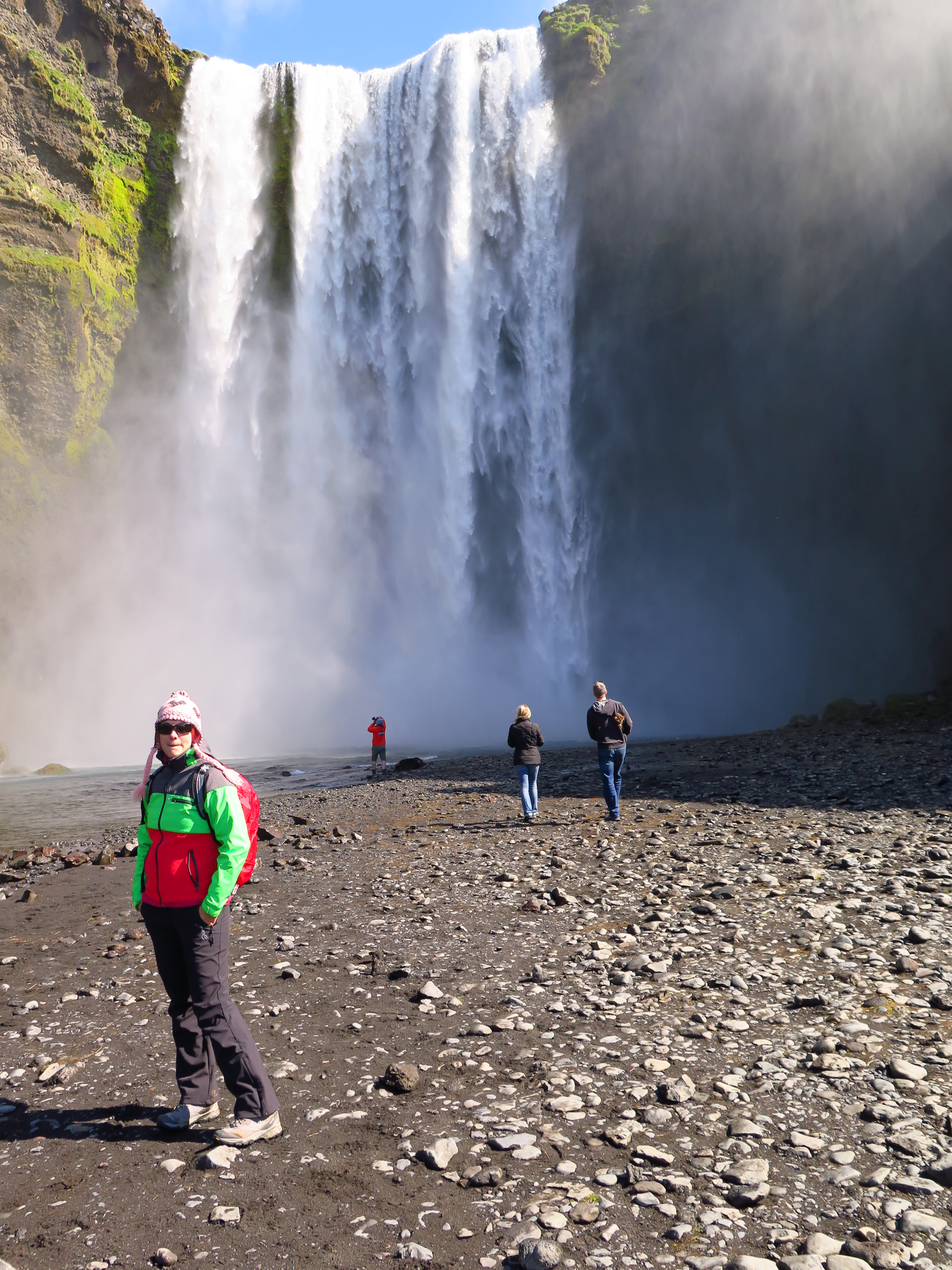 Nicméně, vodopád Skogafoss za zmínku rozhodně víc než stojí. Mohutný proud padá ze šedesáti metrů do tiché klidné zátočiny, kolem něj se vznáší duha a člověk se nemůže ubránit myšlenkám na to, odkud se pořád bere v těch horách tolik vody, že si mohou dovolit tak nádherné vodopády.