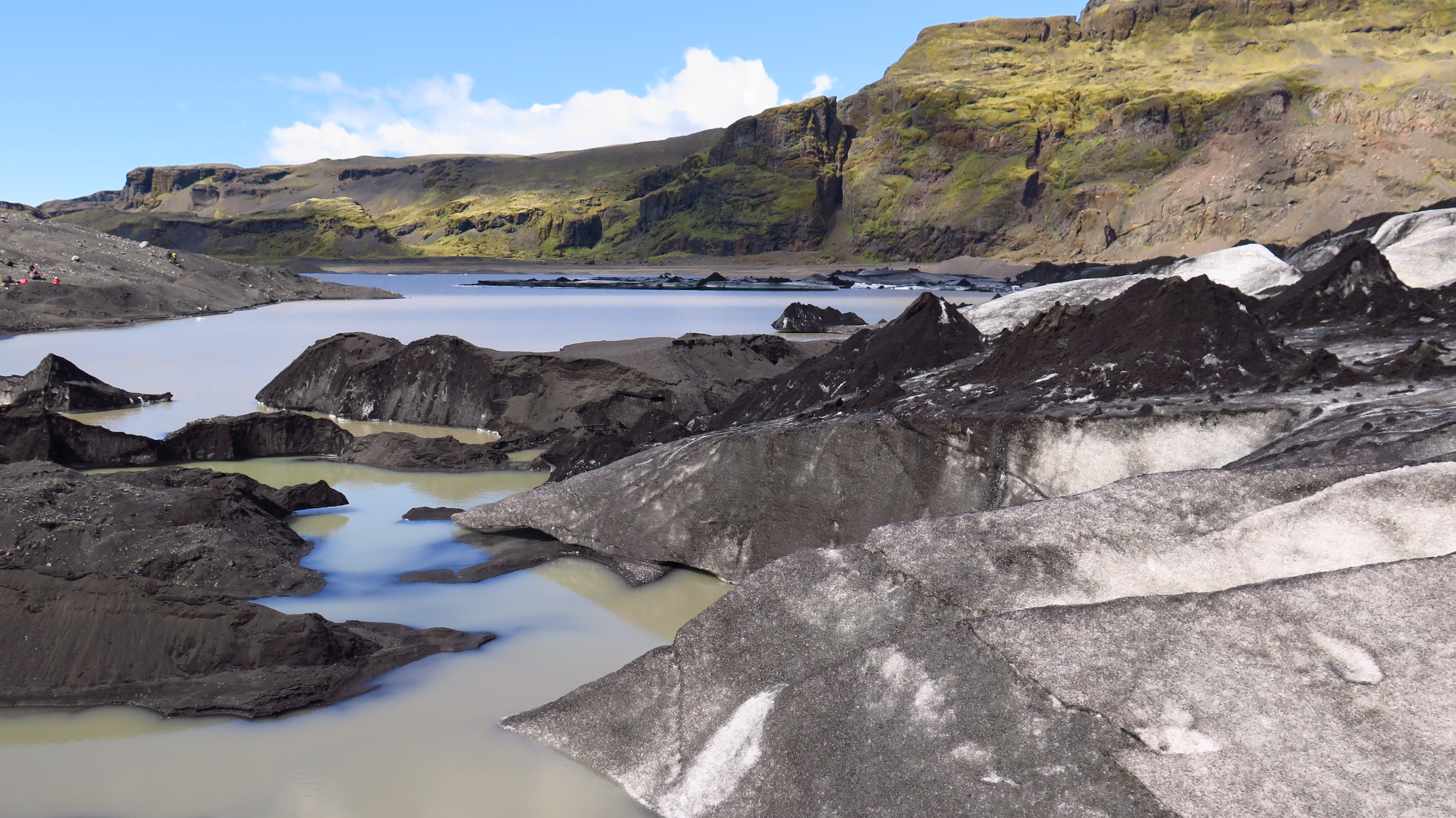 Na krátko jsme se také zastavili u čela jednoho z ledovcových splazů, který je součástí Mýrdalsjökullu.