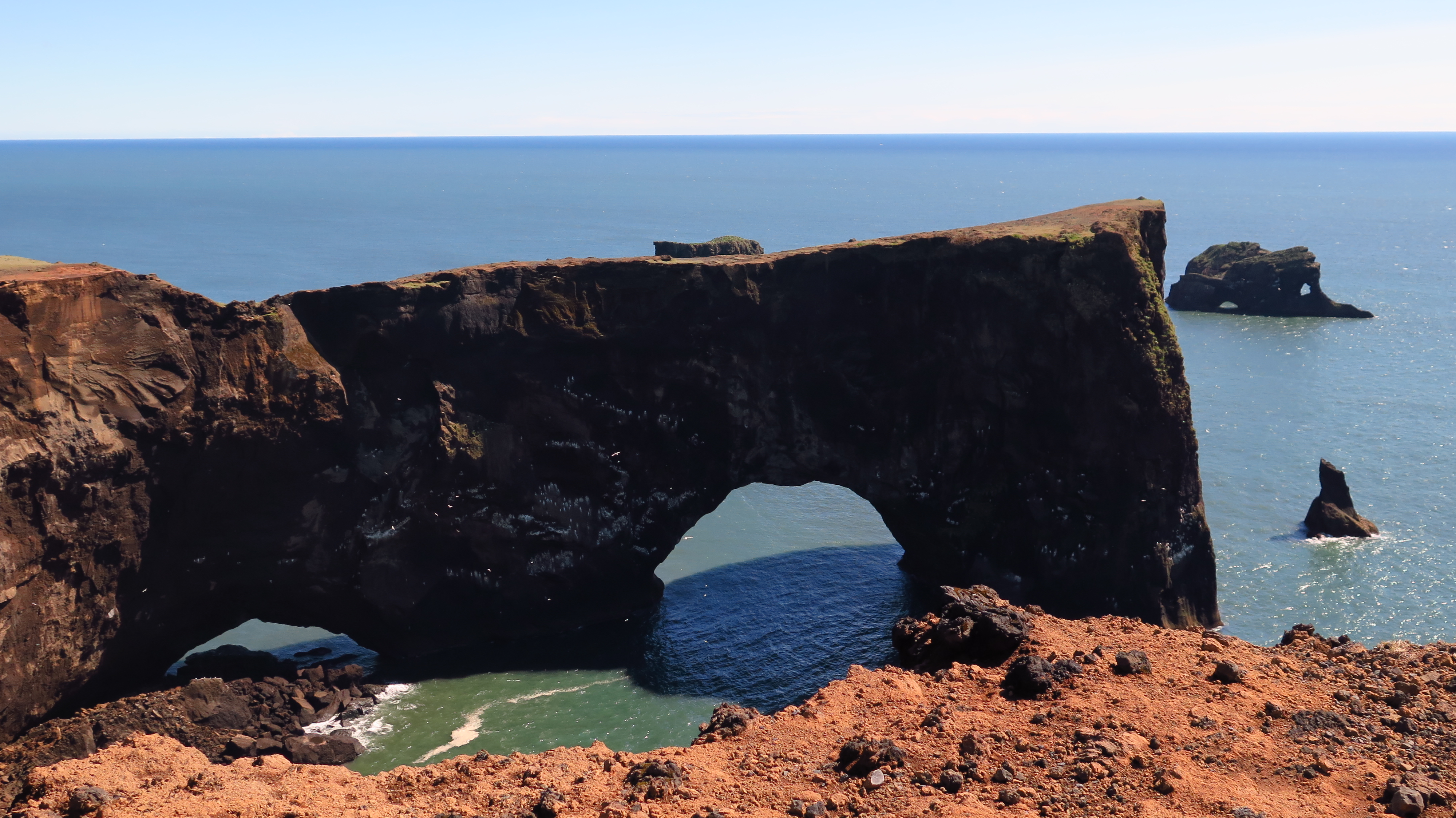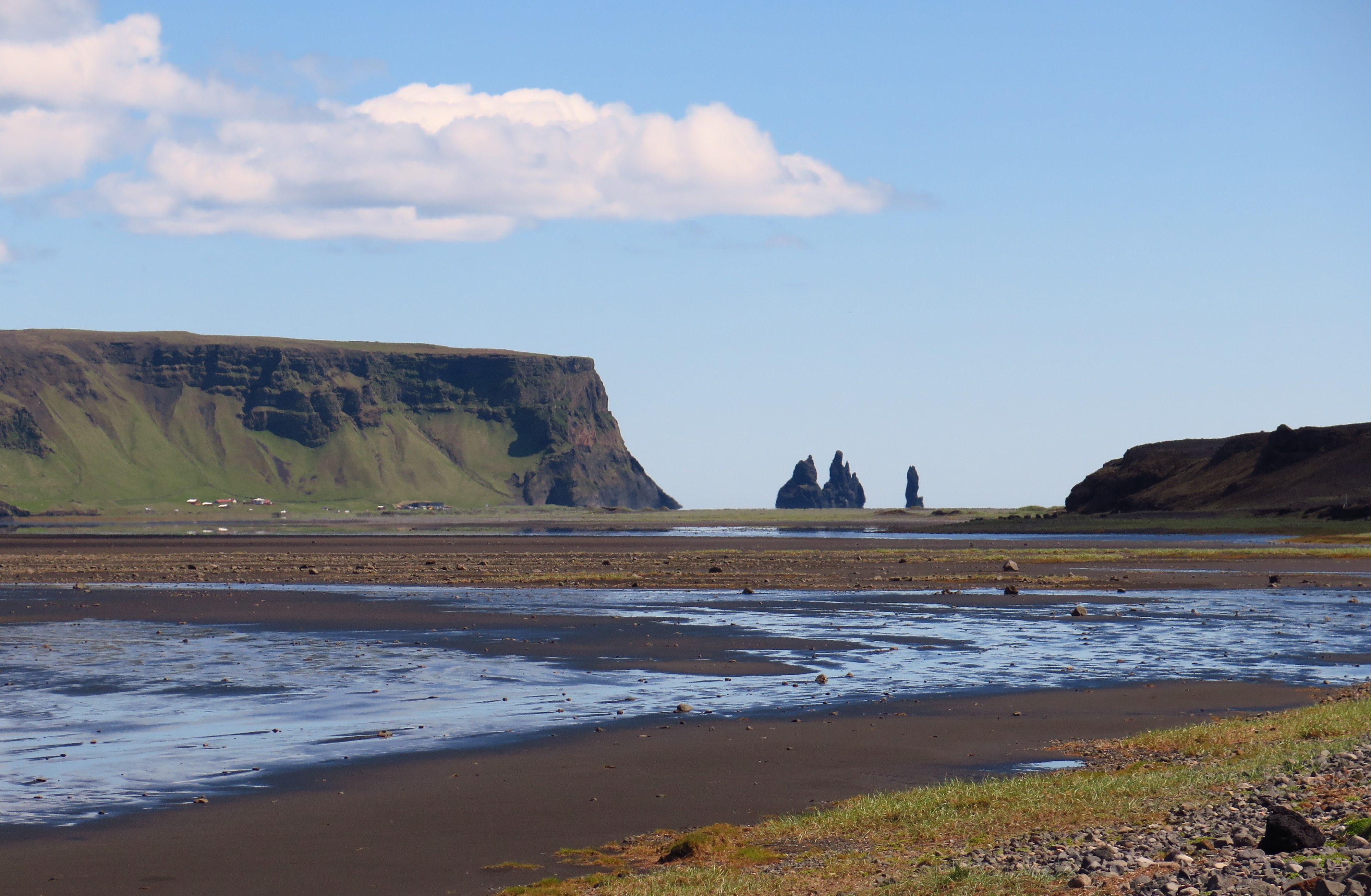 O kus dál leží nejjižnější bod Islandu, skalní výběžek Dyrholaey, od kterého se na obě strany táhnou nádherné pláže z černých sopečných oblázků. Je to nejdeštivější část ostrova, ale nám vyšlo nádherné počasí. Ty výhledy, ty barvy, ty skály, to moře! A nikde žádní papuchálci. No vážně….na Dyrholaey mají být největší kolonie těchhle legračních „severských tučňáků“ s pruhovanými zobáky, kteří jsou maskoty celého ostrova…A nic. Ani jediný. Asi na ně bylo nějak brzo nebo co, ale prostě jsme na Islandu neviděli za celou dobu ani jednoho. Nicméně, to nevadilo, protože mi stačí vzpomínka na ten pocit, ležet nabalená v několika vrstvách na černé pláži na břehu Severního ledového oceánu, zatímco vítr v závětří skoro není cítit, do tváře se opírá sluníčko a do dálky ubíhají kilometry pláže poseté černými valounky všech tvarů a velikostí.