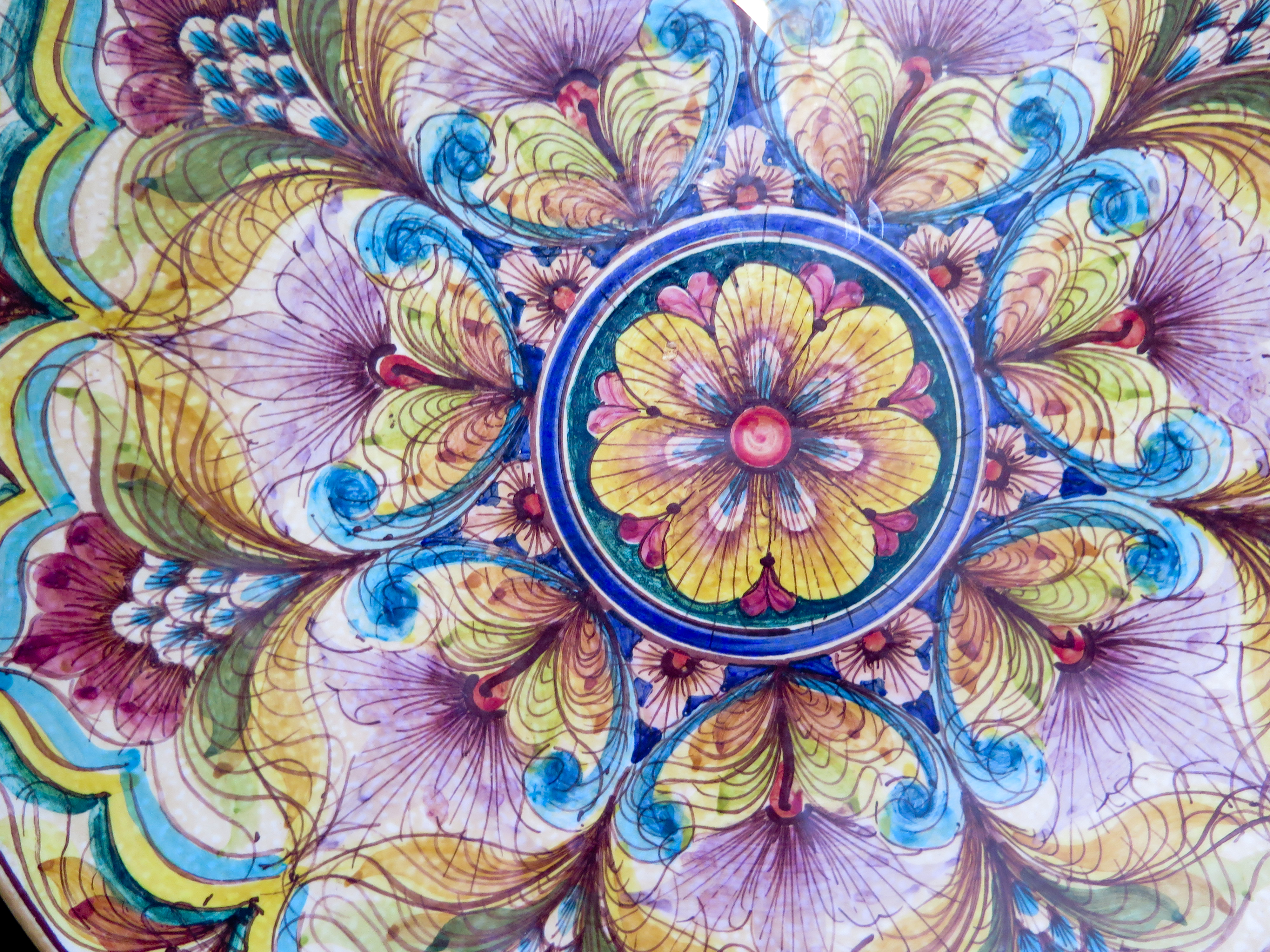 Do jedné takové jsme zapluli, abychom oslavili naši přítomnost na Sicílii a musím říct, že jako všude jinde v Itálii, jídlo je tu skvělé. Jelikož si tu váží sezóních potravin, nemůže se stát, že byste dostali v dubnu prosciutto s melounem, protože melouny ještě neuzrály a nikdo je sem vozit z druhého konce světa prostě nebude. Takže vám místo melounu nabídnou ananas… Anebo úplně jiný předkrm. A vsadím boty, že vám to bude chutnat. Můžete taky zkusit proslavené sicilské zákusky, drobné velmi zdobené dortíčky domácí výroby z mandlového těsta, které prodávají cukrárny na každém rohu. Sicílie byla vždy obilnicí a zahradou Itálie, takže se tady ve velkém pěstuje nejen obilí, ale i mandarinky, pomeranče, citrony a slavné mandle Bronte, nejlepší mandle v Evropě. Zkuste si dát někdy pesto Brontese, je to lahoda! A to vše si dejte na ručně malovaném sicilském talíři, ať jste tradiční: