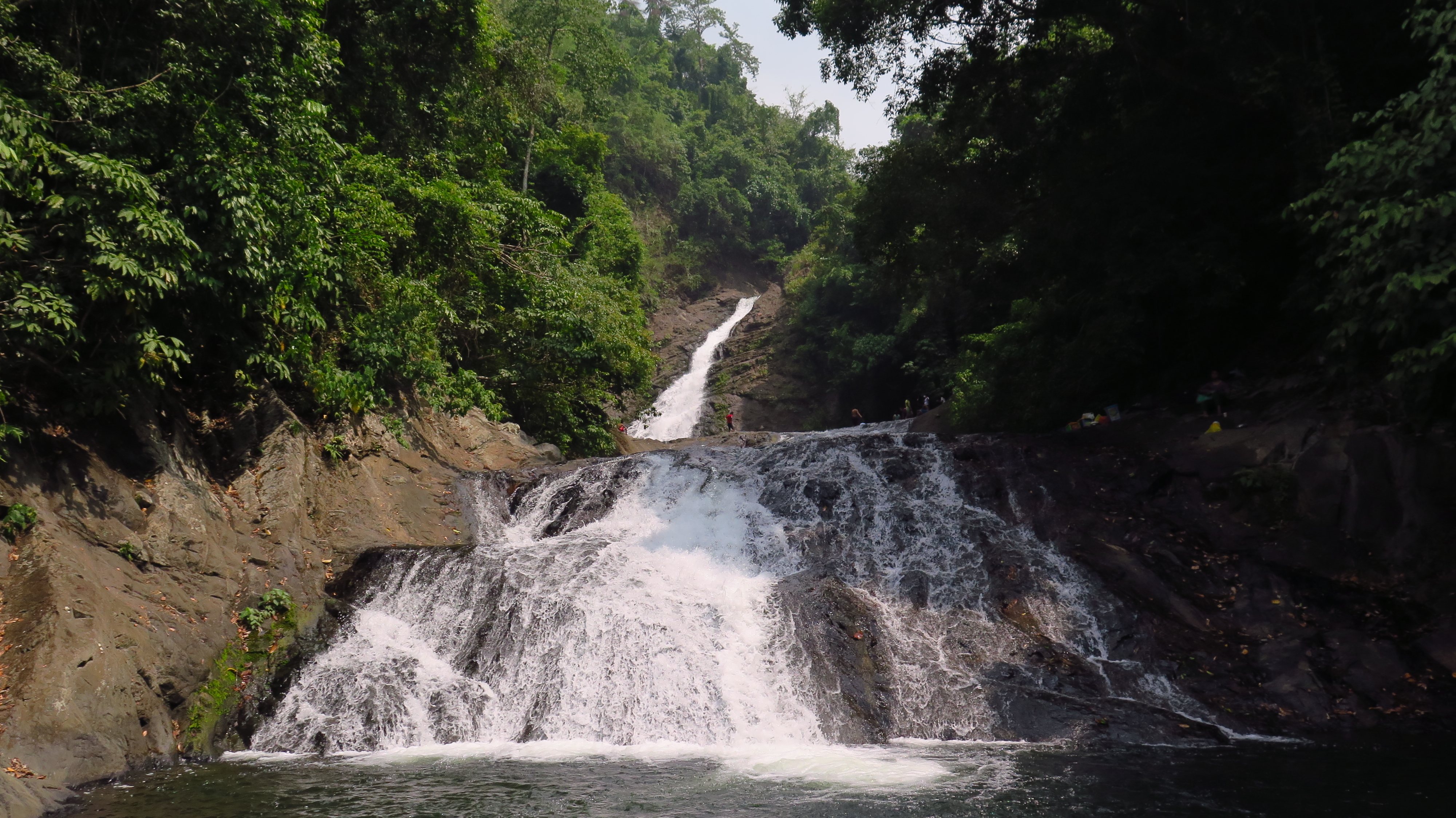 Jen nám bylo divné, že nikdo z místních se k nám nepřipojil a místo toho pokračovali po pěšině dál. Po nějaké době jsme se tedy dosyta vyráchali a řekou jsme se brodili výš proti proudu. Když jsme vyšplahli po kamenech přes několik peřejí, dostali jsme se k pořádným vodopádům, pod nimiž v přírodním bazénu dováděla polovina vesnice.