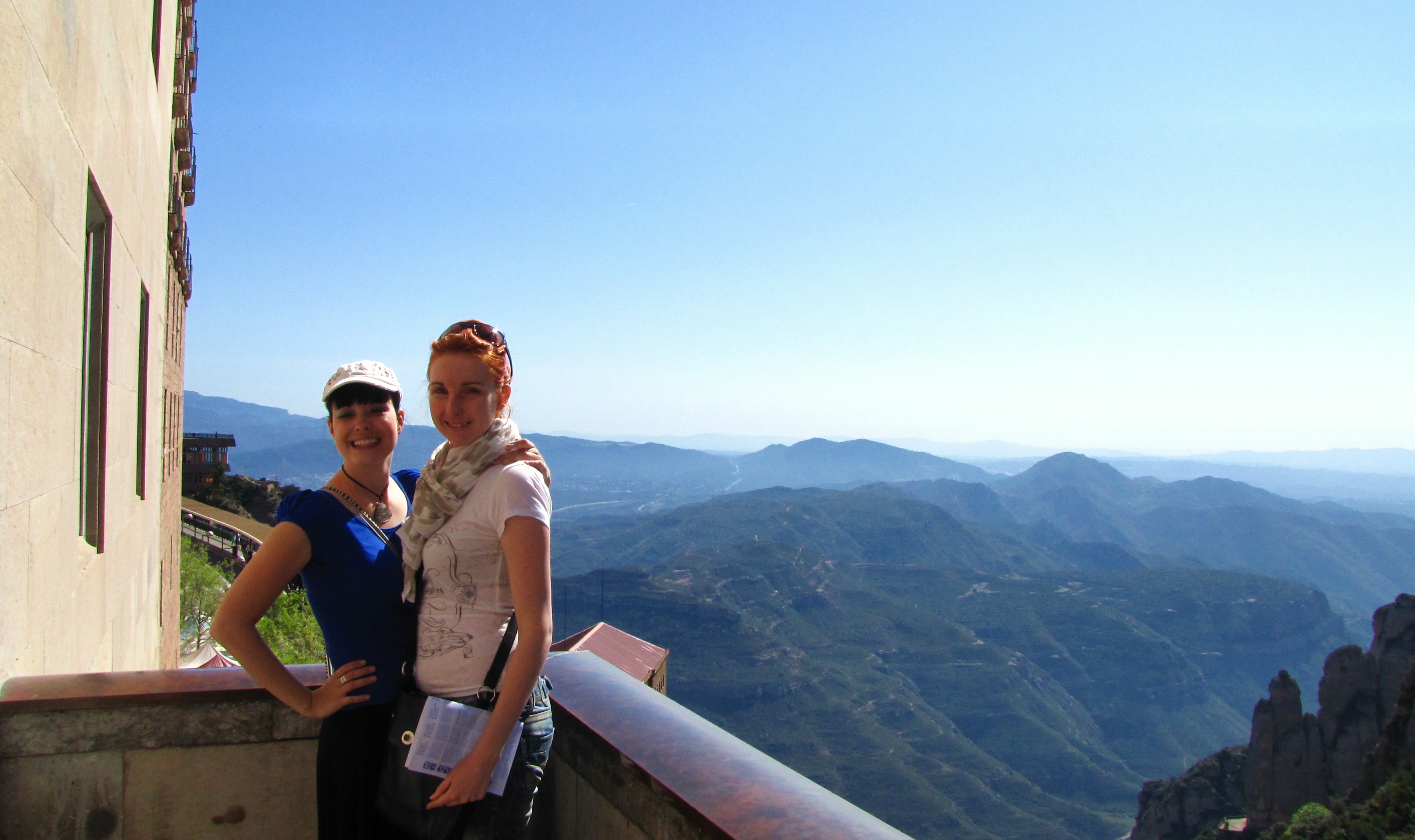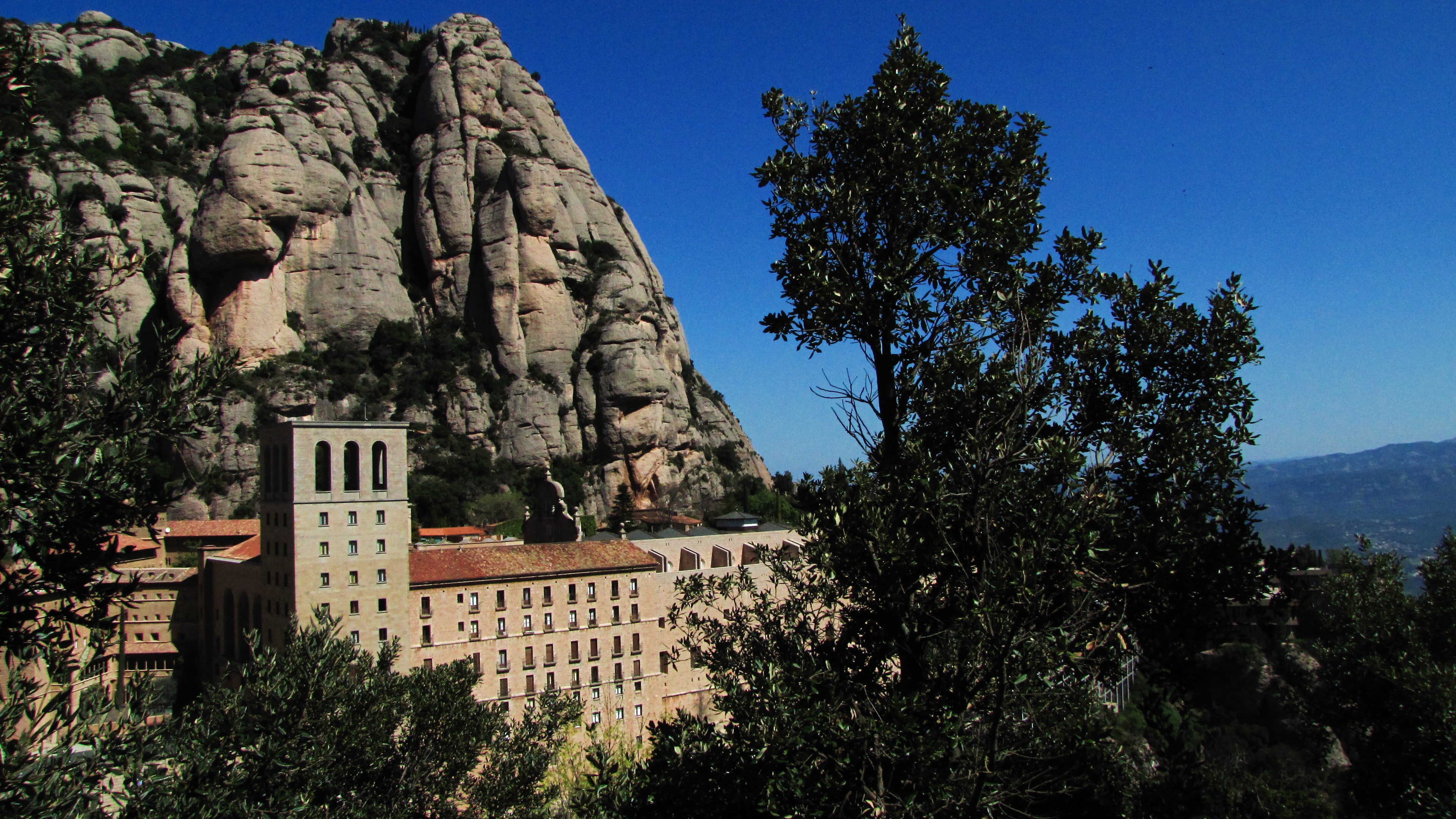 Nasedly jsme na vlak a jely asi 40 kilometrů do vnitrozemí, kde se z okolní zvlněné krajiny najednou zvedají obrovská pískovcová skaliska masivu Montserrat (což prý opravdu znamená Zubatá skála). Tam se ve výšce 1236 metrů nad mořem nachází slavný benediktinský klášter z jedenáctého století.