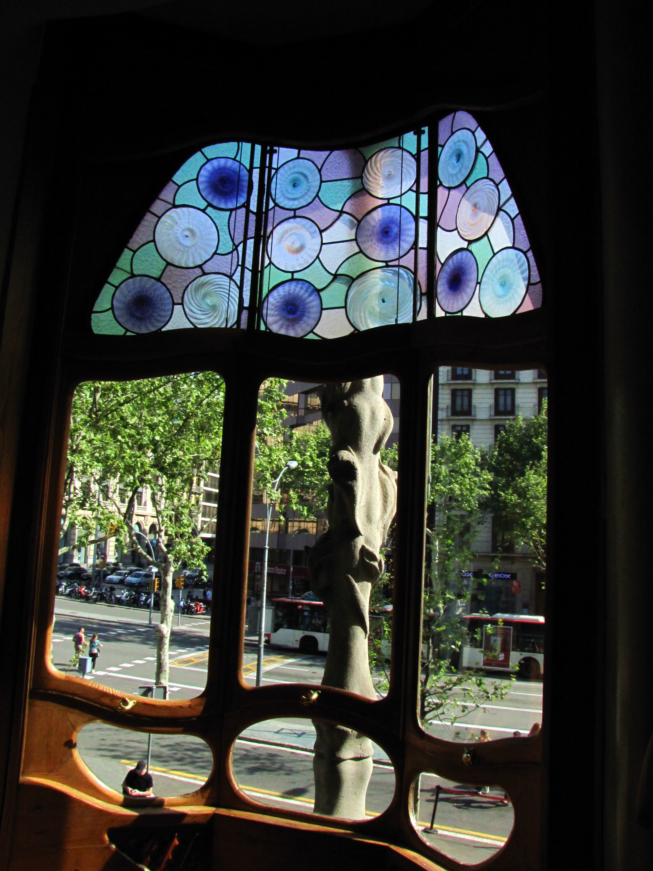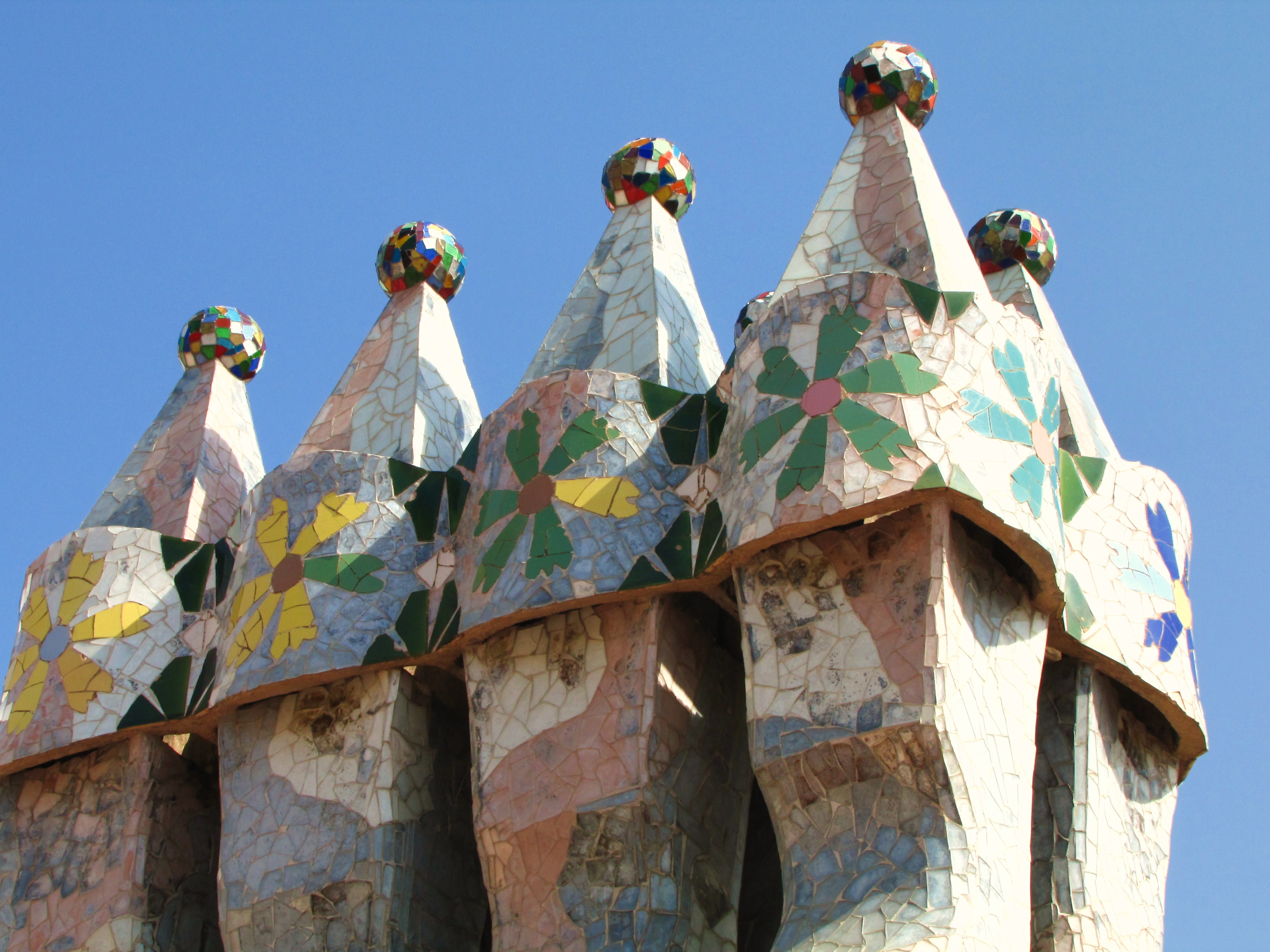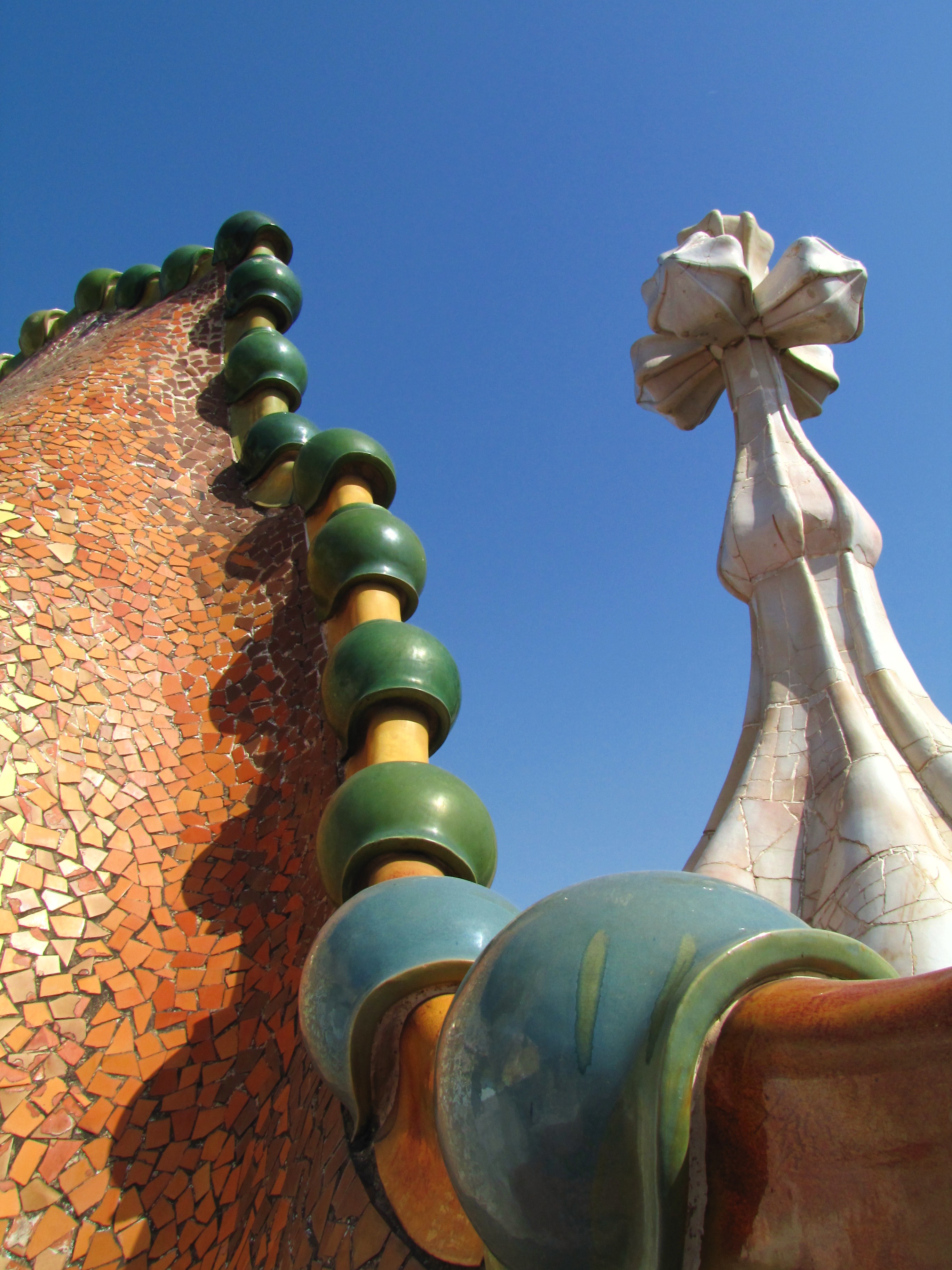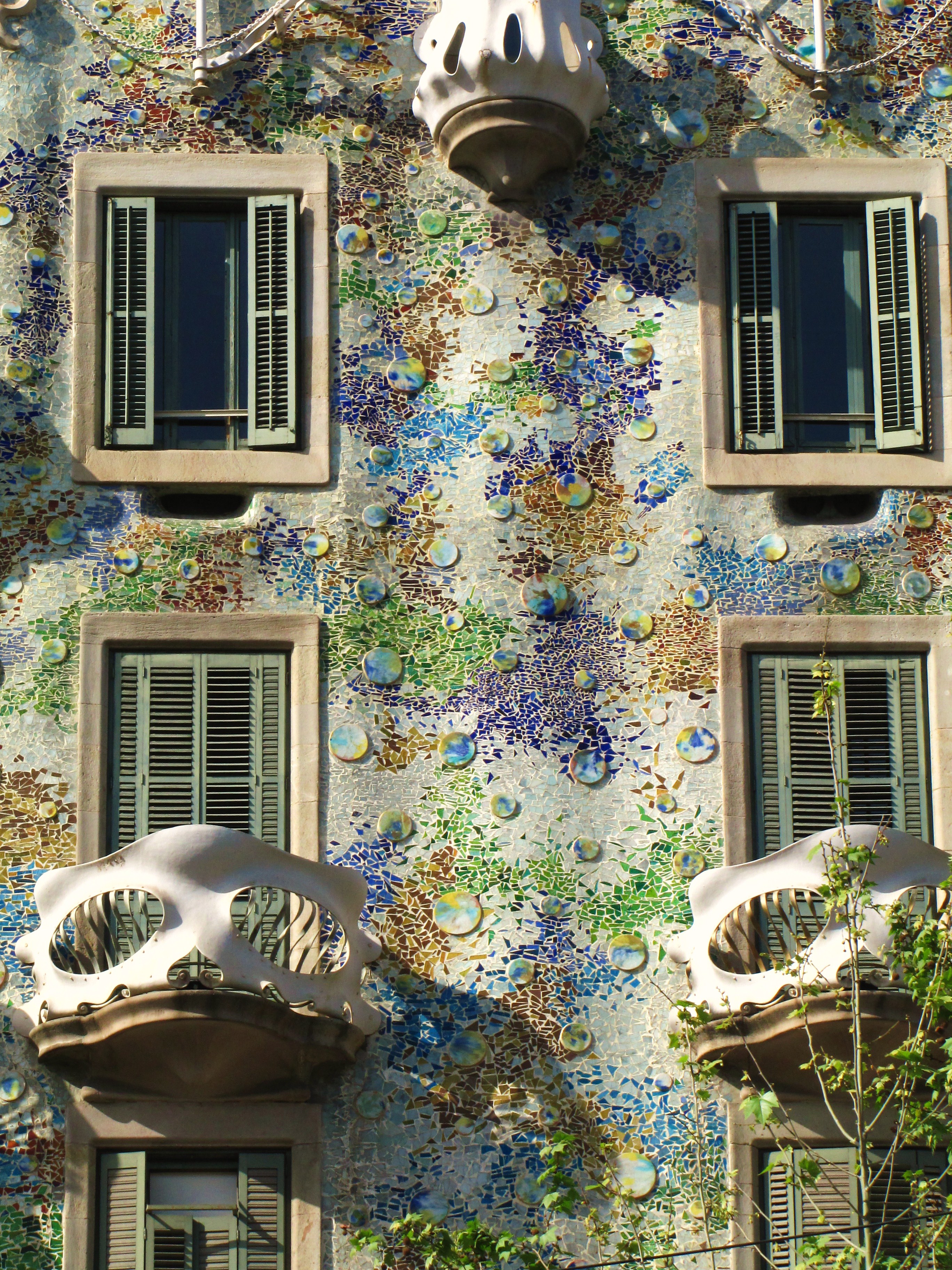 Ráno jsme si vystály frontu na prohlídku jednoho z nejznámnějších Gaudího budov – Casa Batlló. Dům, který Gaudí přestavěl pro textilního magnáta pana Batlló je jedním slovem výrazný. Má nádhernou fasádu, kterou lze připodobnit ke kůži magického pradávného ještěra, jehož hřetní hřeben tvoří střechu domu, obří dinosauří nohy jeho pilíře a ulovené lebky jeho ještěřích nepřátel – balkony.