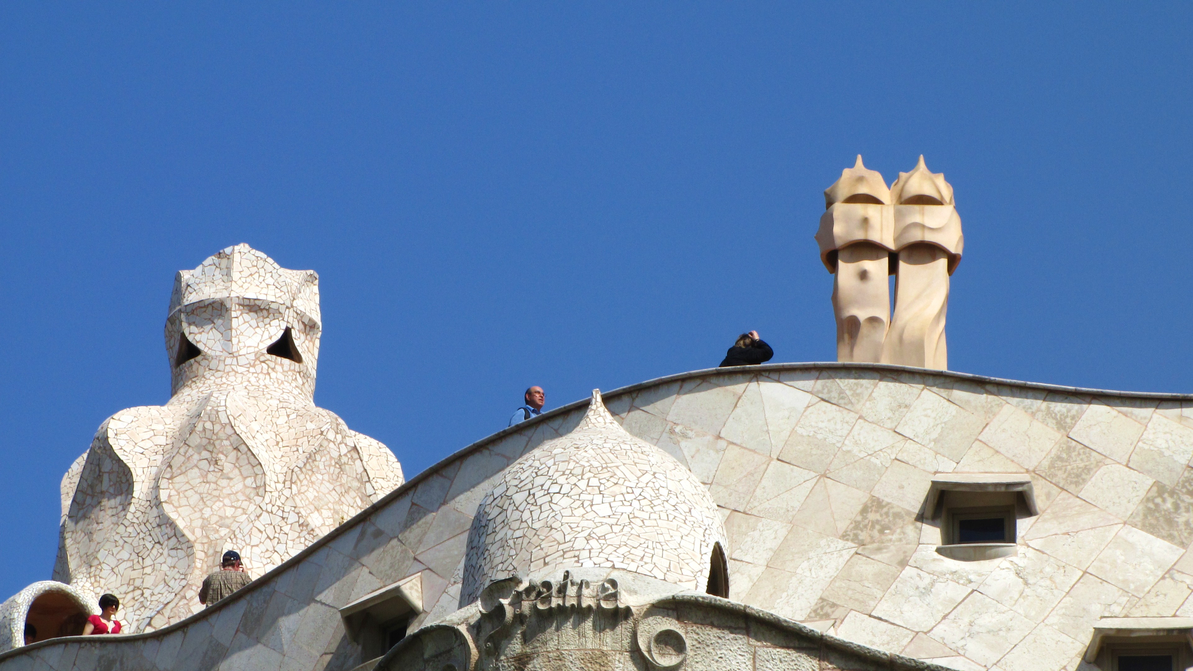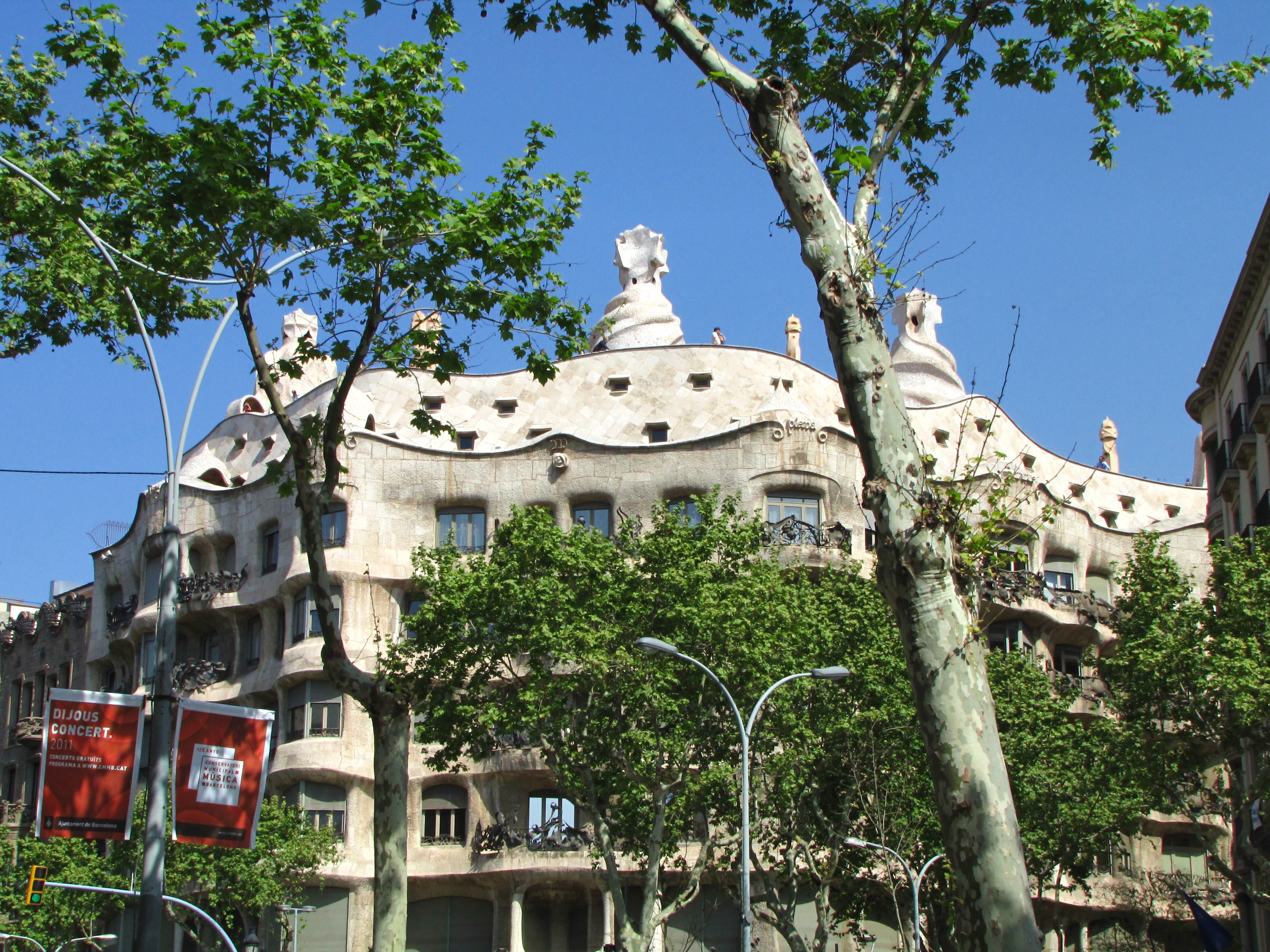 Nebo alespoň byt v Casa Milà, zvanému také La Pedrera (neboli Kamenolom), velkém „činžáku“ nacházejícím se v podstatě přes ulici. Tato olbřímí stavba je barevným protikladem Casa Batlló, i když vychází ze stejných principů. Bílou budovu s lámající se fasádou si Gaudí prosadil navzdory stavebním normám i navzdory jejímu objednateli, jemuž se stavba velmi prodražila. I střecha Casa Milà je hlídána vojáky, ale bílými, z vápence.