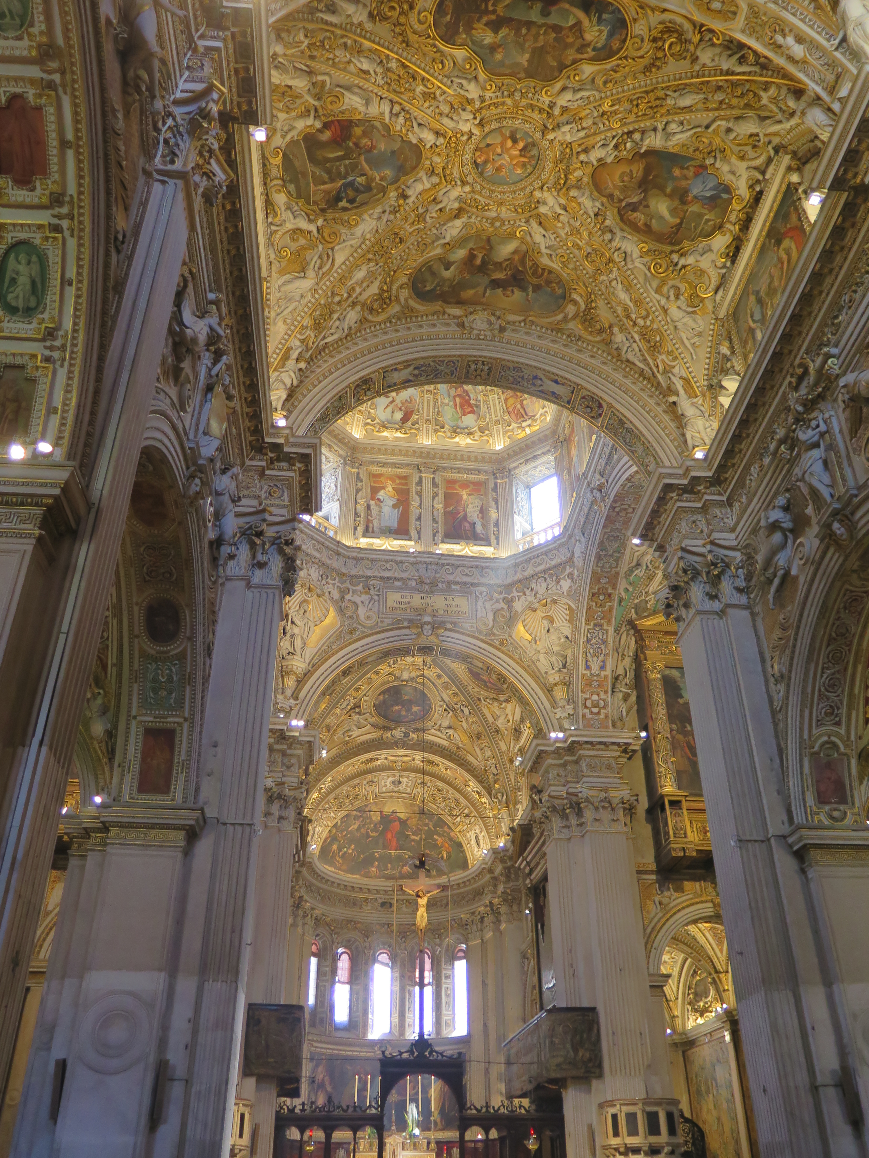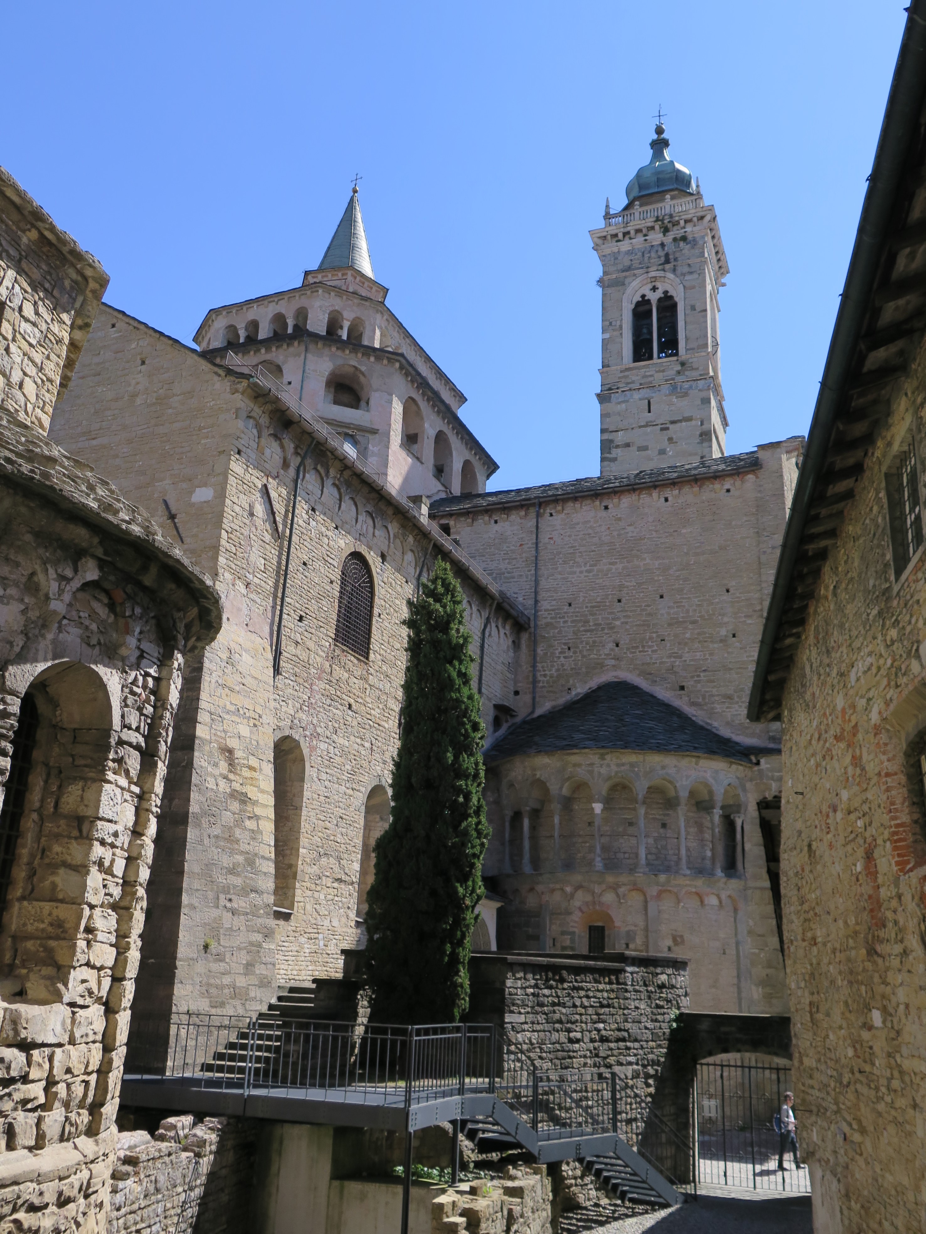 Ráda bych řekla, že Bergamo je zcela jistě krásné město. S atmosférou, úzkými uličkami, chrámy, kostely, a nádhernými výhledy. Bohužel také (alespoň v době mé návštěvy jedné dubnové neděle) naprosto narvané výletníky. Všechny obchody jsou holt v Miláně v neděli dopoledne zavřené, takže nikdo nemá co dělat a všichni vyráží na výlety.