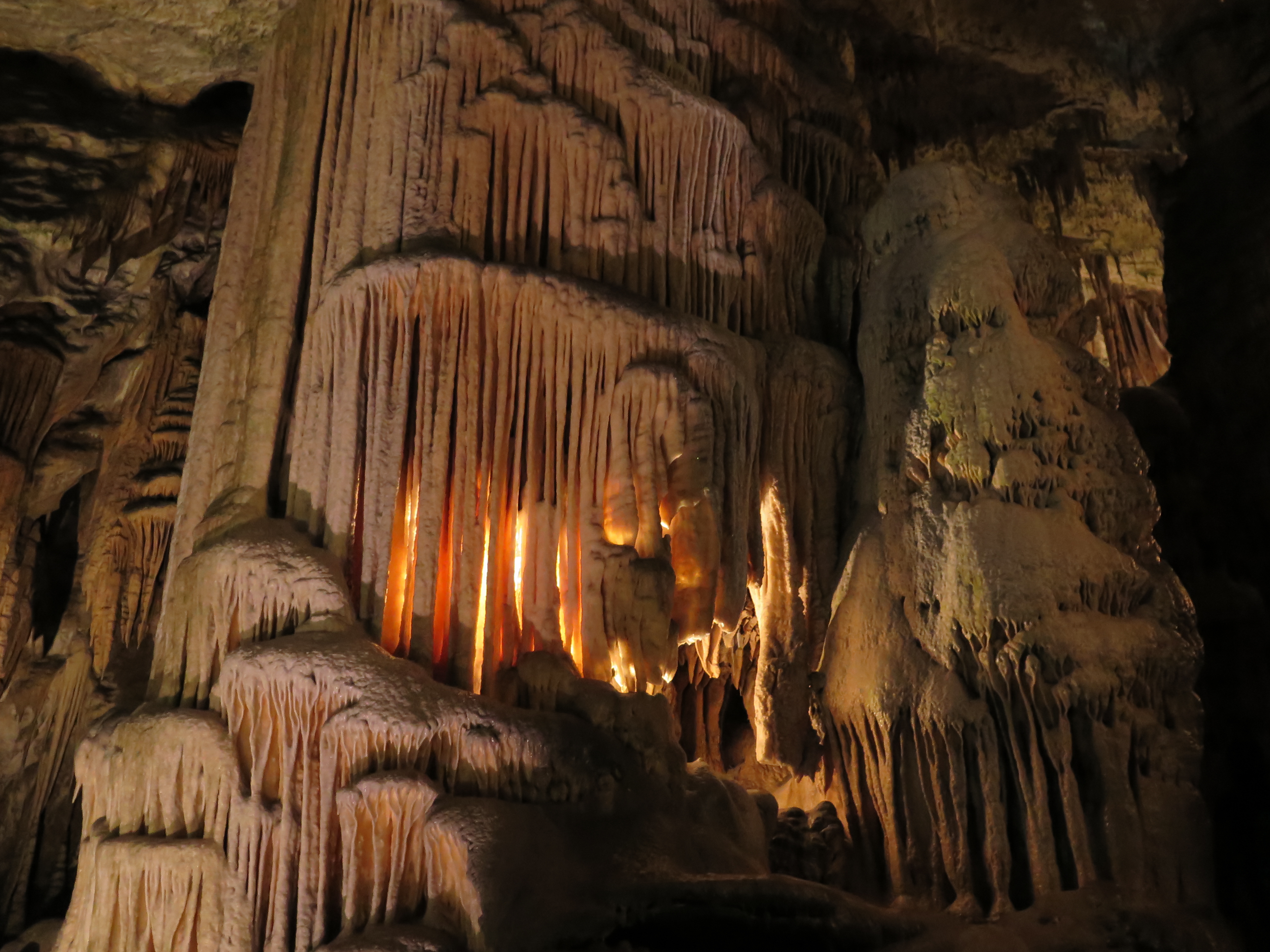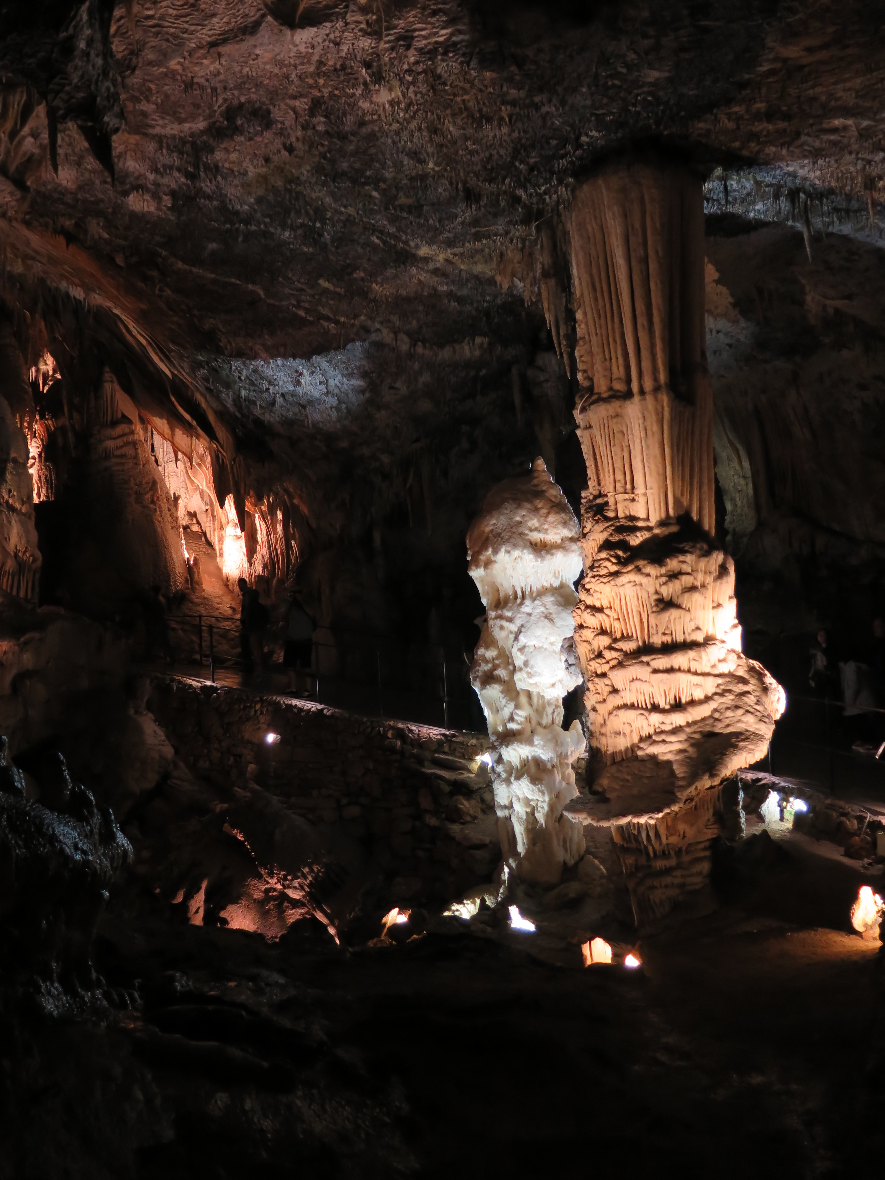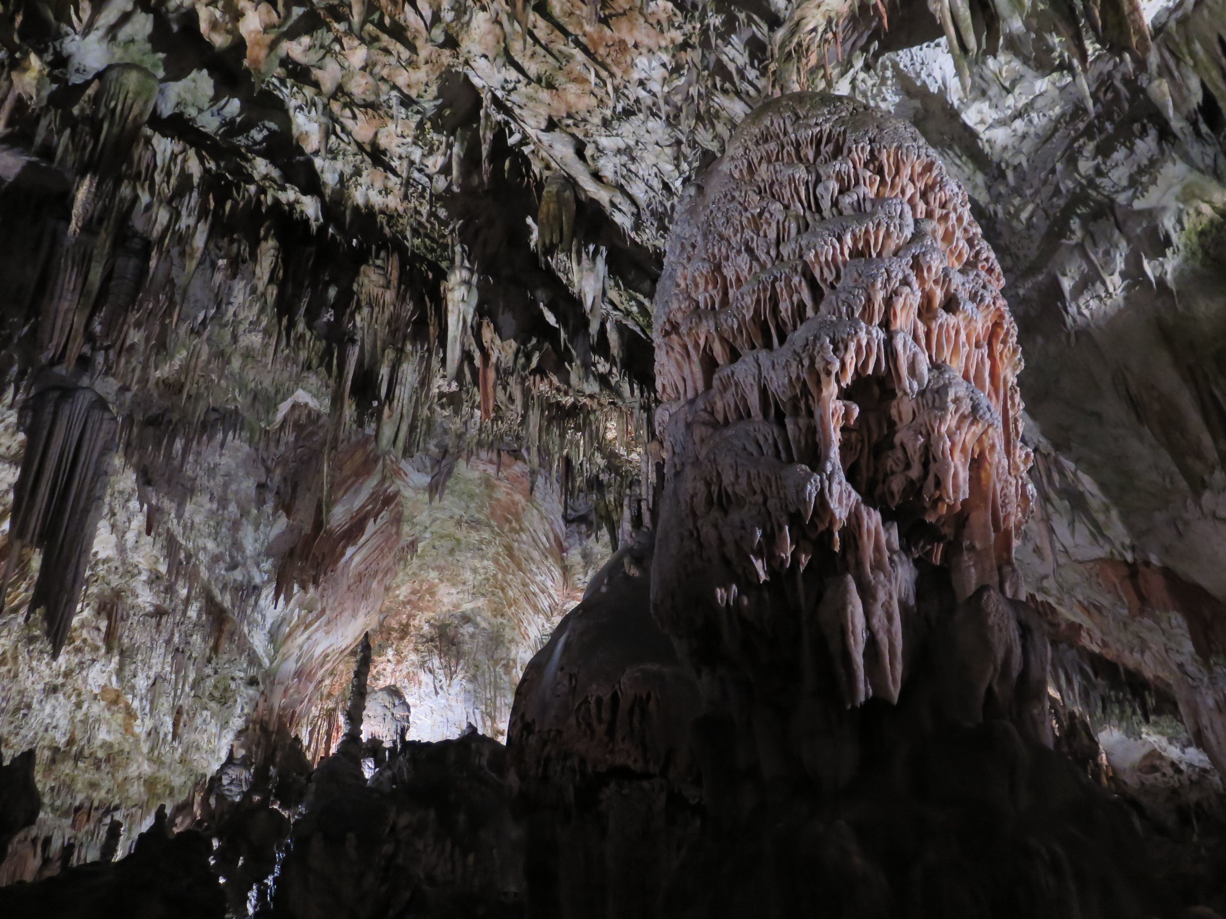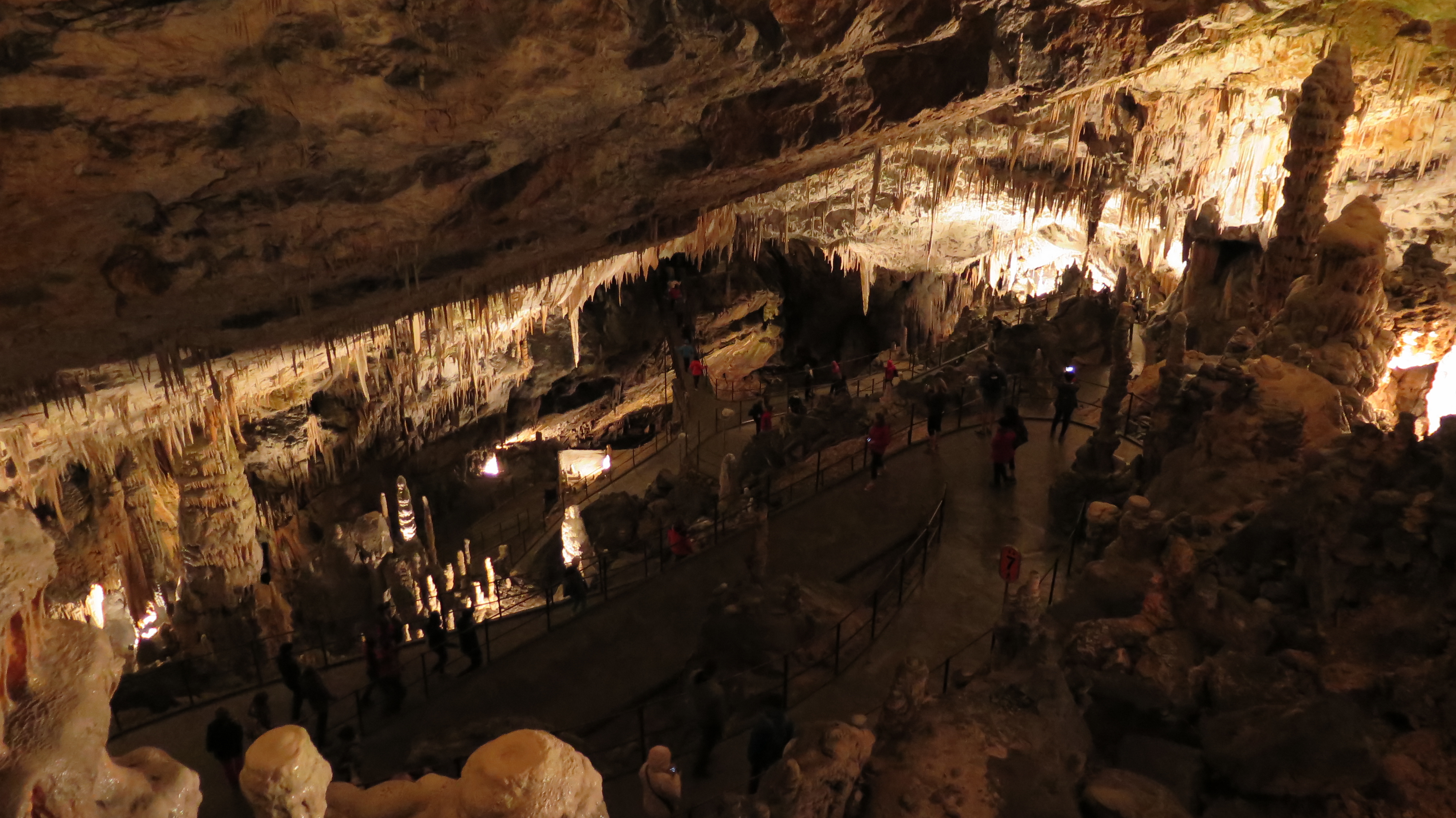 V hloubce se pak nachází několik jeskynních sálů s obřími krápníky různých barev. Vše krásně nasvíceno, fotografování povoleno a na konci jeskyně, v jednom z nejhlubších bodů, u nádrže s macaráty, dokonce i záchod a další suvenýr shop. Tyjo, turismus nejhrubšího zrna.