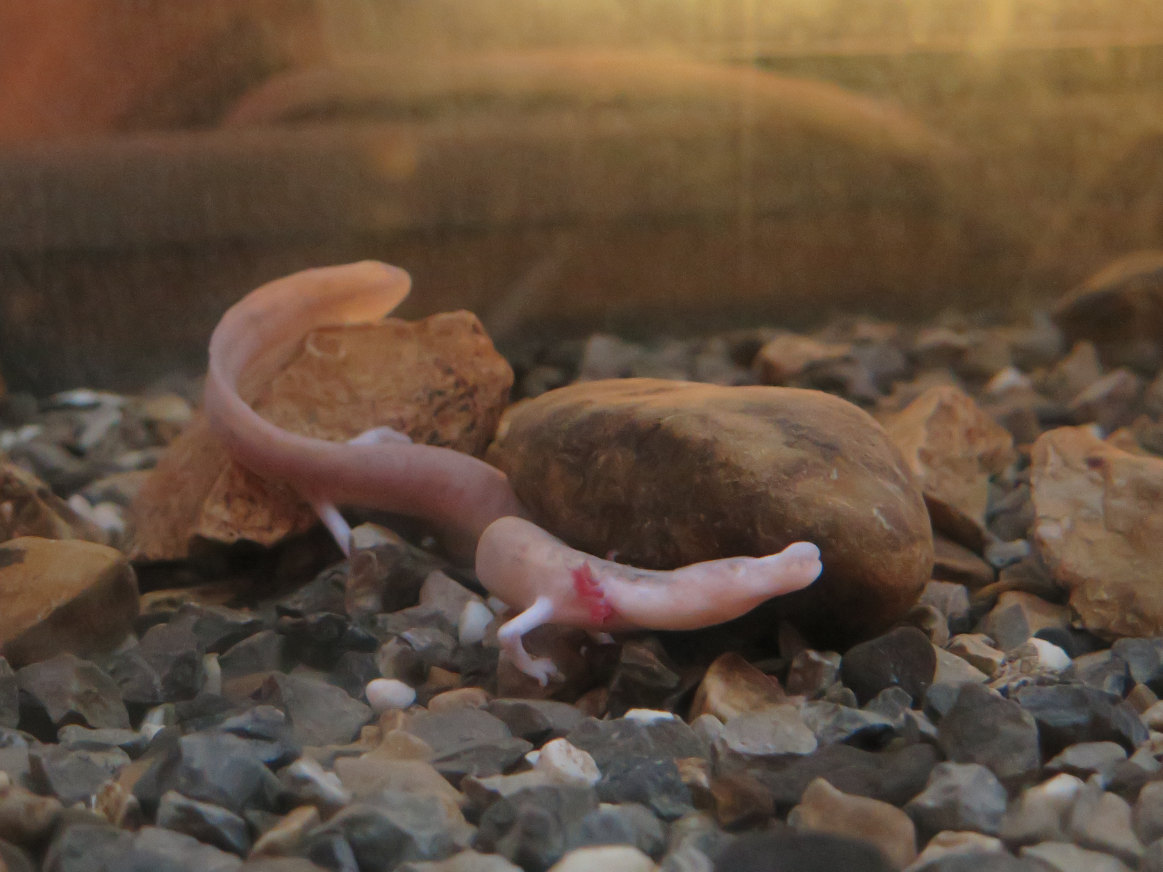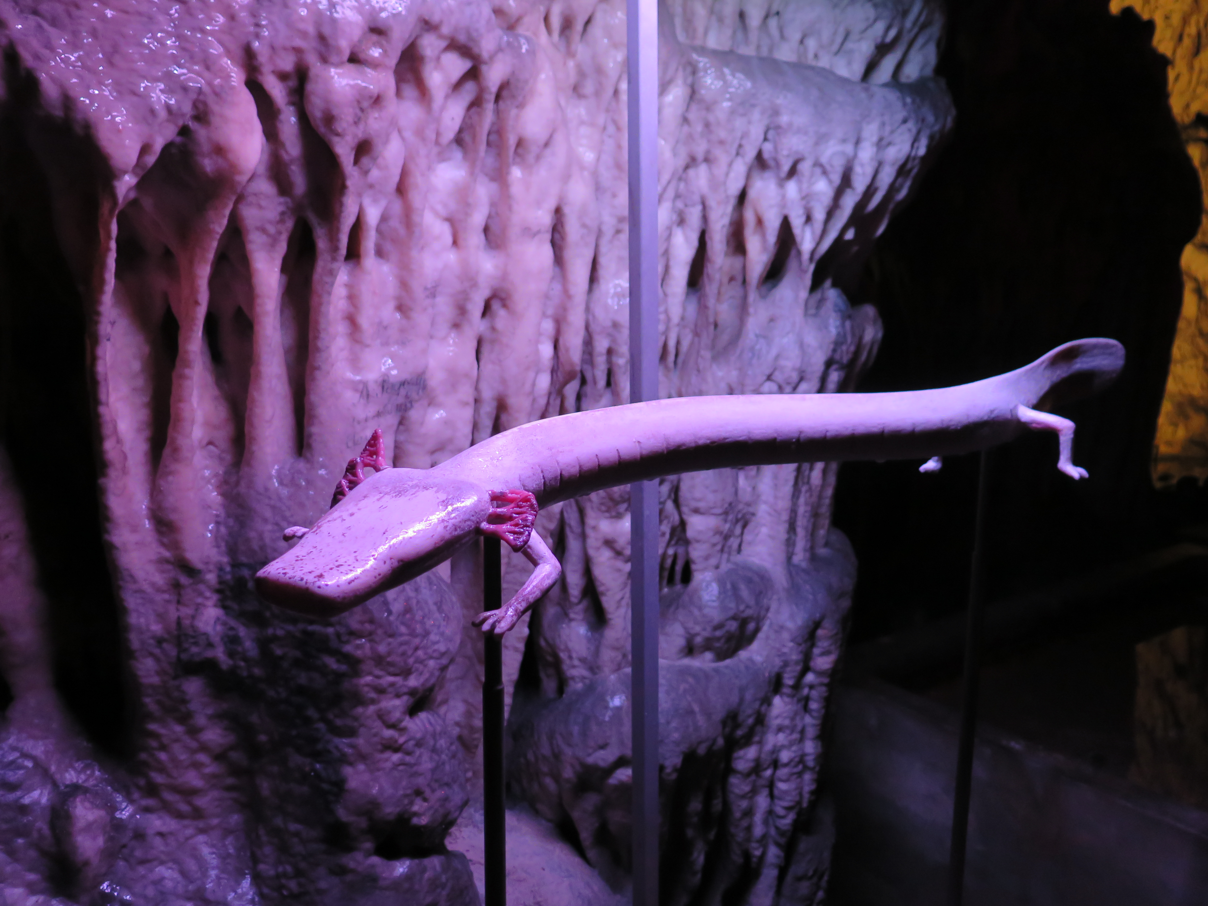 Napřed ta Postojenska. Tam jsem se hrozně chtěla podívat. Znova. Veřejně se zde přiznám, že za to může moje zapomnětlivost a zkreslení reality vzpomínkami. Kdysi jsme byli v Postojenske s rodiči, to mi bylo asi 14. No a jediné, co jsem si z návštěvy pamatovala, byly a) obří hluboké jeskyně plné krápníků, b) obří macaráti jeskynní. V mé paměti byl macarát nádherné asi dvoumetrové zvíře s obočím a pacičkama jako miminko (taky se mu slovinsky říká „člověčí ryba“). A hrozně jsem si ho zamilovala a přesvědčovala jsem Kubu, že se na něj musíme jet podívat, protože se mu macarát určitě bude taky líbit…. Zkrátka a dobře, pamatovala jsem si svého milovaného macaráta nějak takhle: