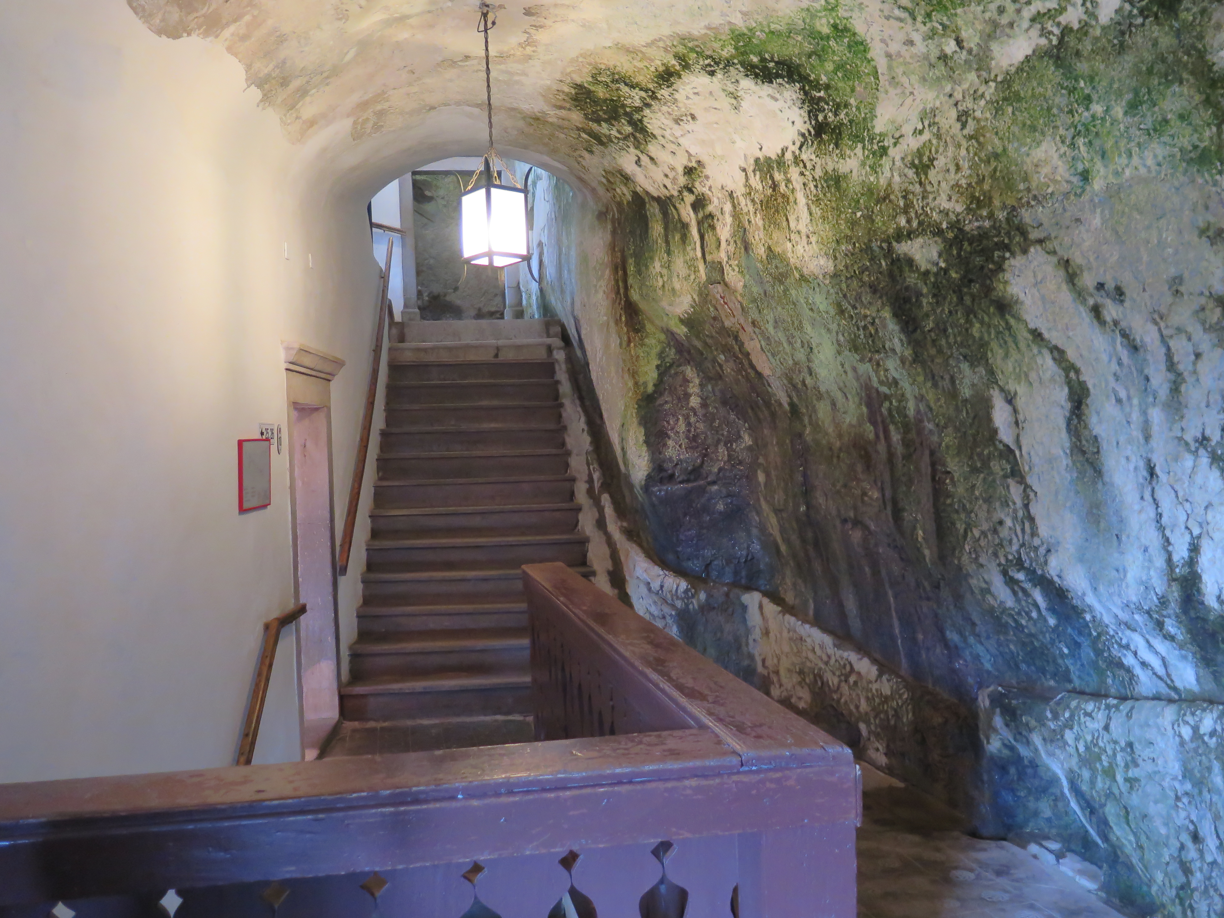 Obří středověký hrad je schovaný v jeskyni nejen tak, že jeho verandy jsou kryty před deštěm, ale za hradem samotným je hluboko v krasovém systému další hrad, vytesaný do skály, ukrytý před obléhateli.