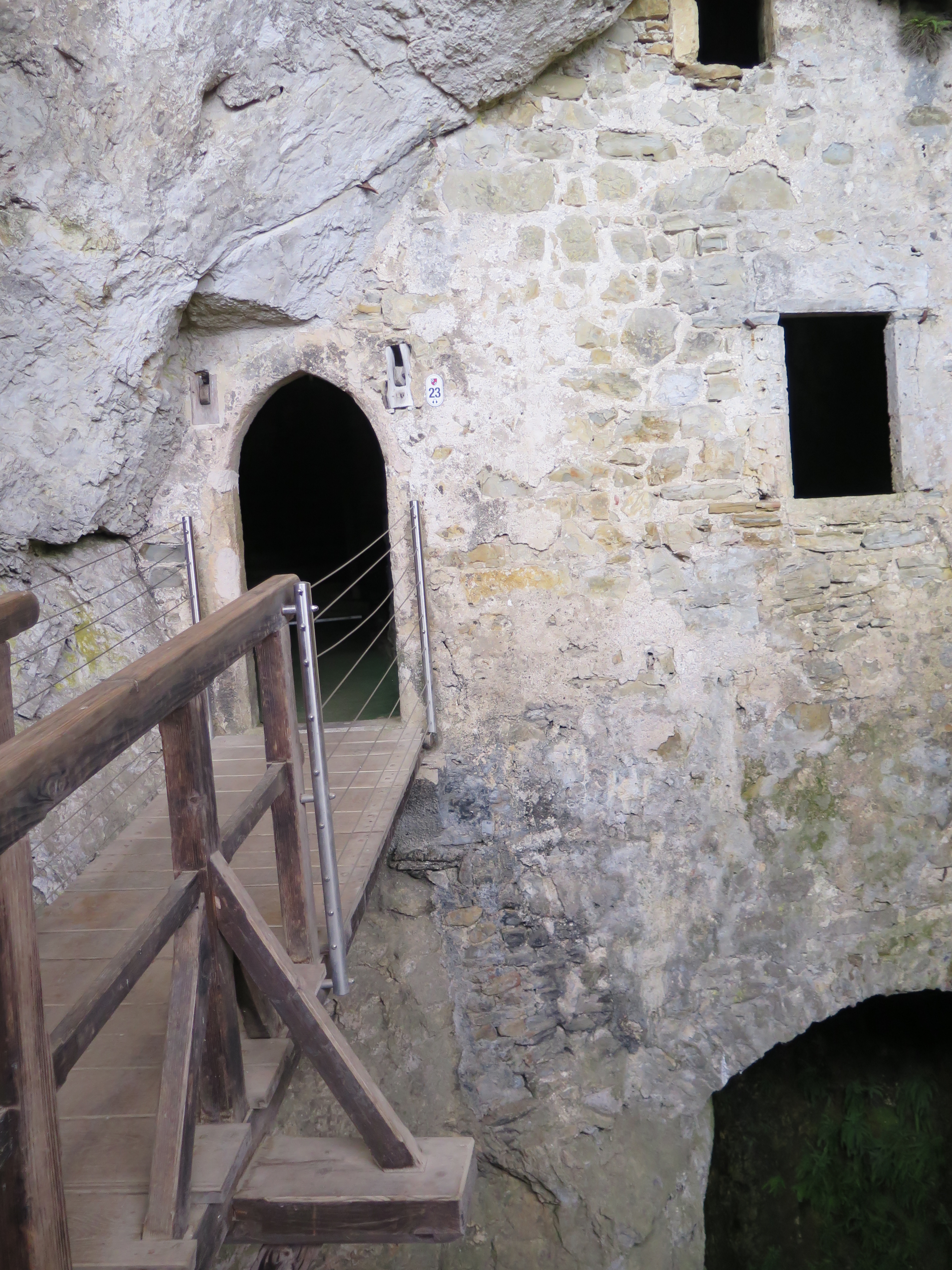 Hrad měl díky propojení s krasovým systémem neustále přísun čerstvé vody, již nebylo možno otrávit. Taky byl hrad v podstatě nedobytný, protože i po několikaletém obléhání měli jeho obyvatelé pořád čerstvé jídlo. Jeskyně totiž po několika kilometrech končila v údolí na druhé straně kopce, takže si obléhaní chudáčci mohli dopřát třeba i čerstvé třešně a celého pečeného vola. 🙂 No, nakonec byla Predjama dobyta zradou, jak už to v těch temných časech historických bývalo, a nebohý hradní pán, něco jako slovinský Jánošík, byl sestřelen obléhateli dělovou koulí, když seděl na záchodku. Tehdá neměl záchod třímetrové zdi, jako zbytek hradu, ale jen asi půlmetrové. A dělová koule je prorazila. Ten záchodek vidíte na fotografii výše, je to ten první malý domeček vlevo.