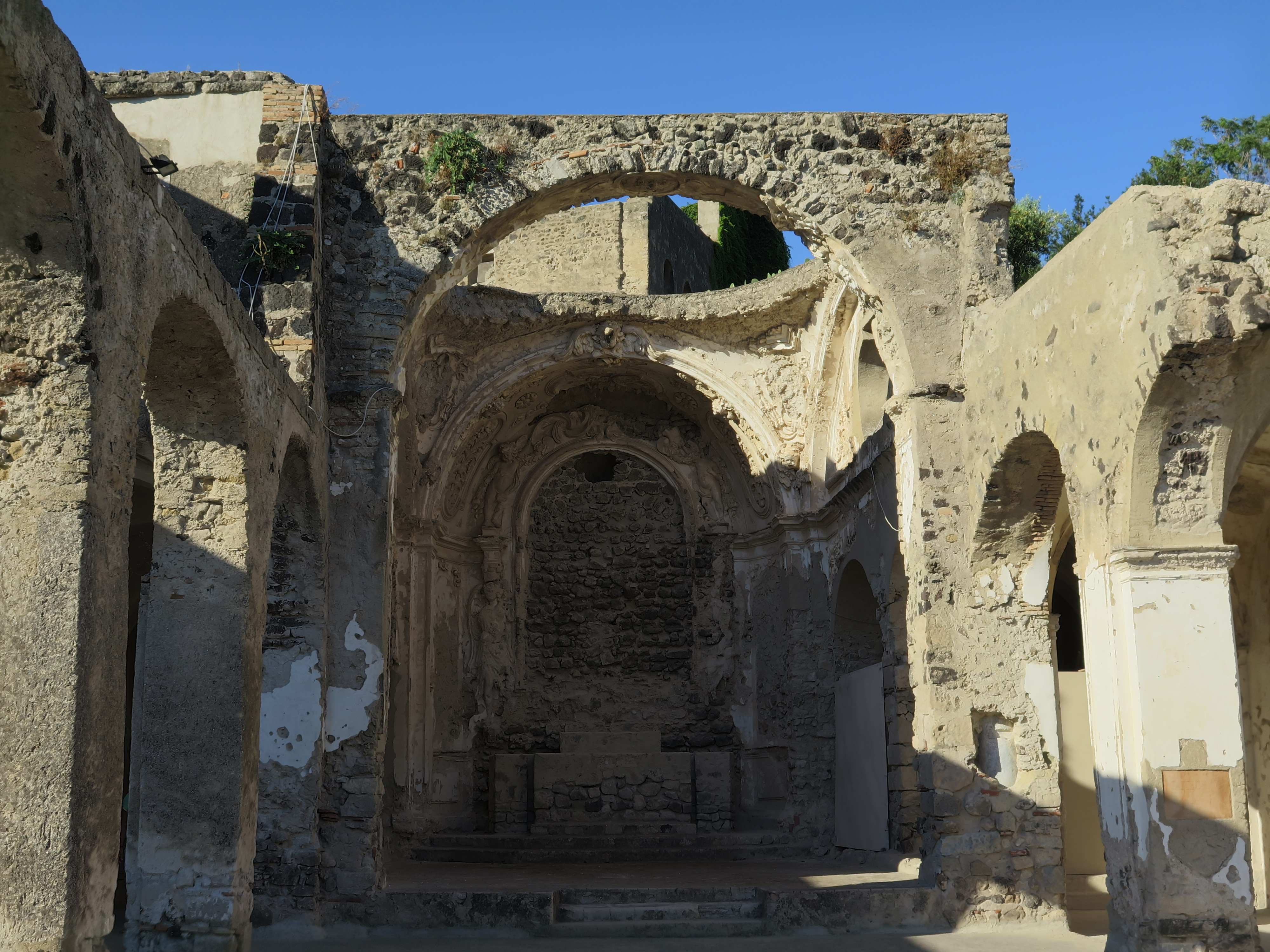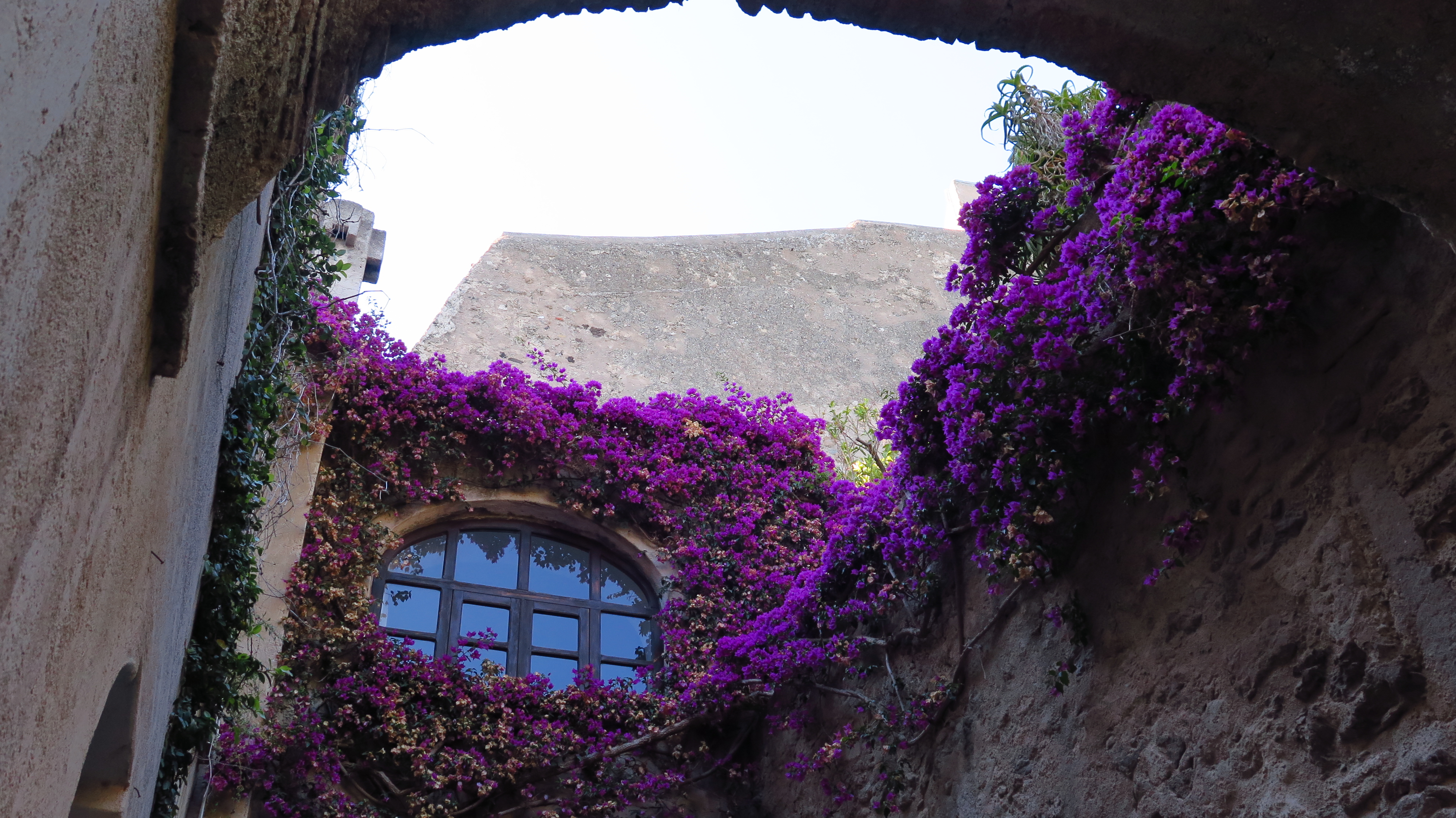 Část bývalého kláštera je zahlená do pnoucích se bugenvileí mnoha barev, a jejich mohutný porost skýtá stín alespoň u některých zdí. Zato zhroucená katedrála bez střechy je vystavena žáru slunce neustále a barvy jejích fresek úplně vybledly. Jen dole, v kryptě, si můžete prohlédnout krásné středověké malby živých odstínů, kterým nic stáří neubralo na kráse.