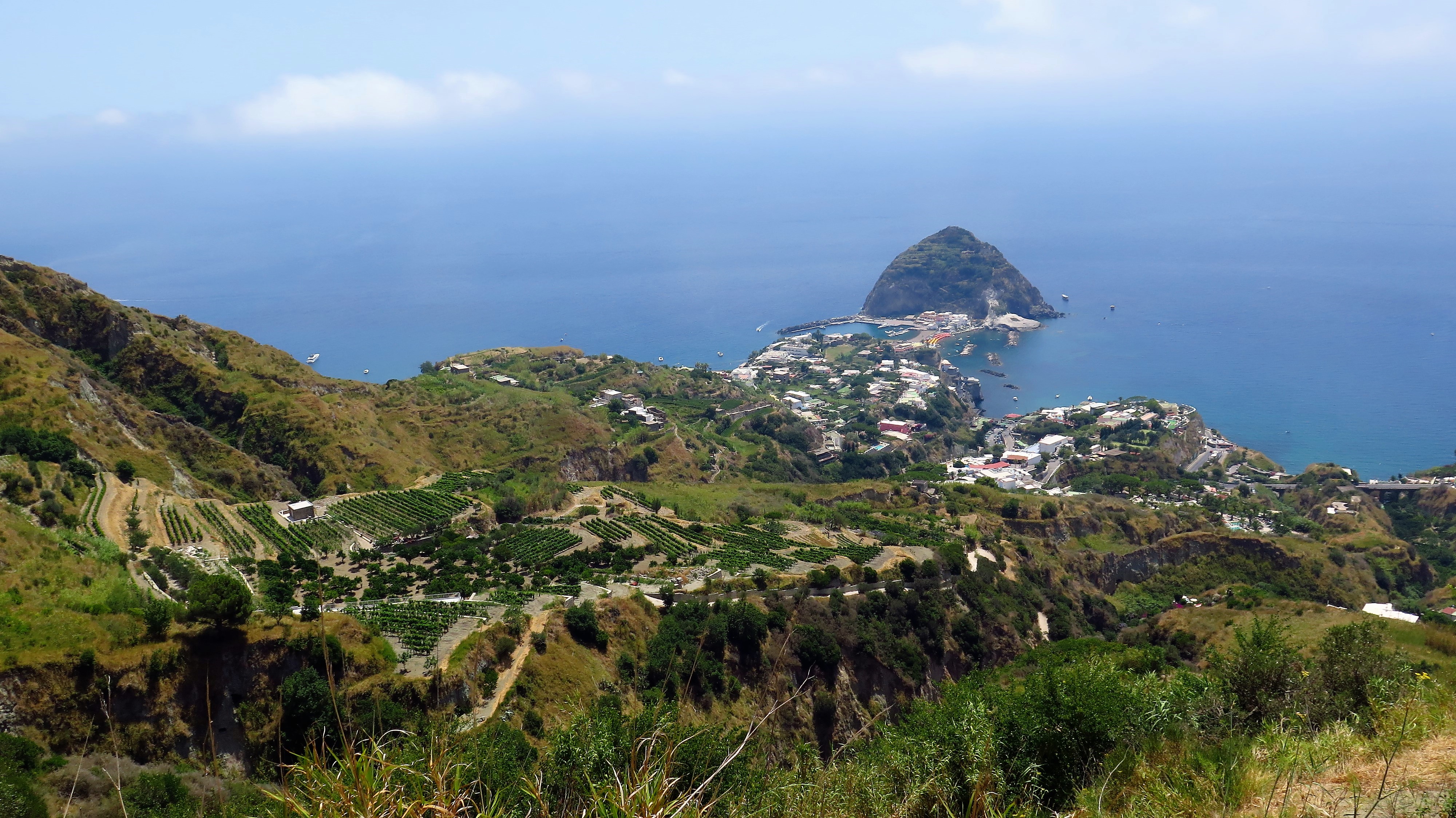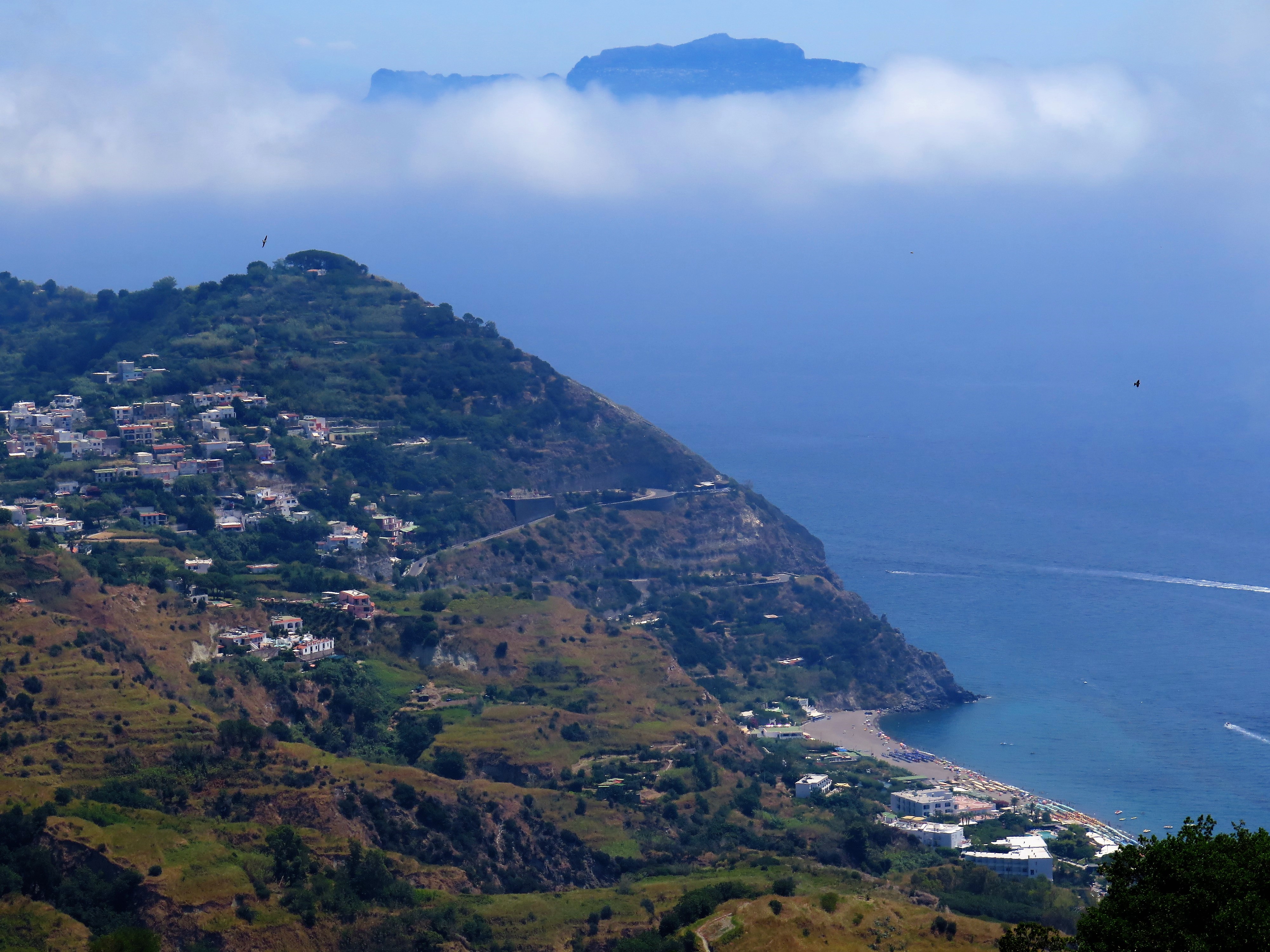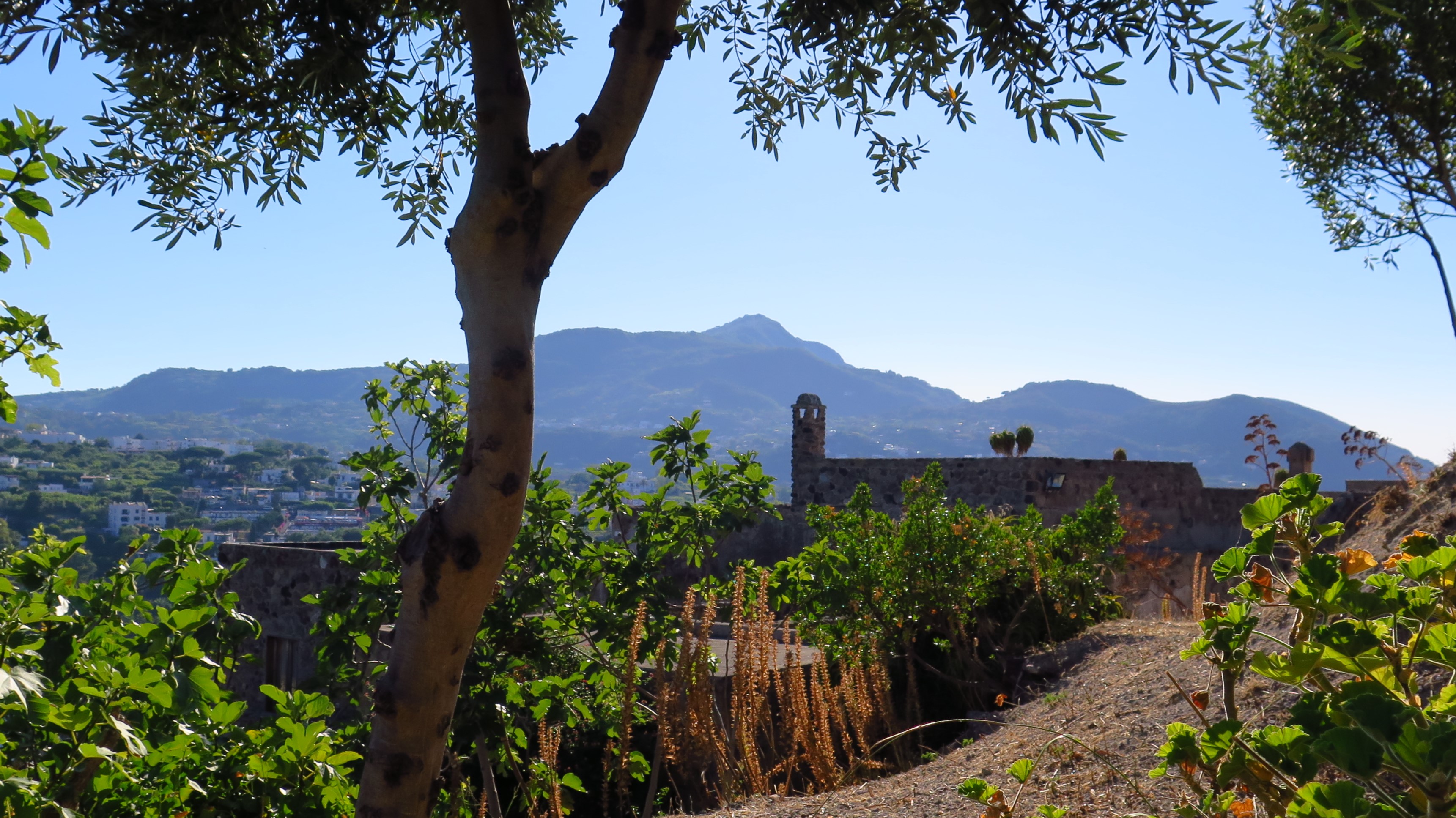 Z Castella je krásný výhled na nejvyšší horu ostrova, skoro 800 metrů vysoké Epomeo, kam se lze dostat autem a potom pěšky či na oslu, když máte náladu. Bohužel, cesty jsou strmé a rozbité a naše auto, které jsme si půjčili (viz dále), by takovou cestu nezvládlo.