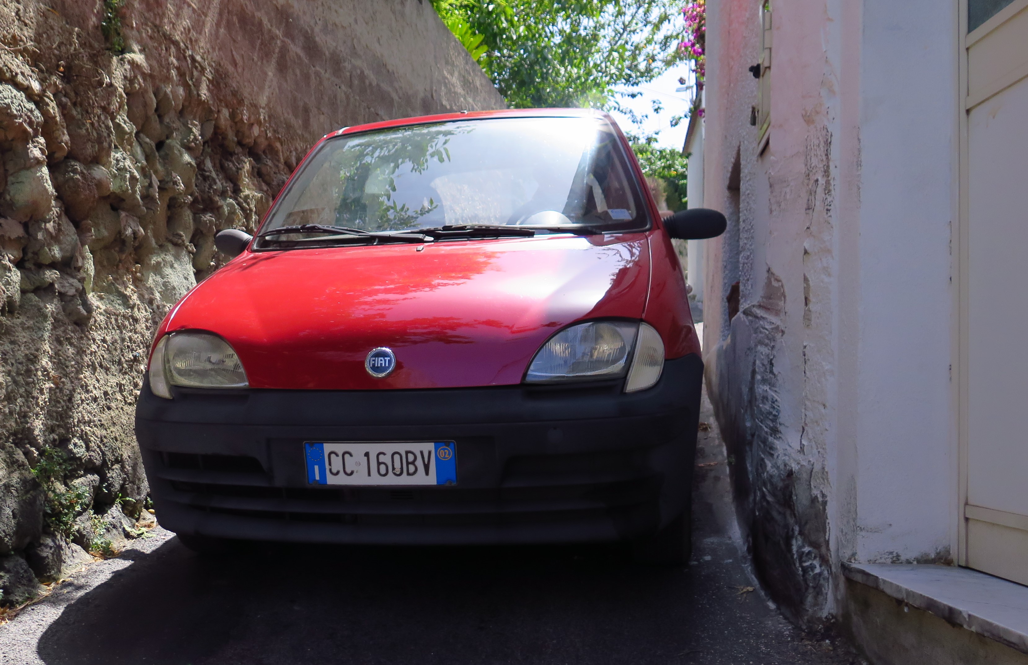 Ale chození po břehu nám nestačilo, takže jsme si jeden den zapůjčili auto zvané Žihadlo. Rudý vůz italské provinience, jehož výkon dvou koní (jeden musel být chromý a jeden šilhal) nás v děsivém vedru bez klimatizace prohnal kolem dokola celého ostrova. Na druhou stranu, co chtít za výkon za pětatřicet euro na den, že? 🙂 Jeli jsme po směru hodinových ručiček, a zastavovali, když se nám zalíbilo.